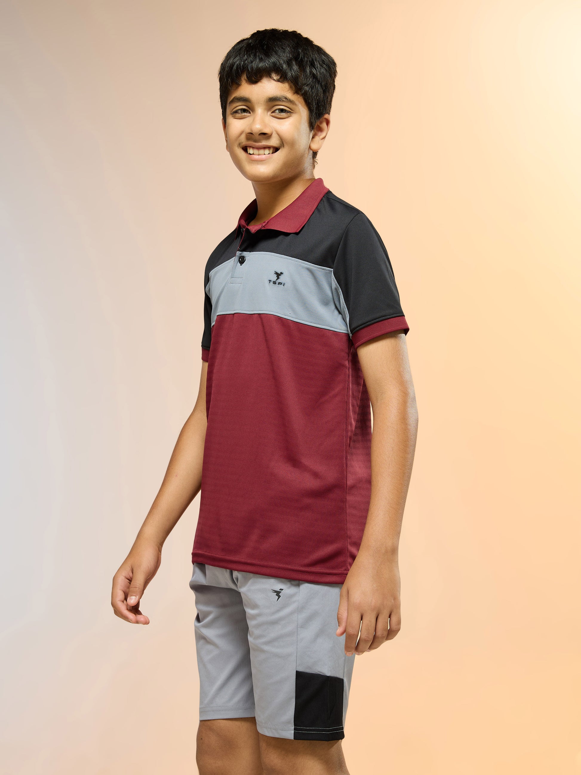 Boys Colorblock Slim Fit Polo Sports T-shirt with TECHNOCOOL+