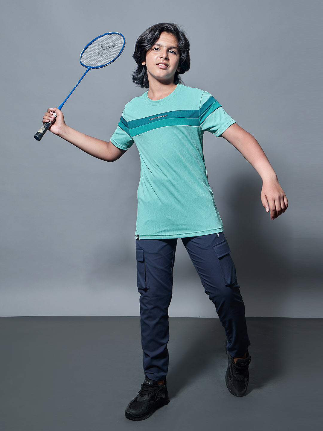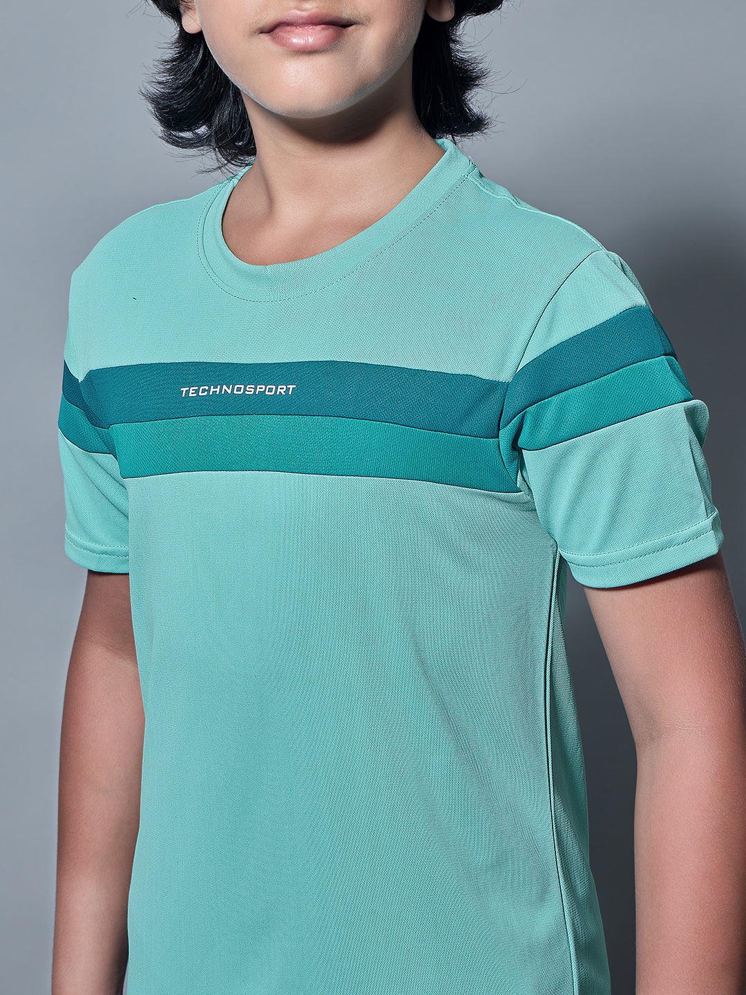 Offer Valid on a Minimum Cart Value of ₹999Boys Colorblock Slim Fit Round Neck Sports T-shirt with TECHNO DRY