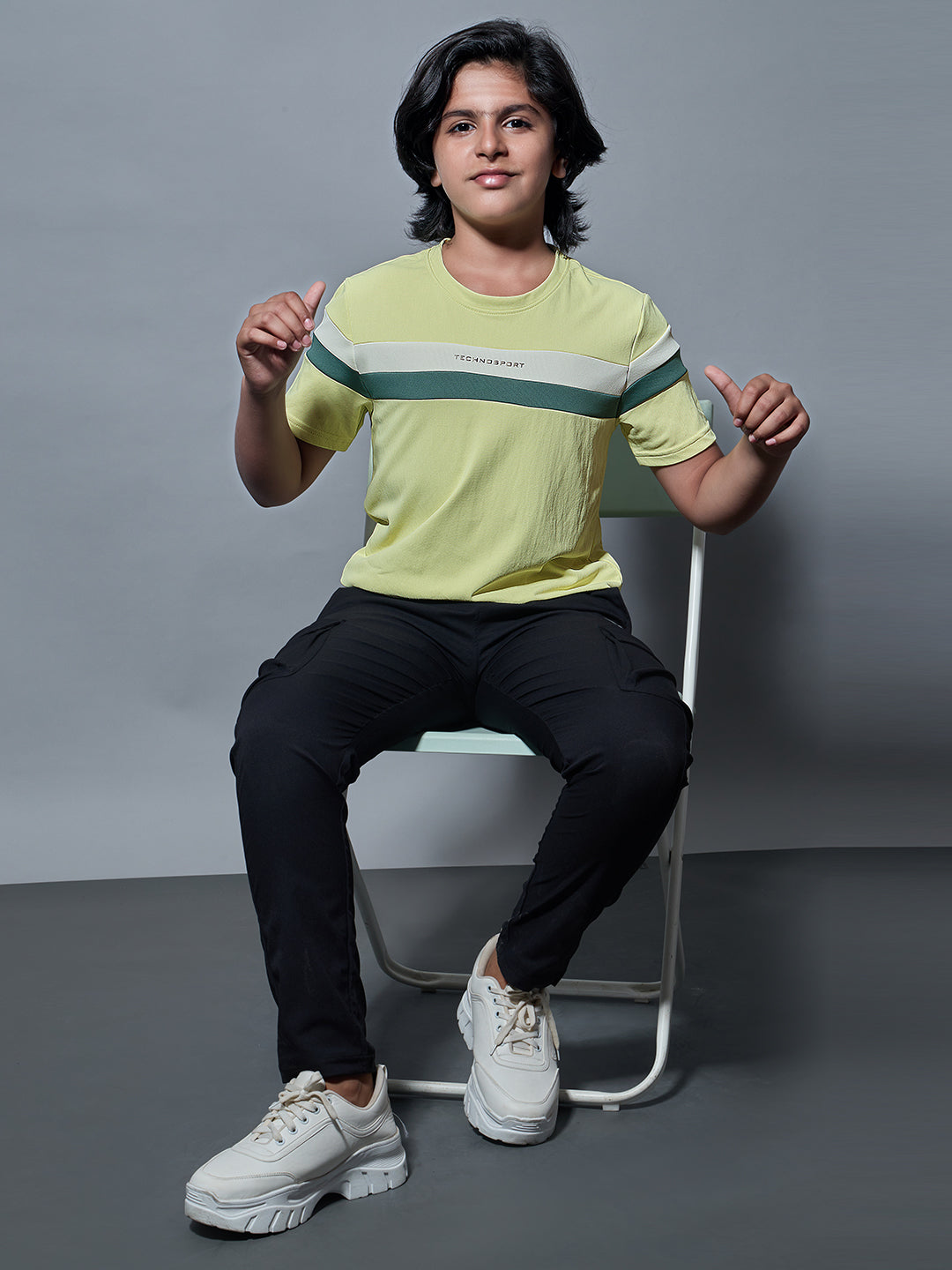 Boys Colorblock Slim Fit Round Neck Sports T-shirt with TECHNO DRY