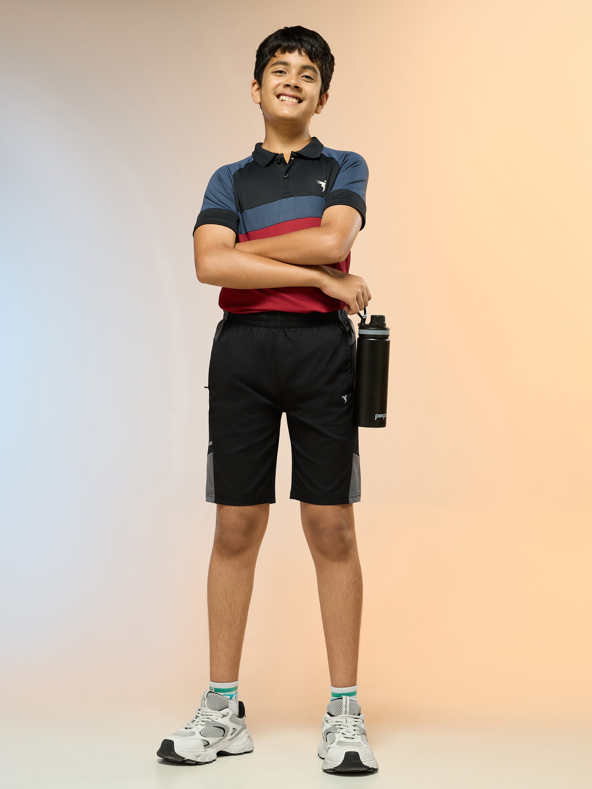 Offer Valid on a Minimum Cart Value of ₹999Boys Colorblock Slim Fit Sports Shorts with TS FLEXI