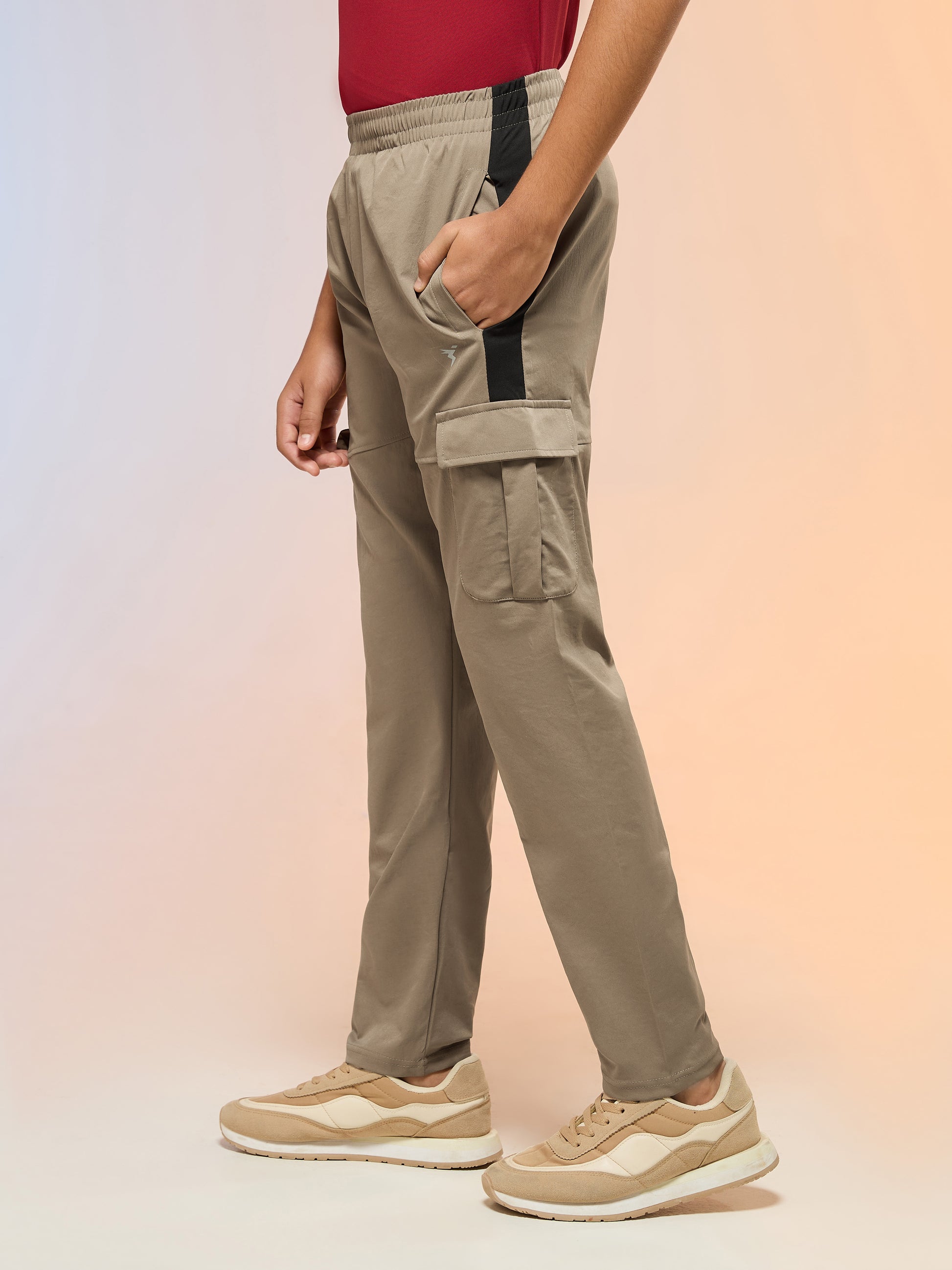 Boys Colorblock Straight Fit Sports Cargo Trackpants with TS FLEXI