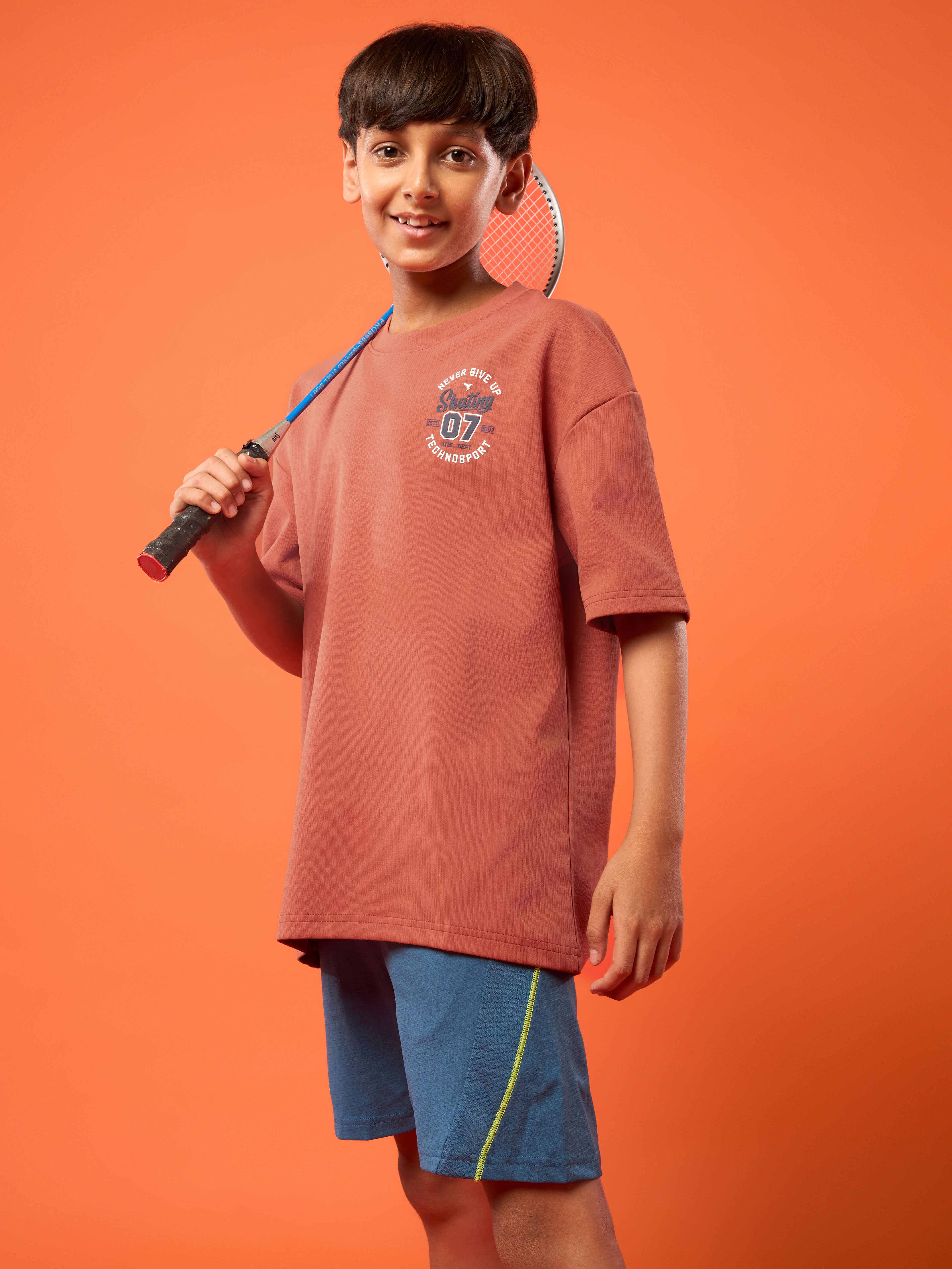 Offer Valid on a Minimum Cart Value of ₹999Boys Oversized Printed Round Neck Sports T-shirt with ELASTOPLUS