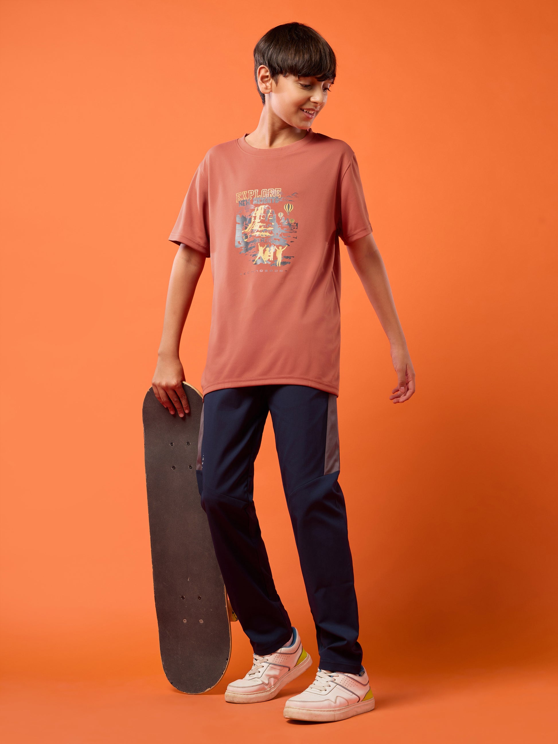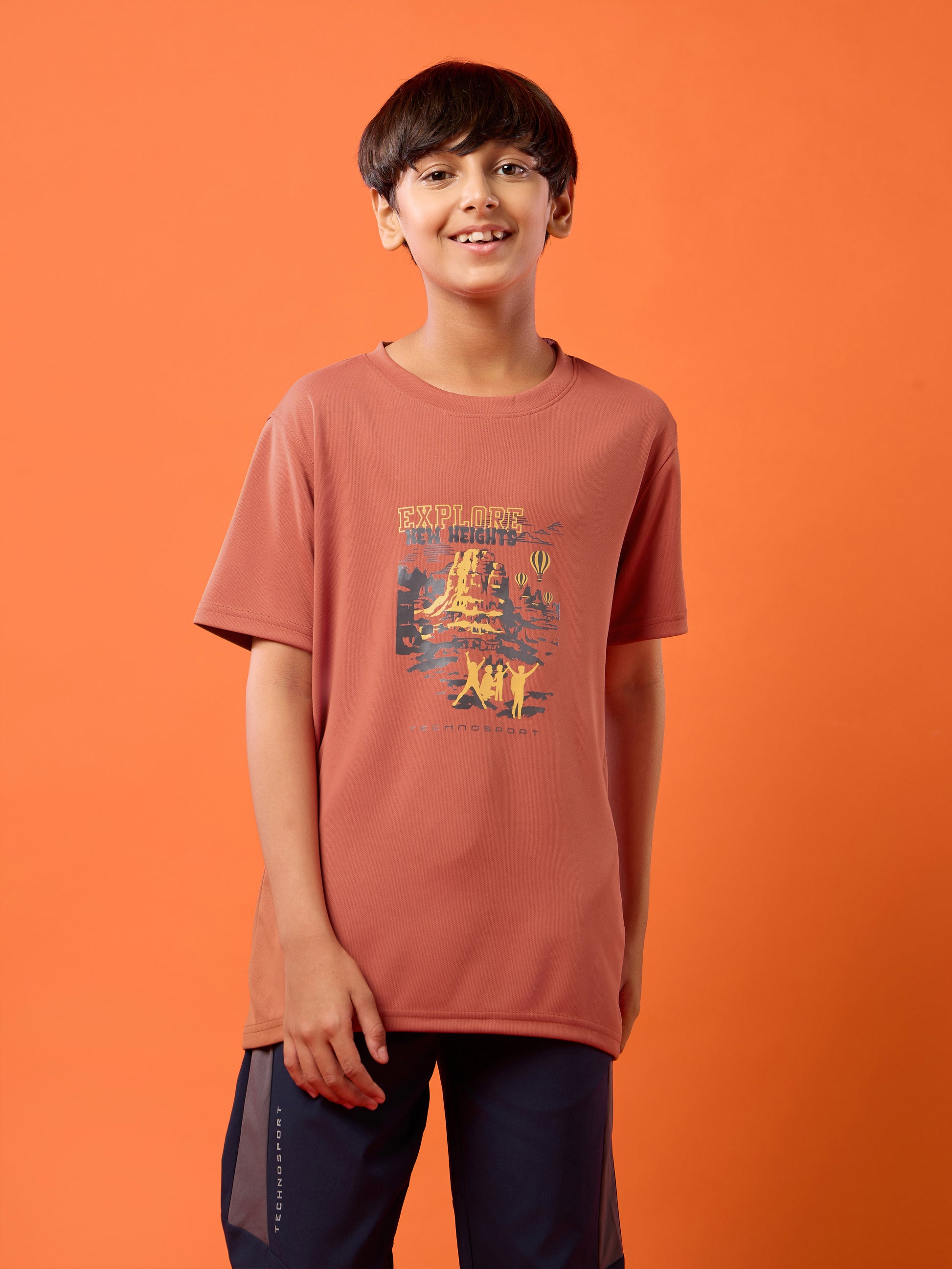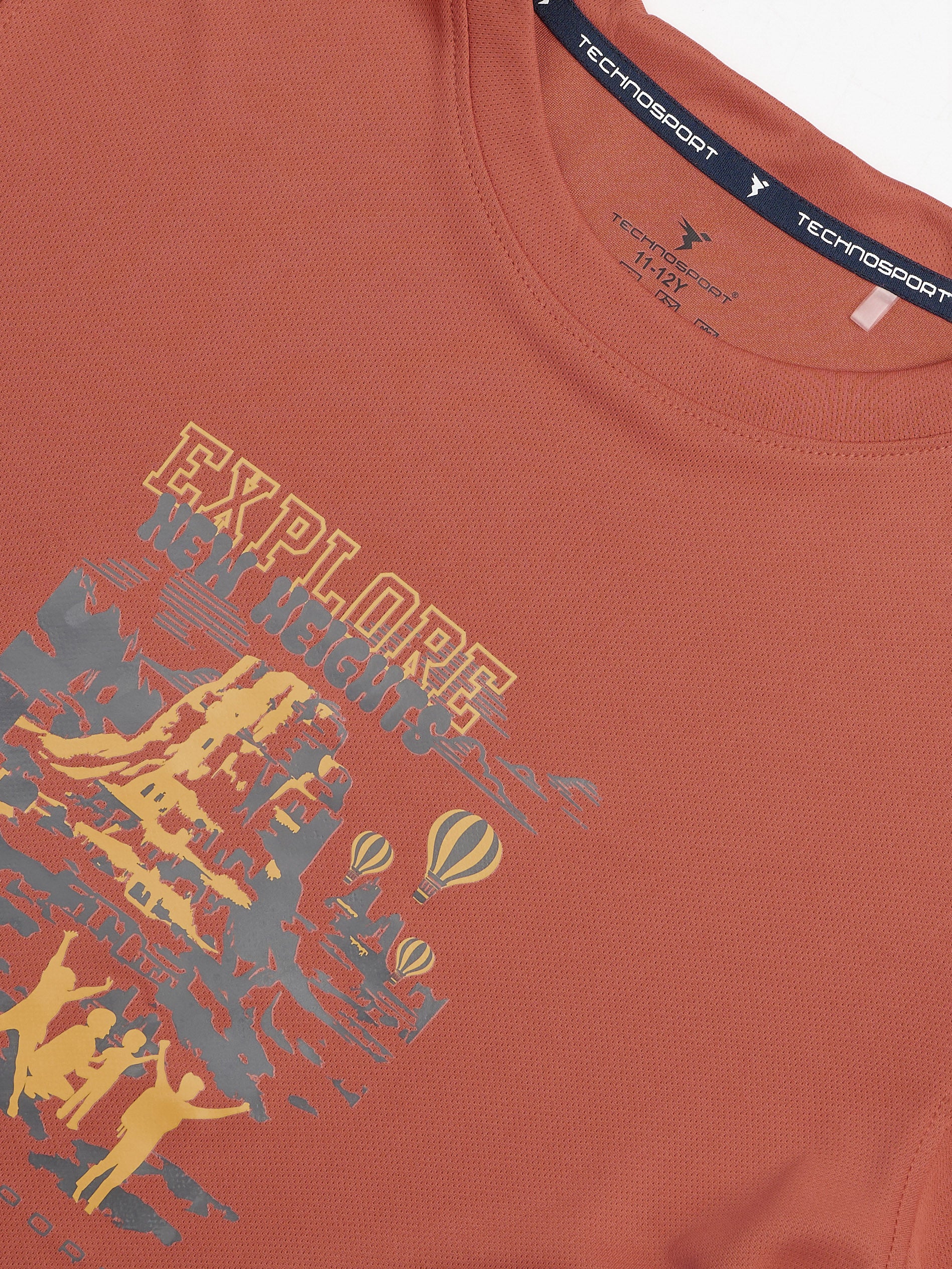 Boys Printed Slim Fit Round Neck Sports T-shirt with TECHNOCOOL+