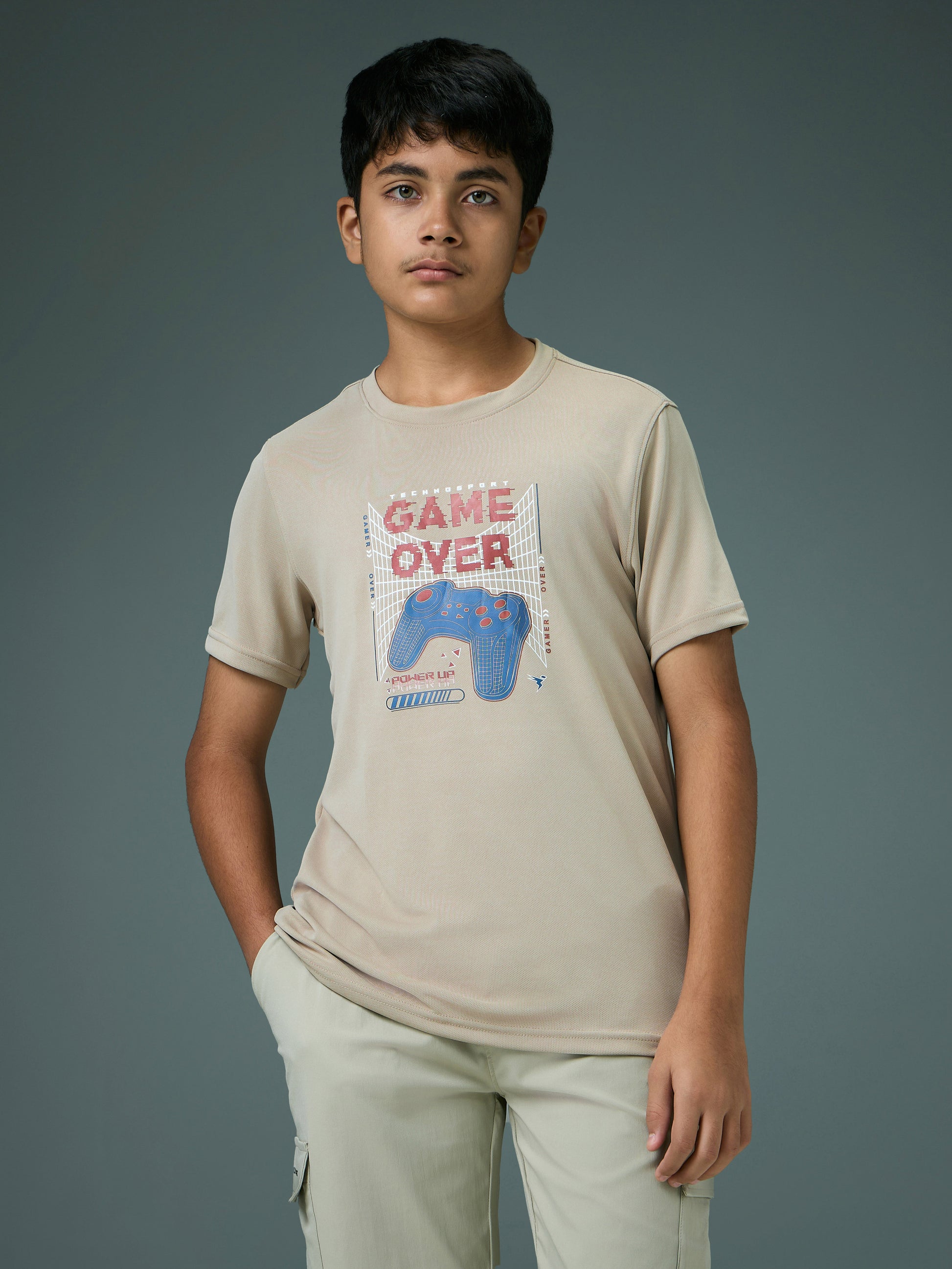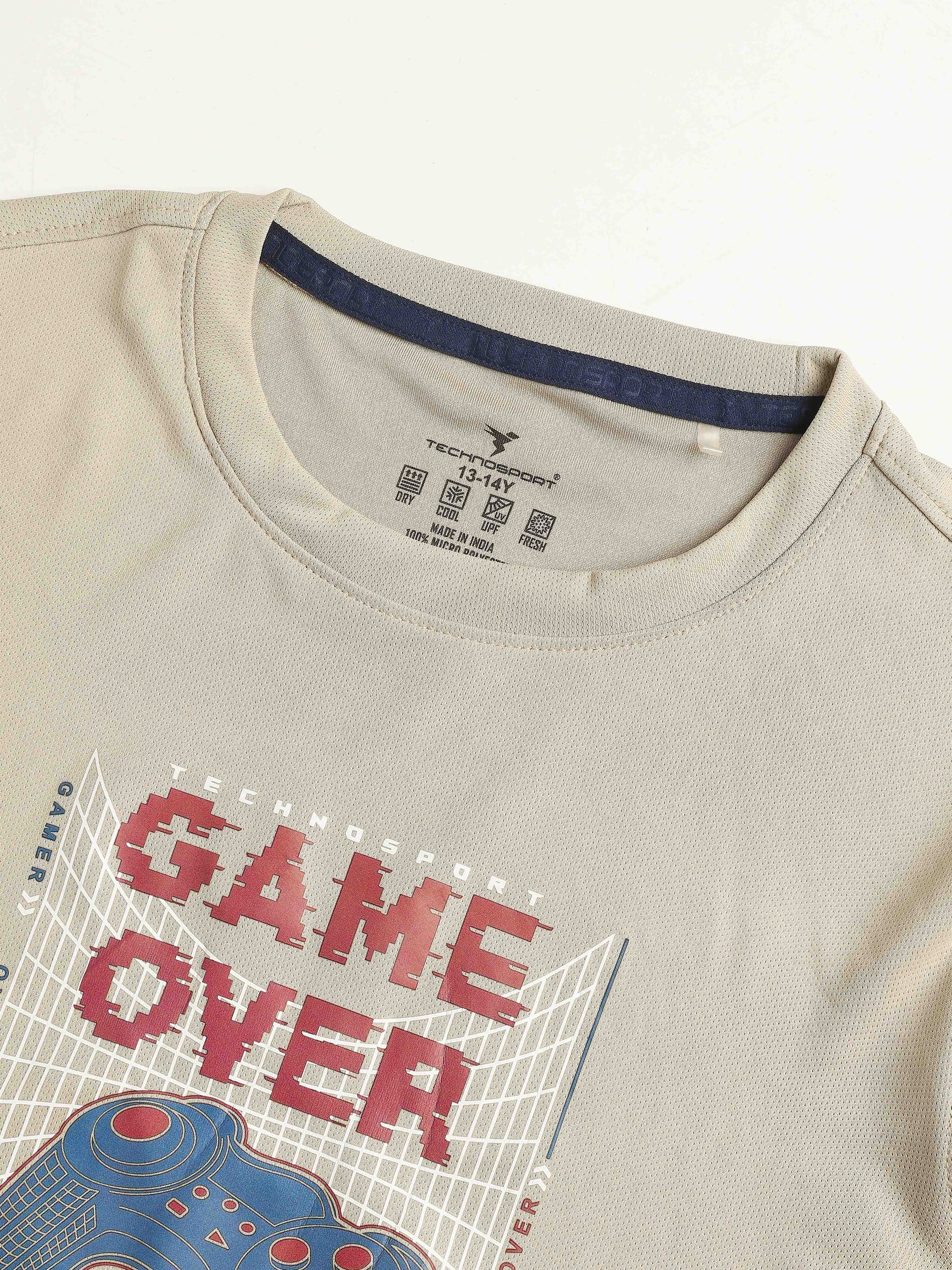 Boys Printed Slim Fit Round Neck Sports T-shirt with TECHNOCOOL+