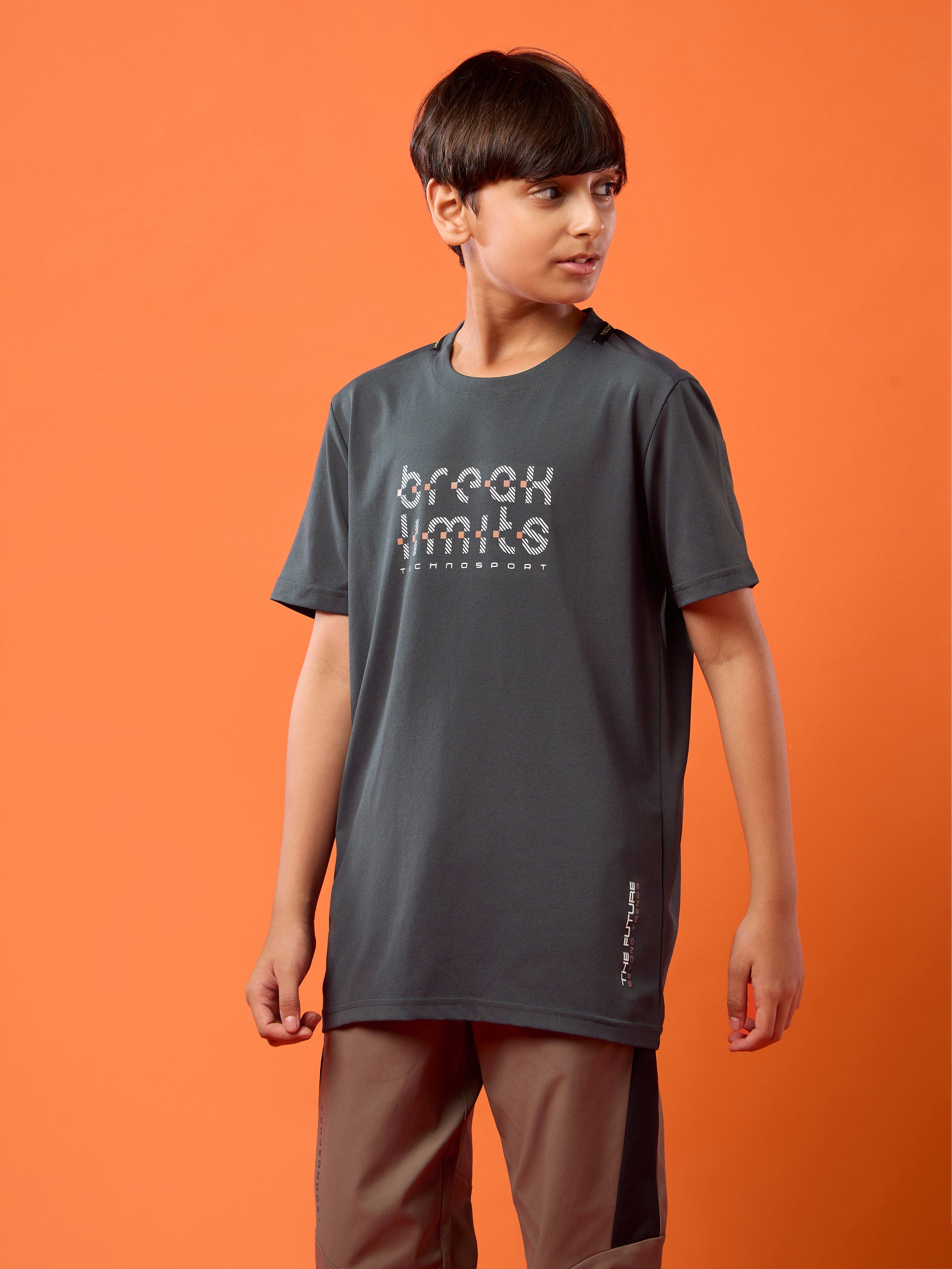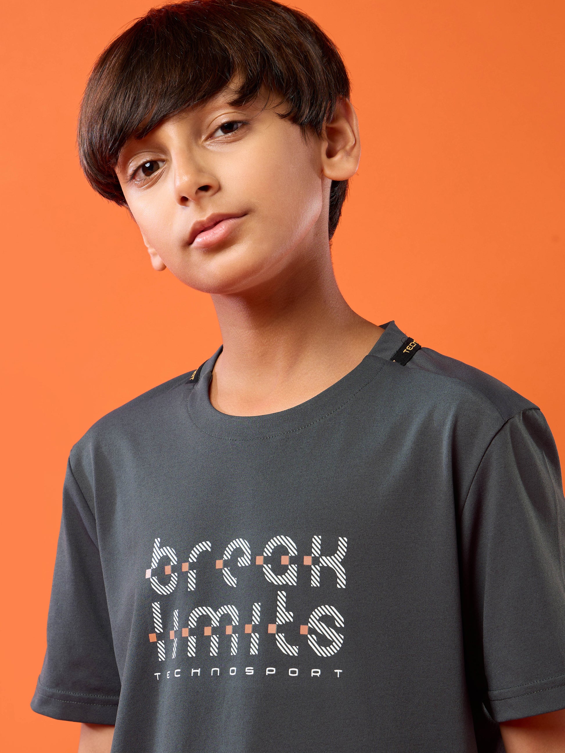 Offer Valid on a Minimum Cart Value of ₹999Boys Slim Fit Typography Printed Round Neck Sports T-shirt with COTFLEX