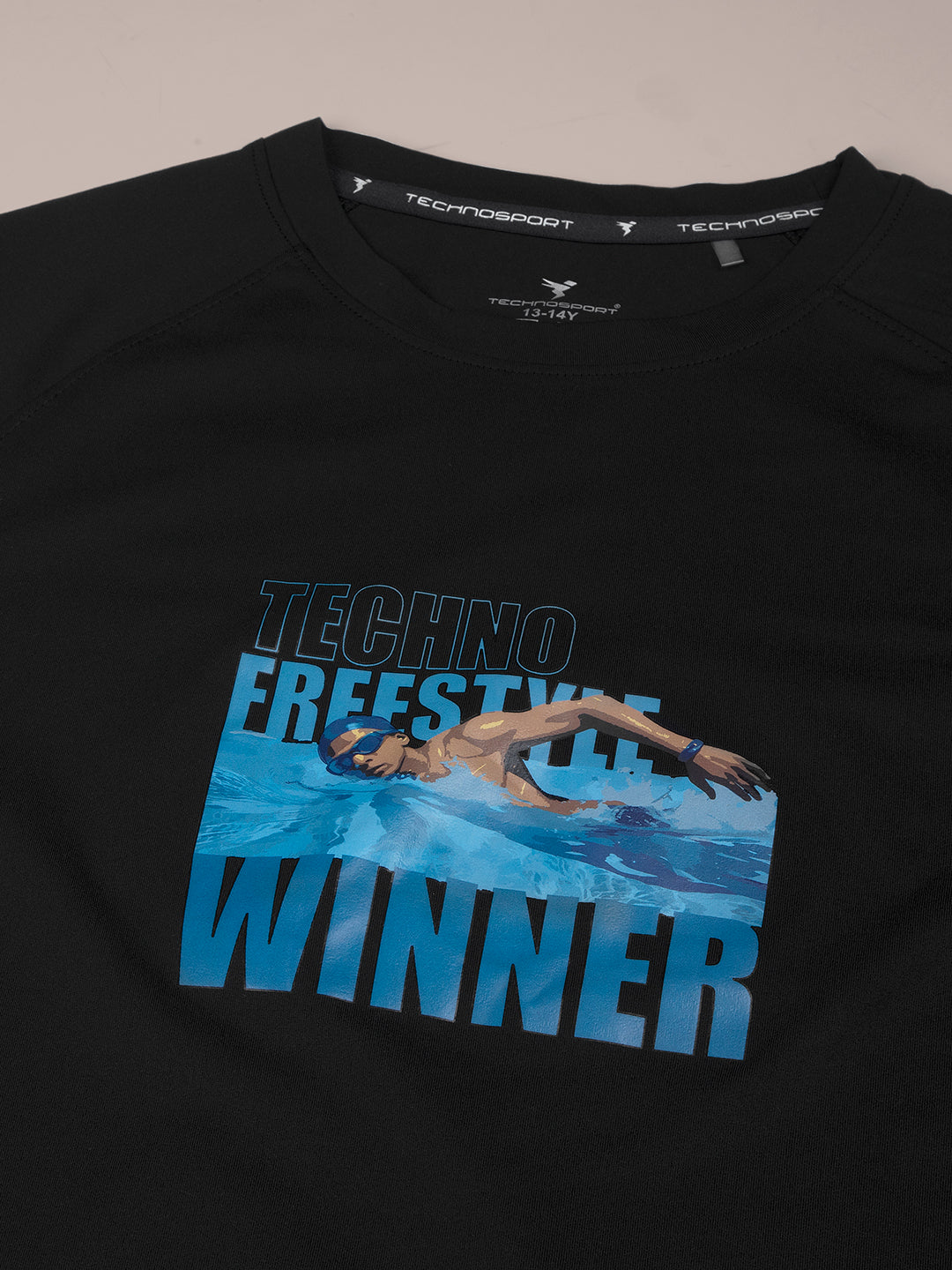 Offer Valid on a Minimum Cart Value of ₹999Boys Solid Slim Fit Round Neck Sports T-shirt with COTFLEX