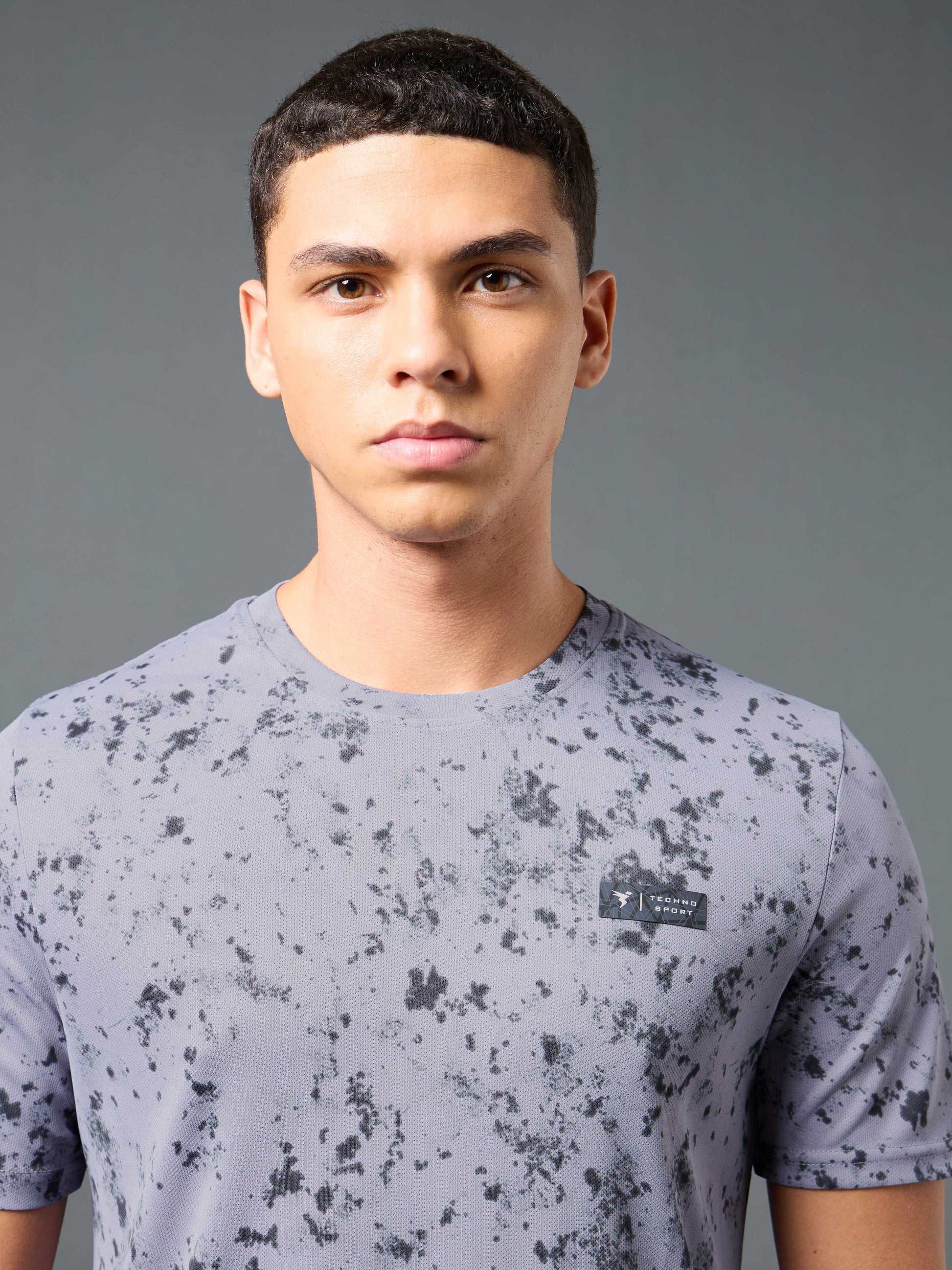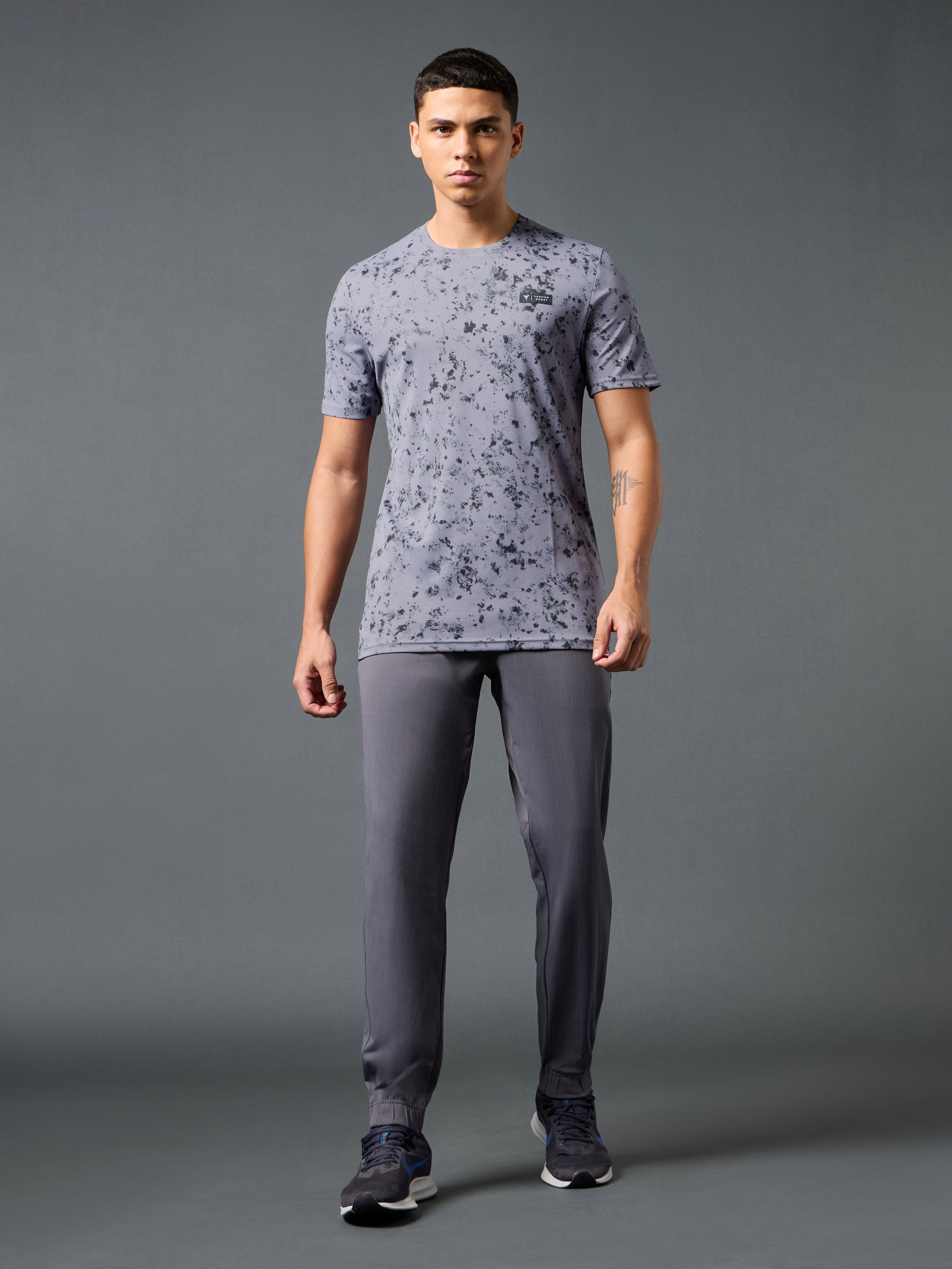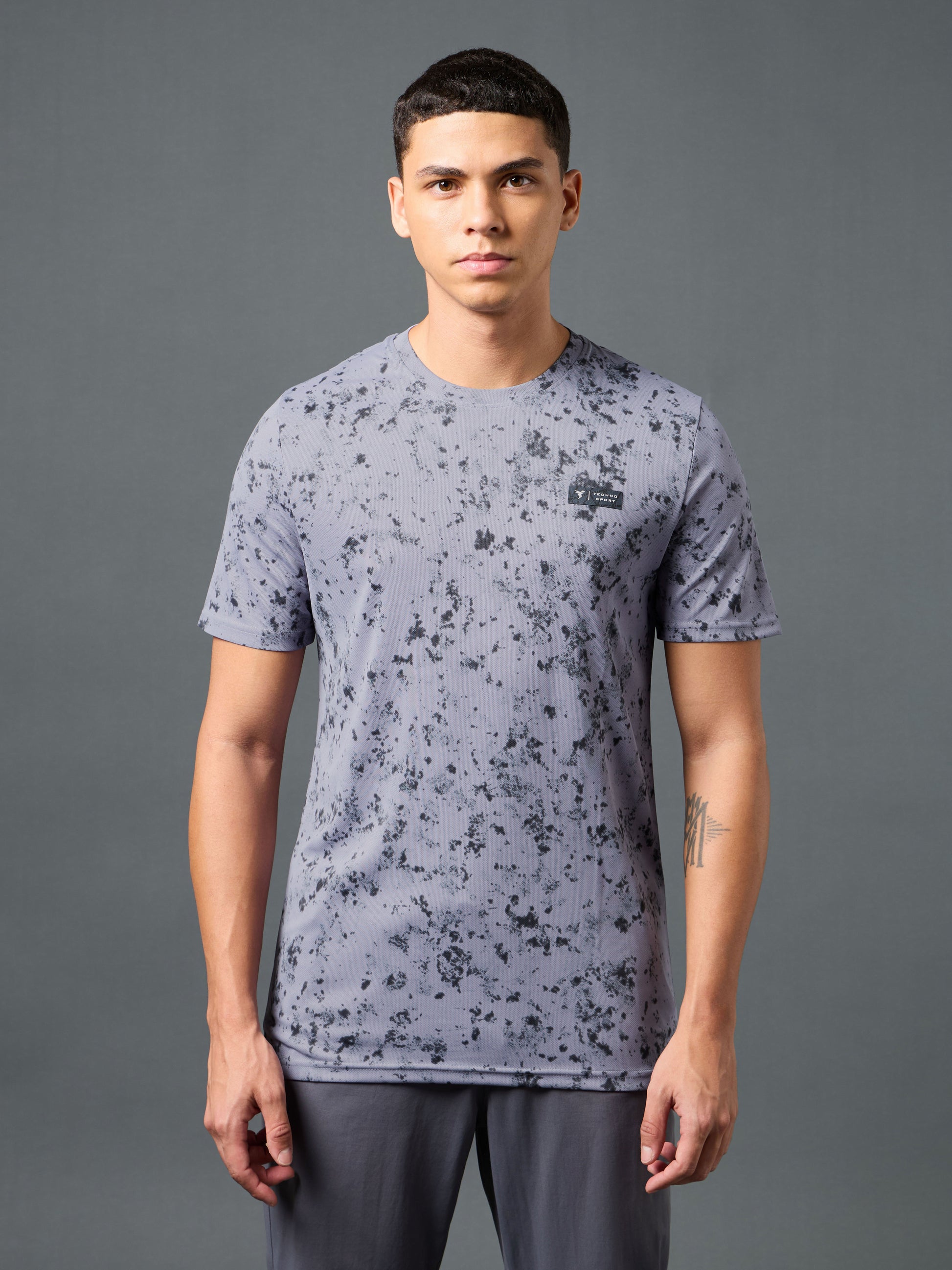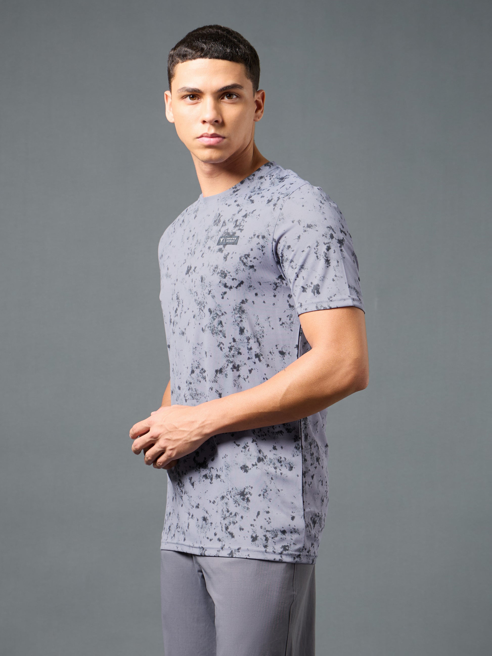 Offer Valid on a Minimum Cart Value of ₹999Men Abstract Print Slim Fit Crew Neck T-shirt with TECHNO COOL+