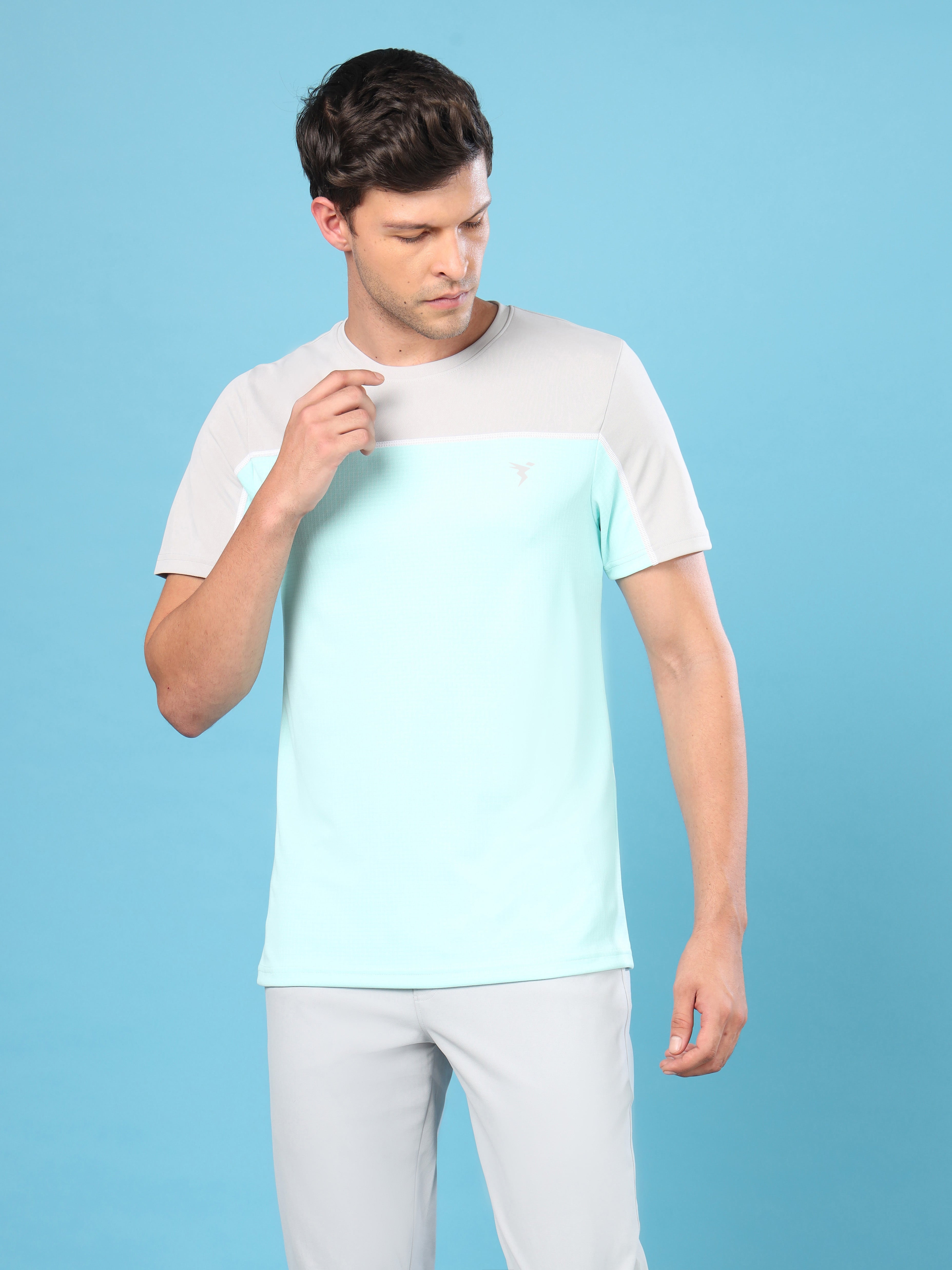Offer Valid on a Minimum Cart Value of ₹999Men Colorblock Slim Fit Crew Neck T-shirt with TECHNO COOL+