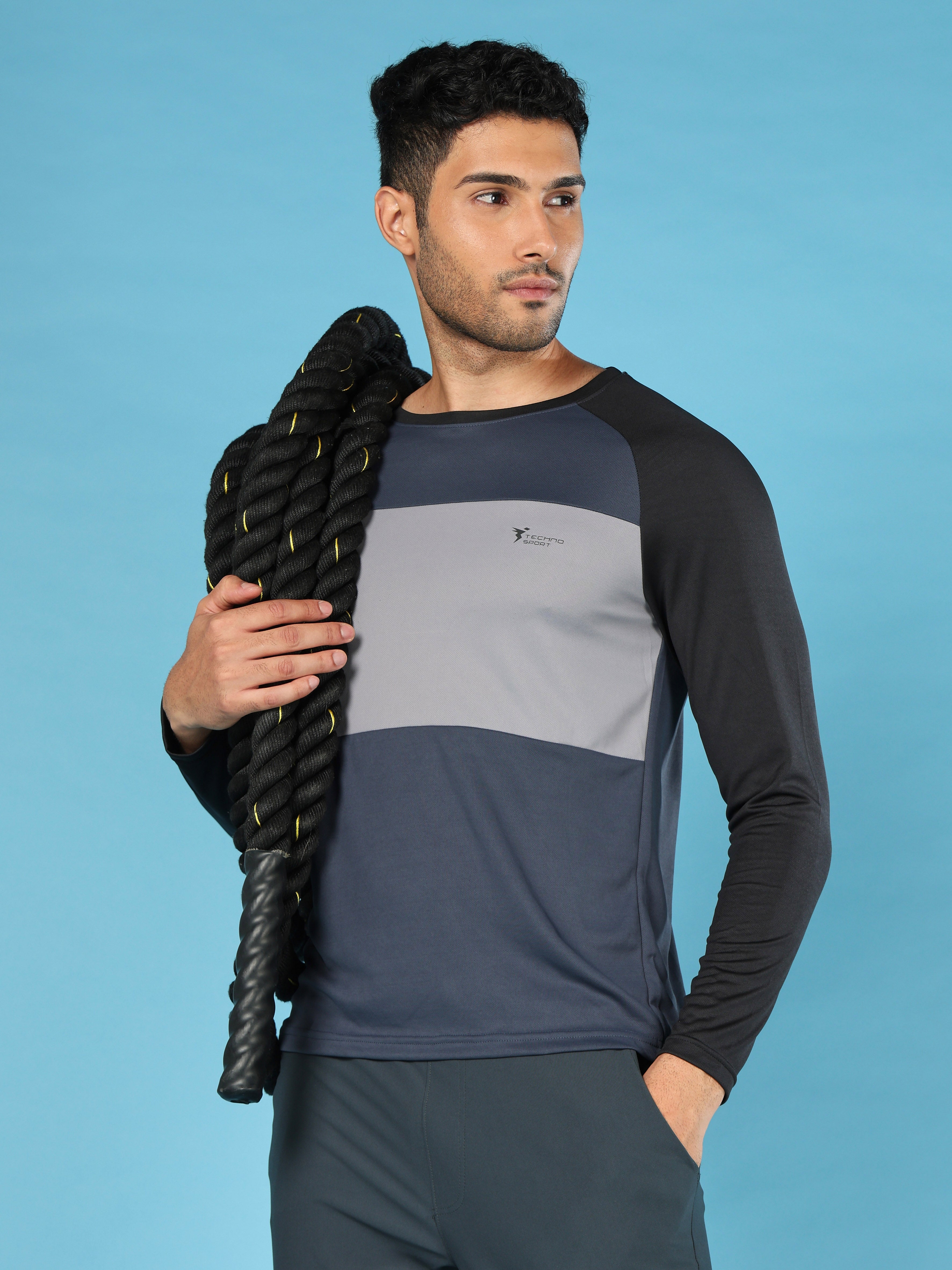 Offer Valid on a Minimum Cart Value of ₹999Men Colorblock Slim Fit Crew Neck T-shirt with TECHNO COOL+