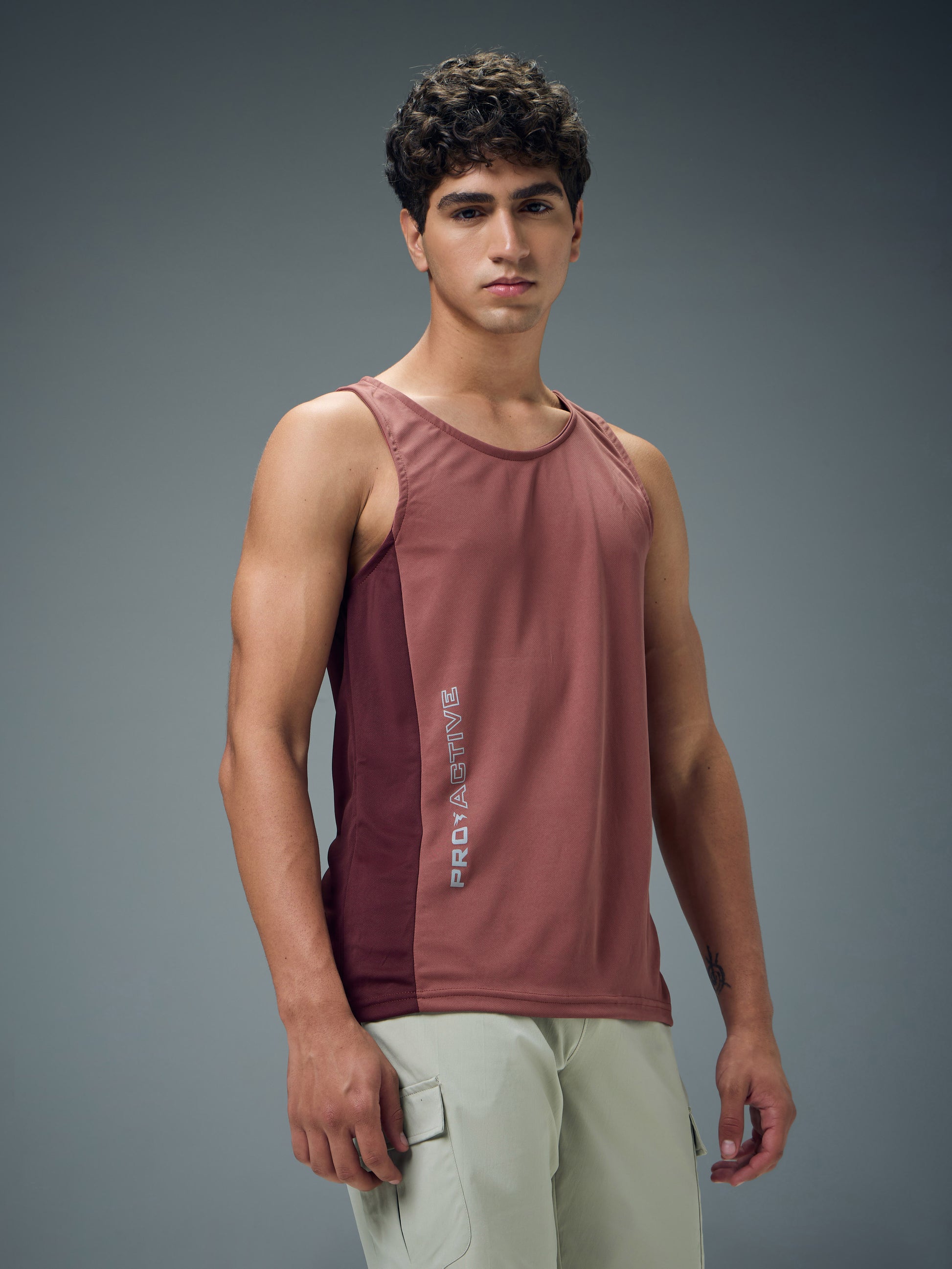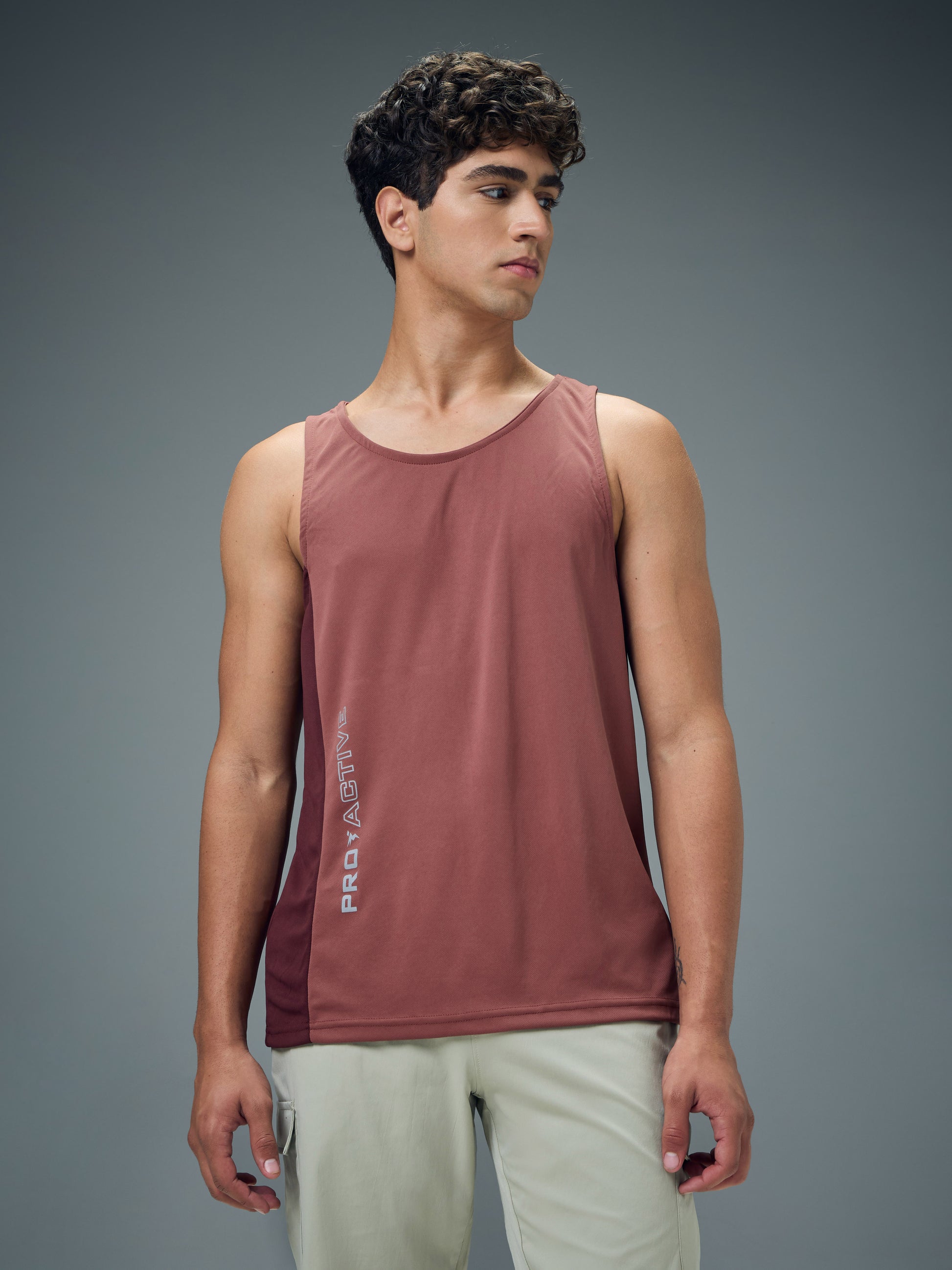 Men Colorblock Slim Fit Scoop Neck Sports Innerwear Vest with TECHNOCOOL+