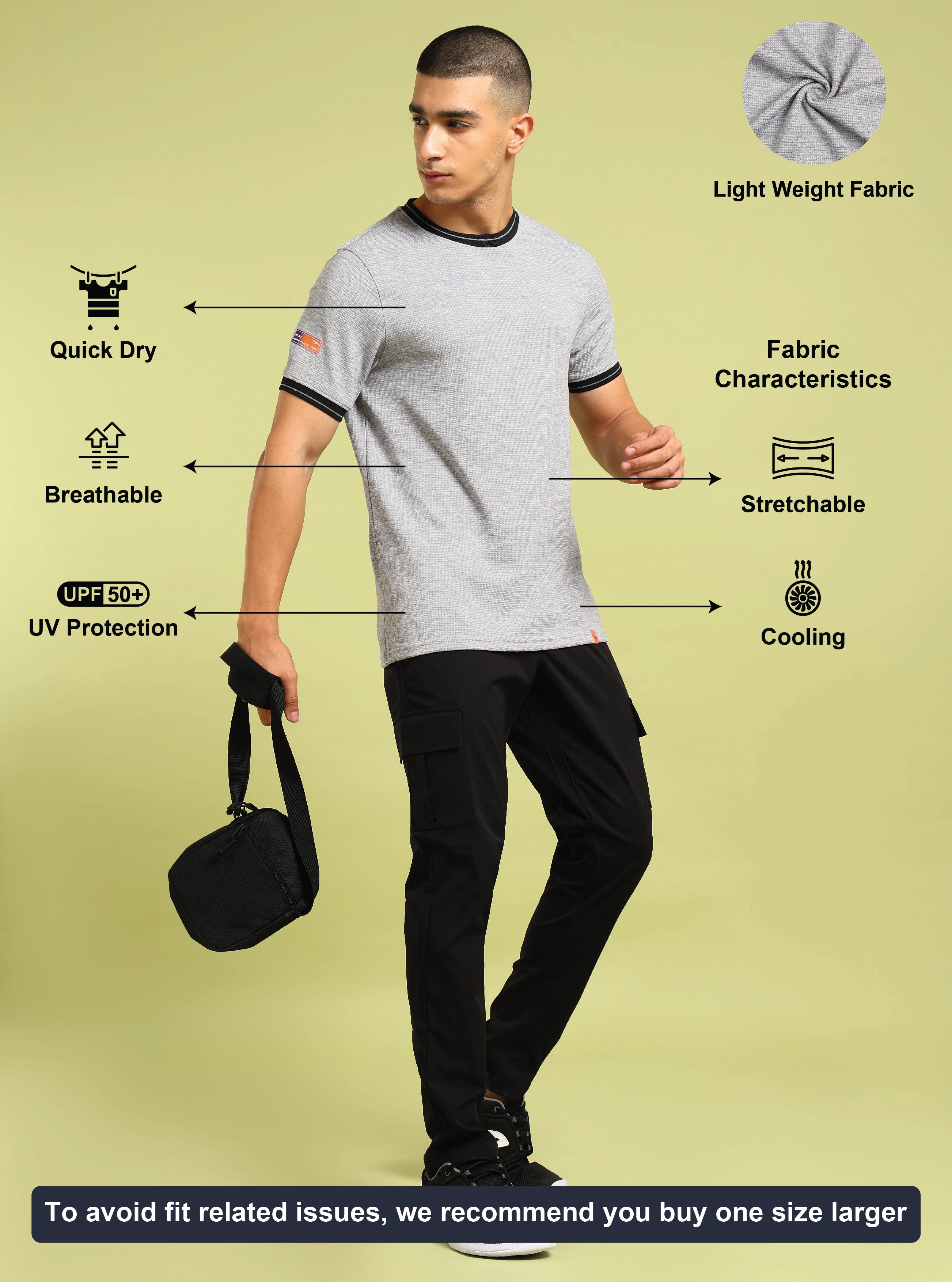 Men Cubic Melange Slim Fit Round Neck Sports T-shirt with DOUBLE COOL