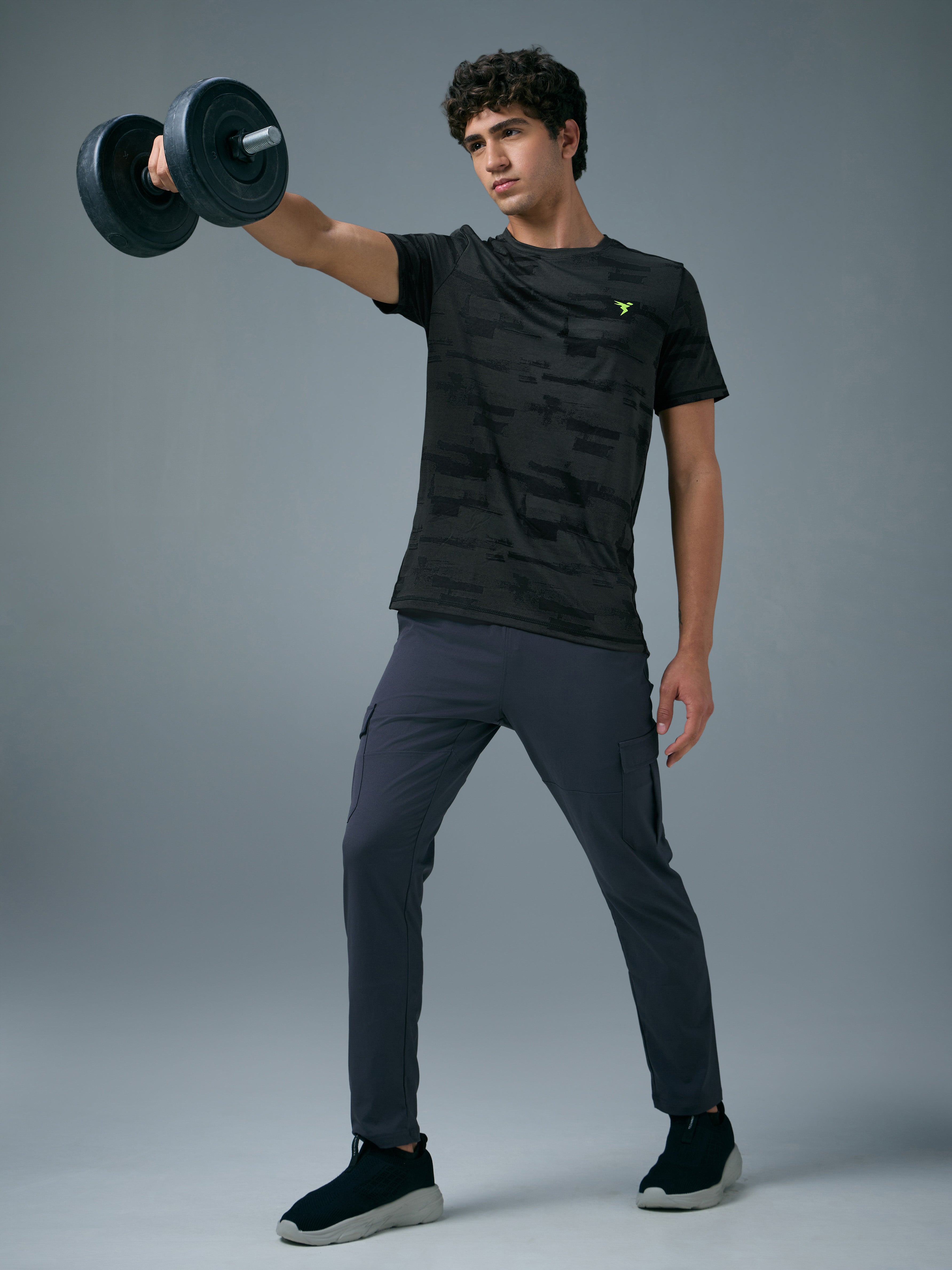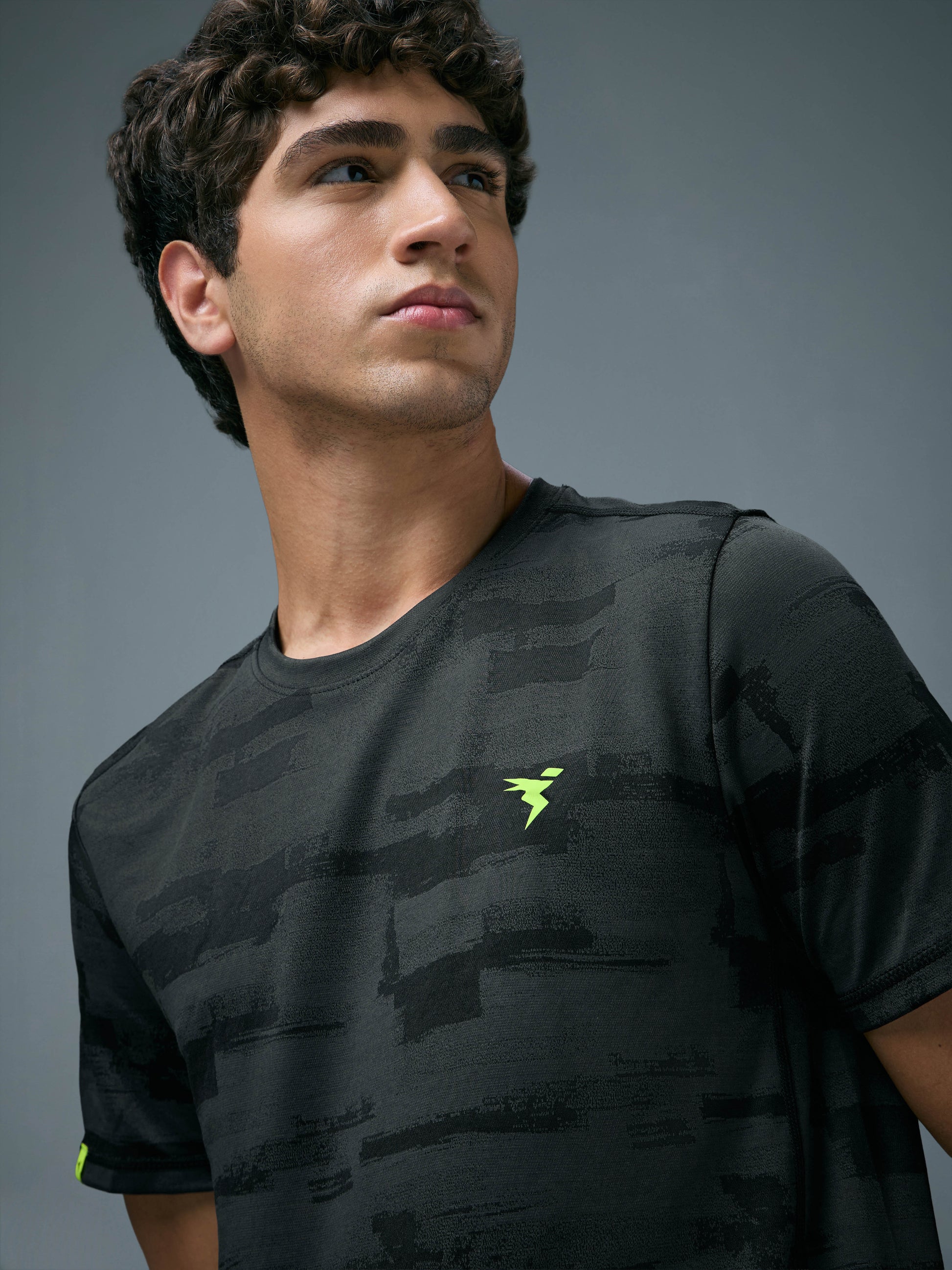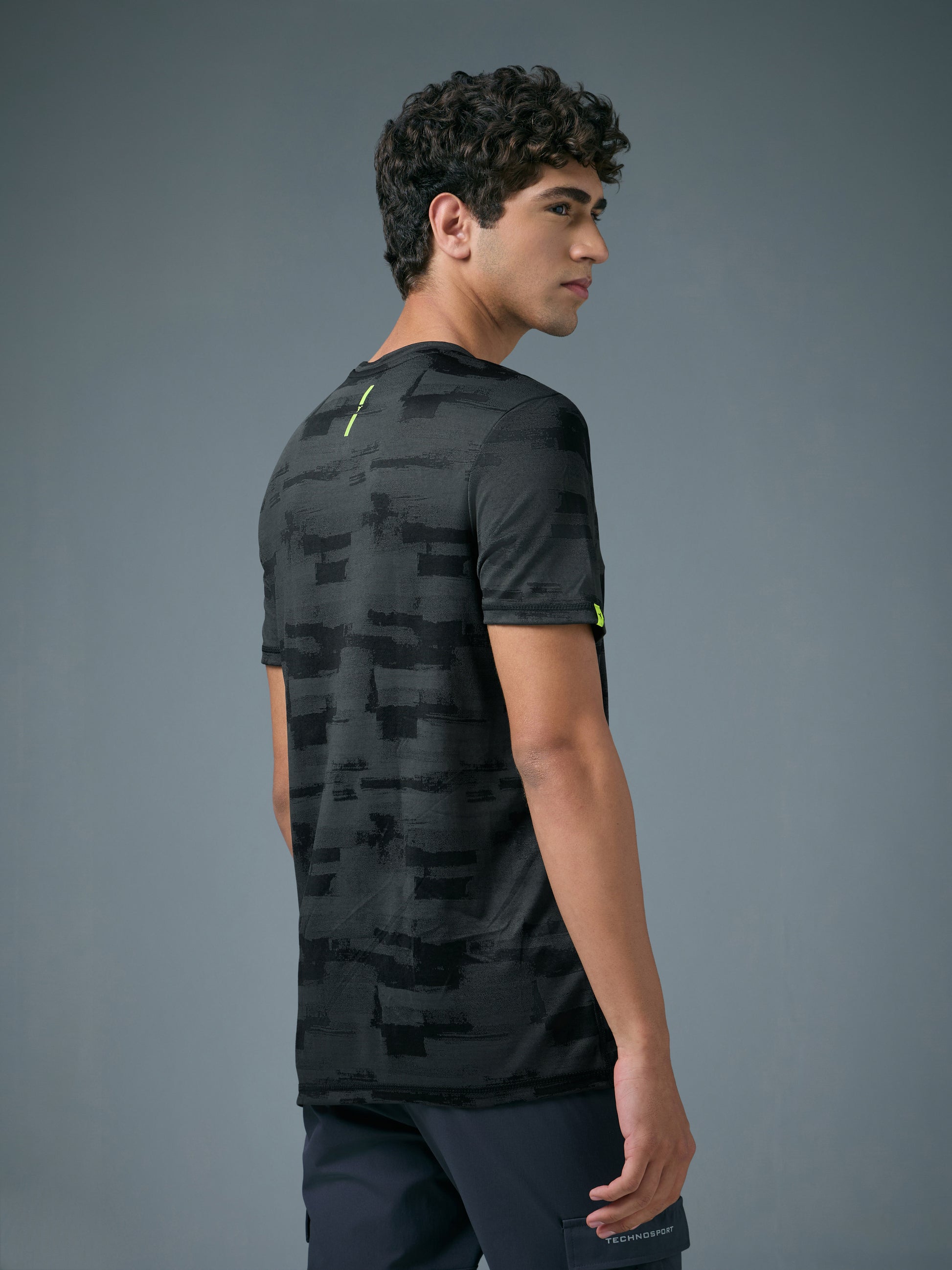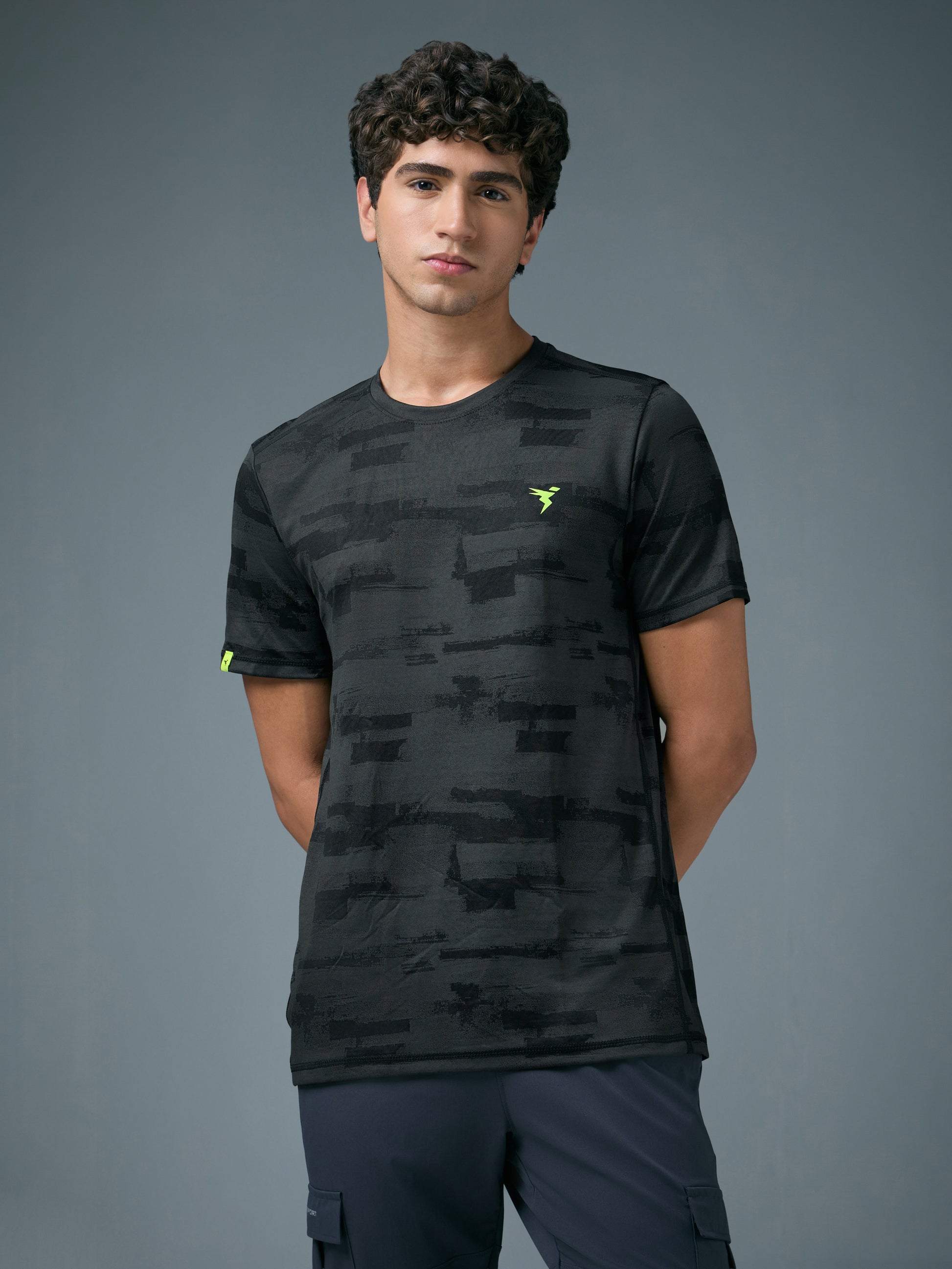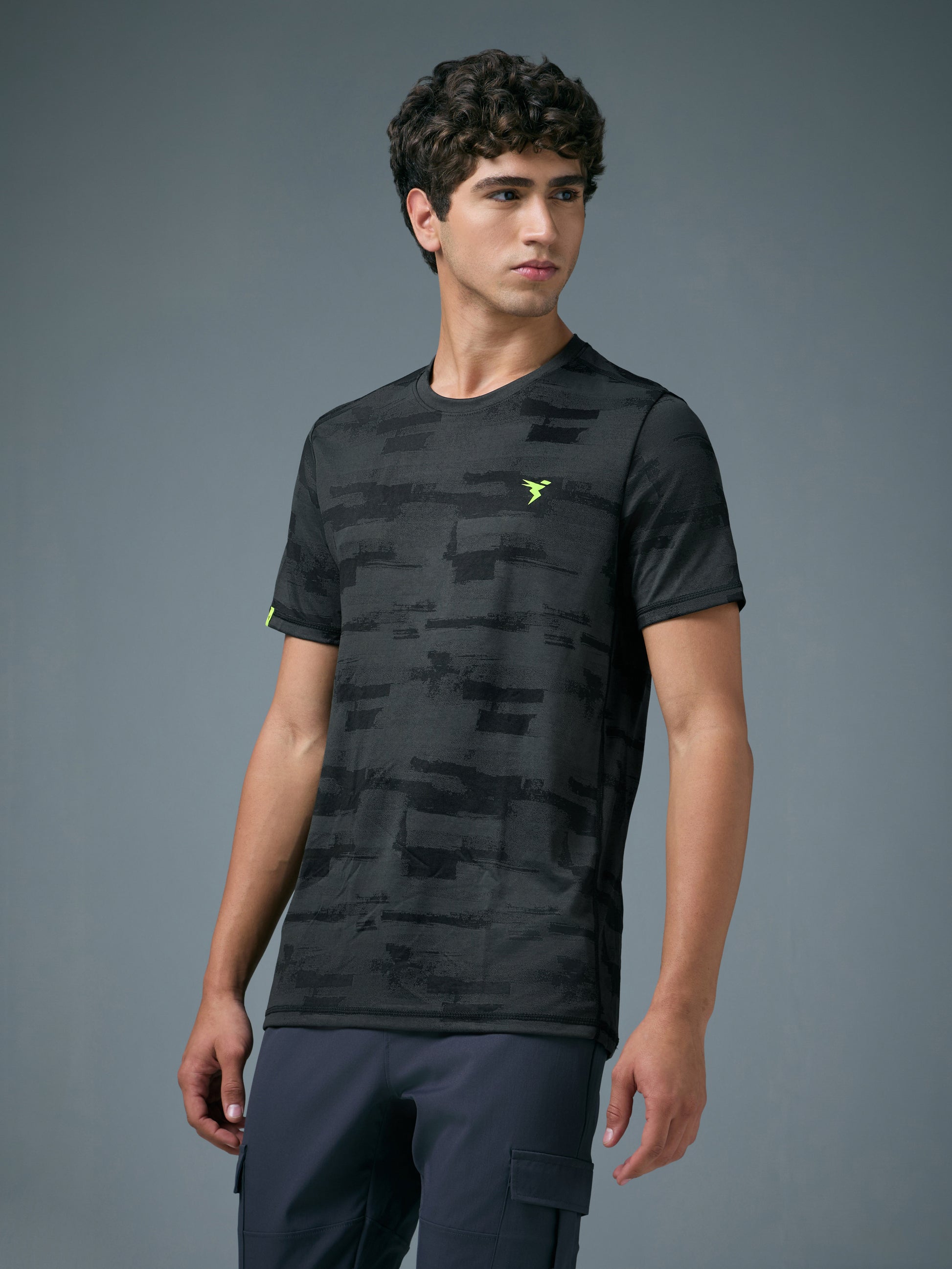 Offer Valid on a Minimum Cart Value of ₹999Men Jacquard Slim Fit Crew Neck T-shirt with DOUBLE COOL