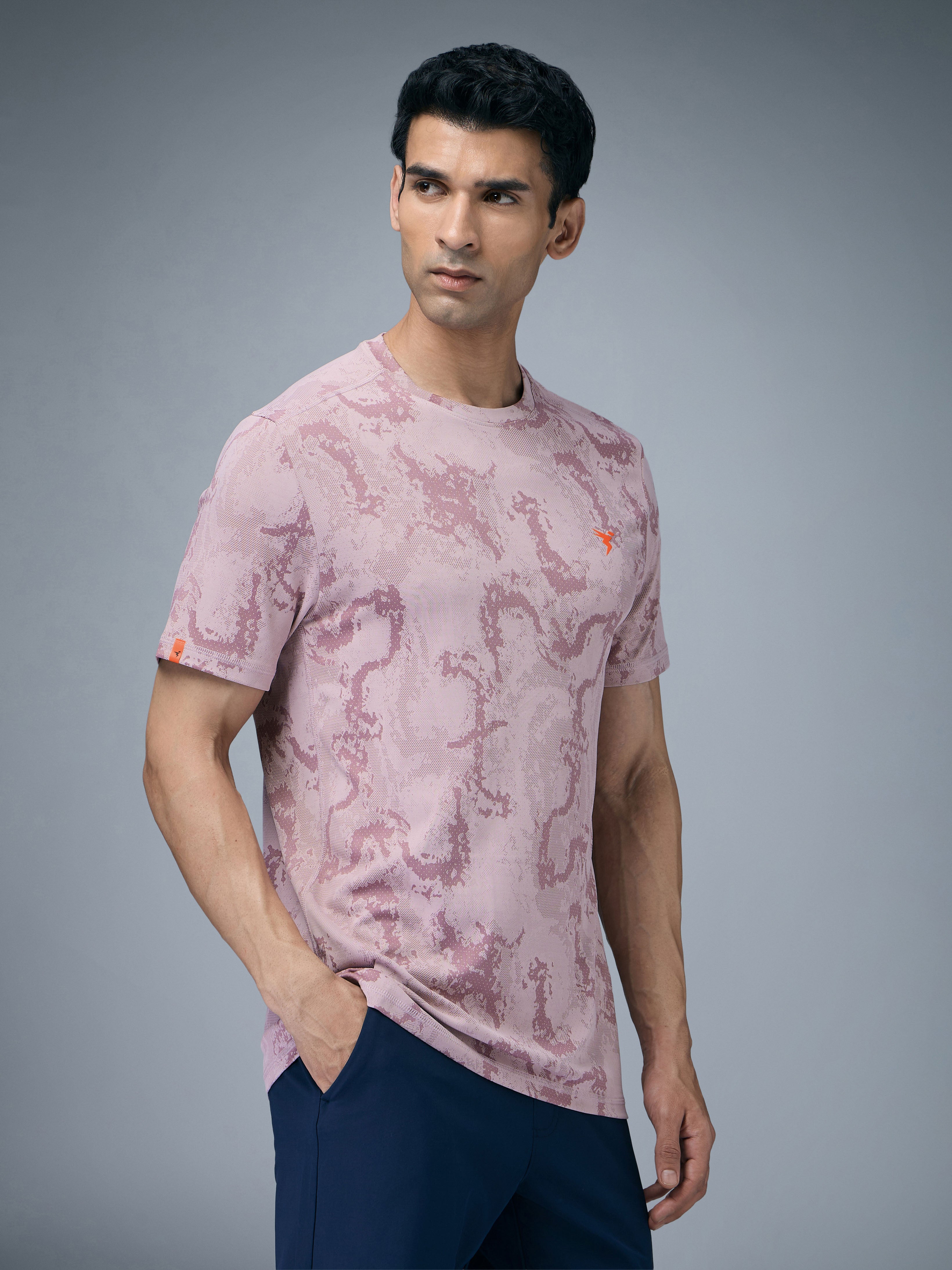 Offer Valid on a Minimum Cart Value of ₹999Men Jacquard Slim Fit Crew Neck T-shirt with DOUBLE COOL