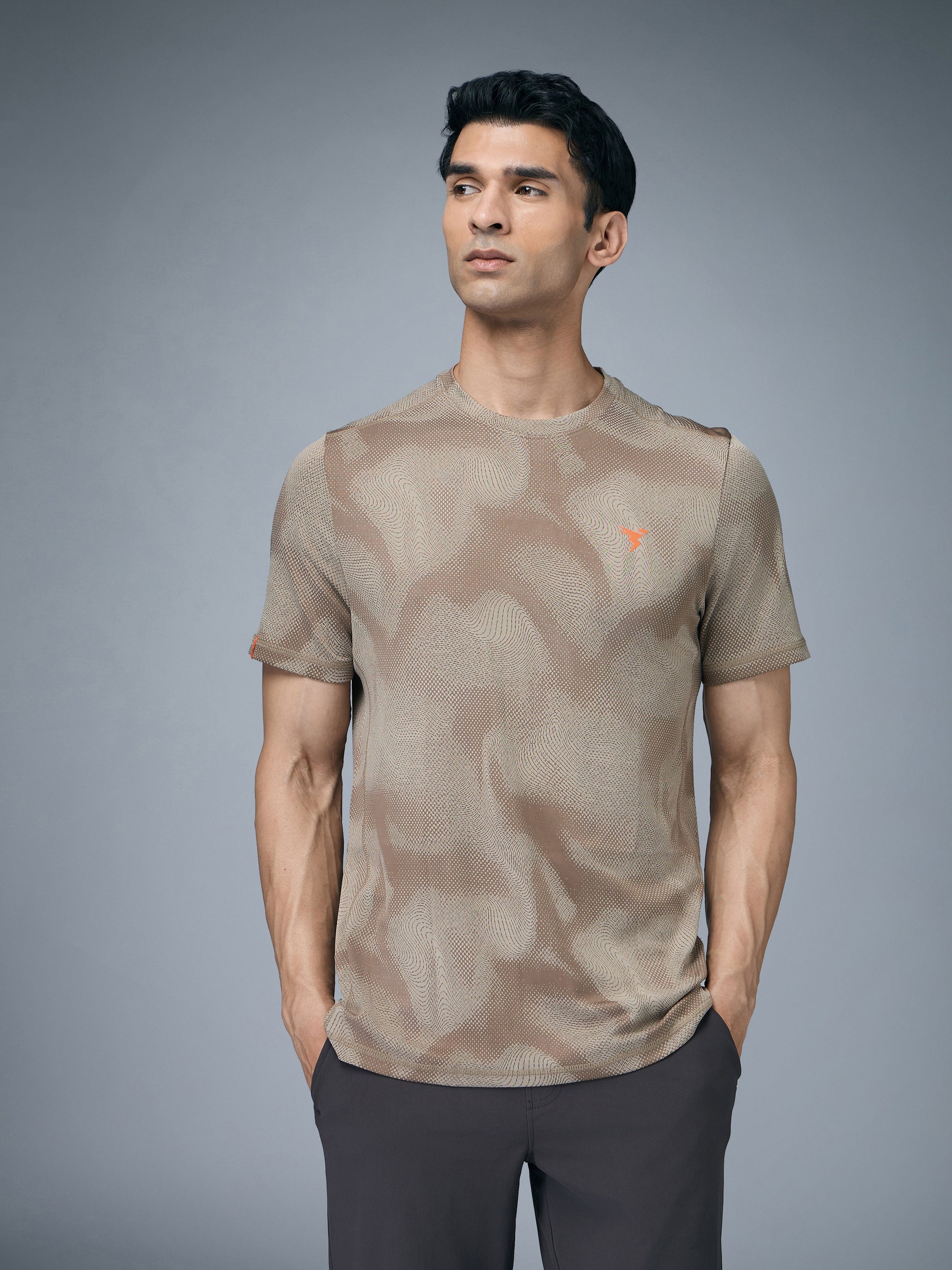 Offer Valid on a Minimum Cart Value of ₹999Men Jacquard Slim Fit Crew Neck T-shirt with DOUBLE COOL