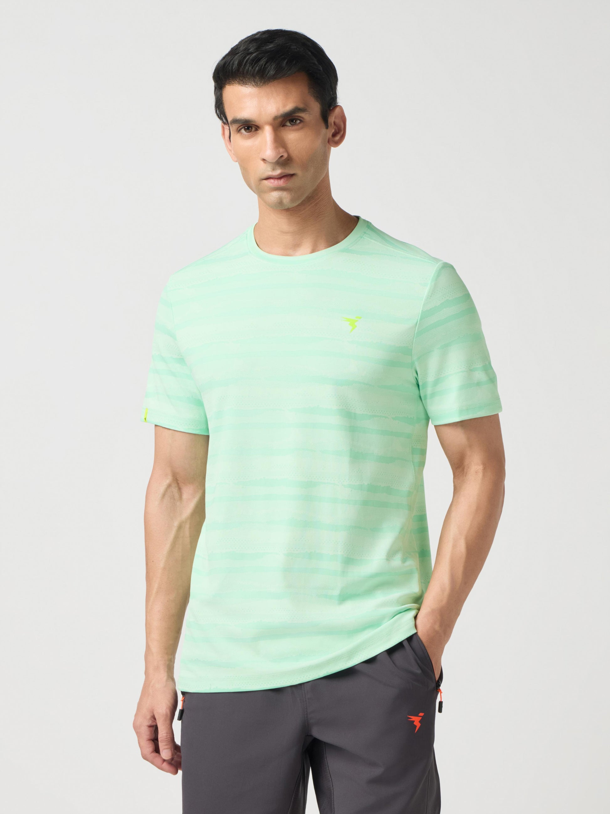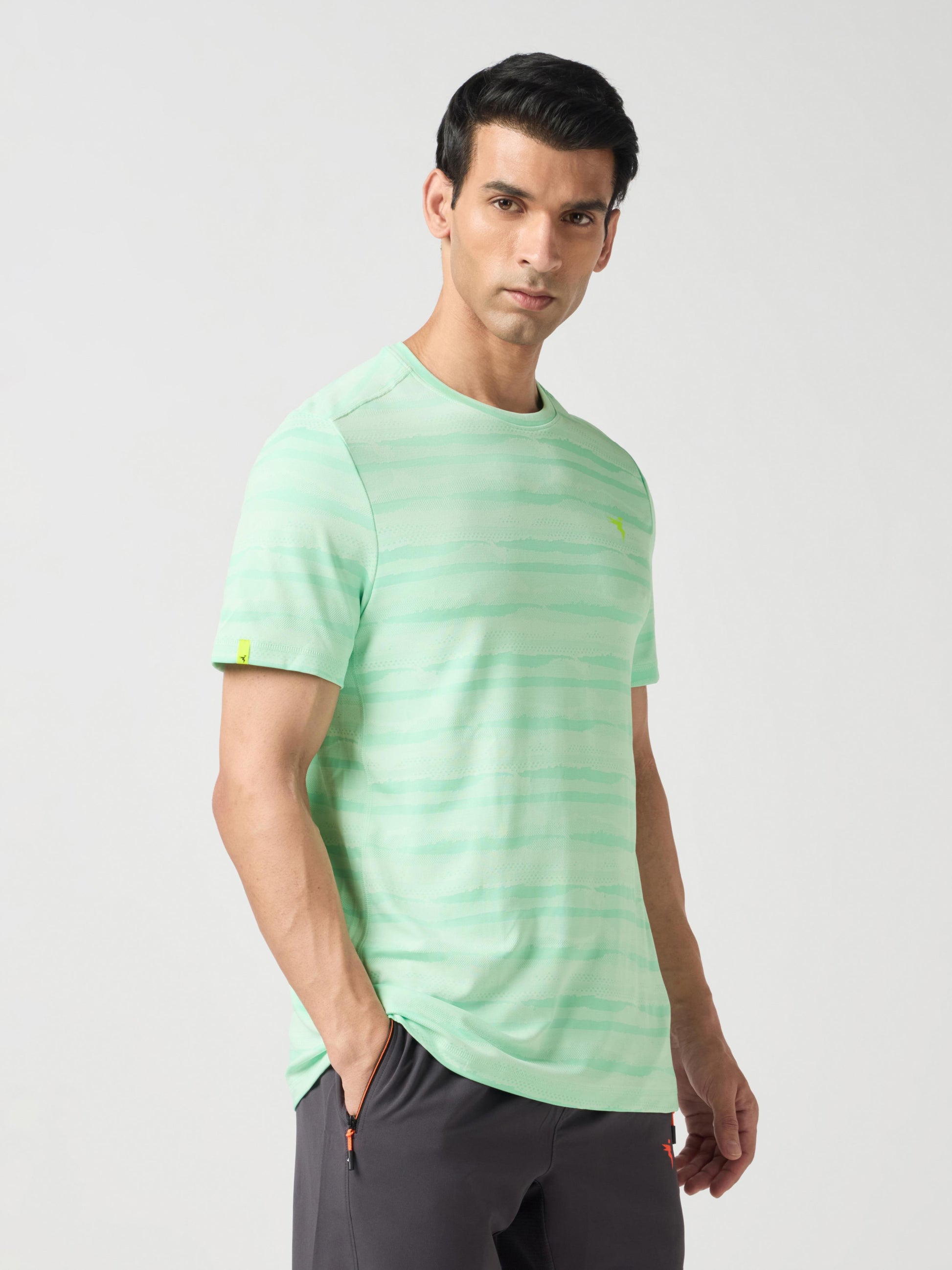 Men Jacquard Slim Fit Crew Neck T-shirt with DOUBLE COOL