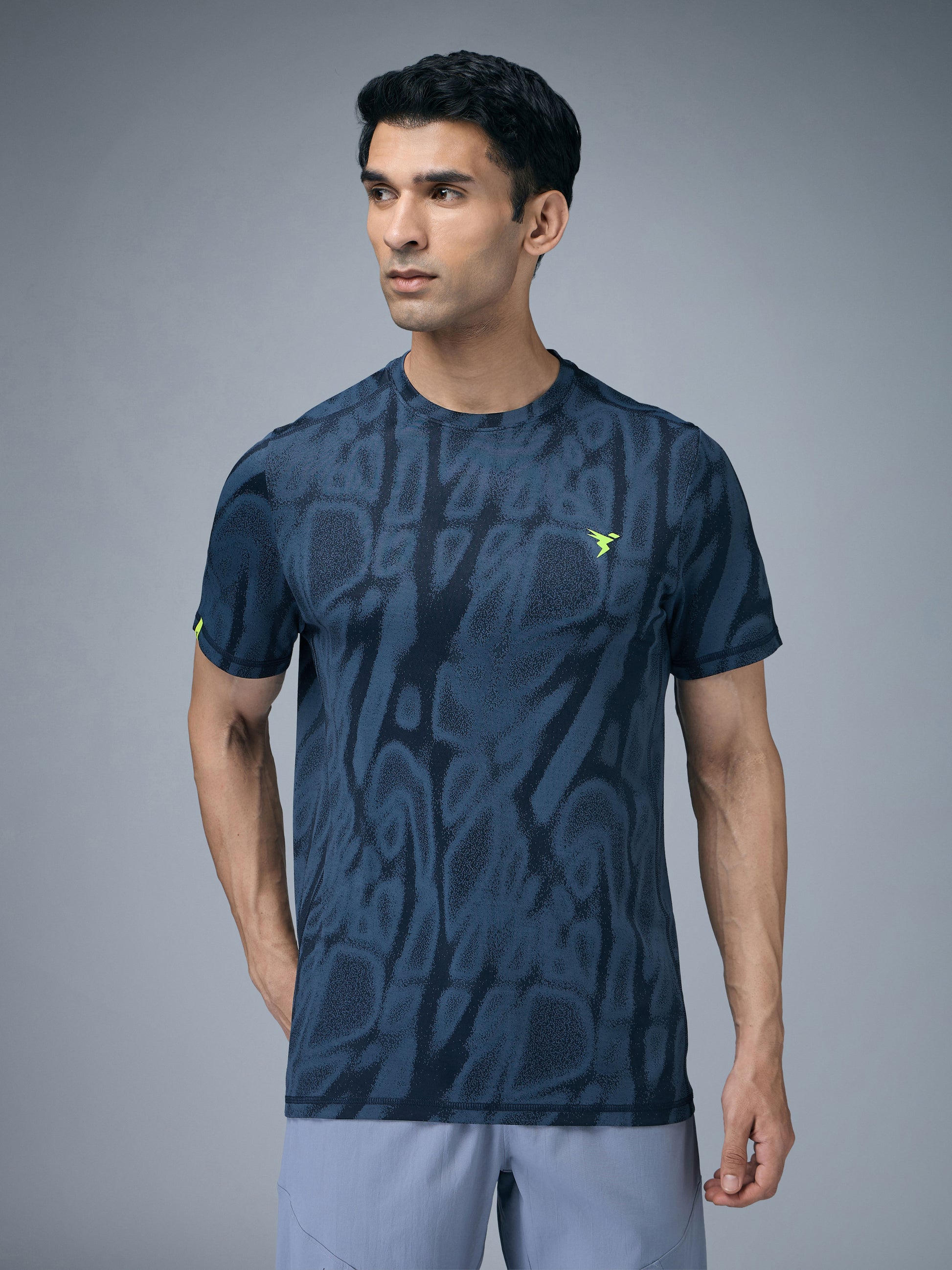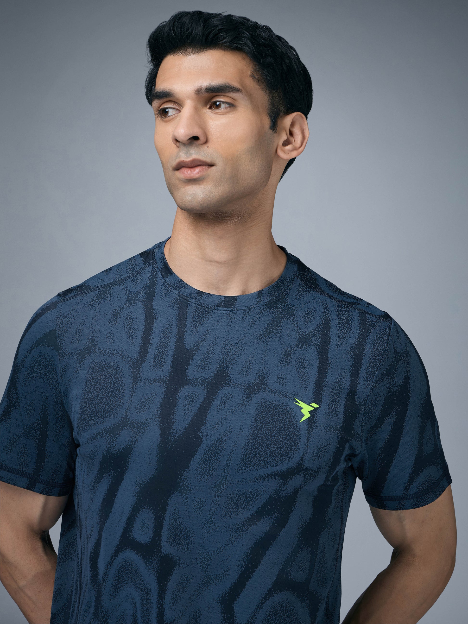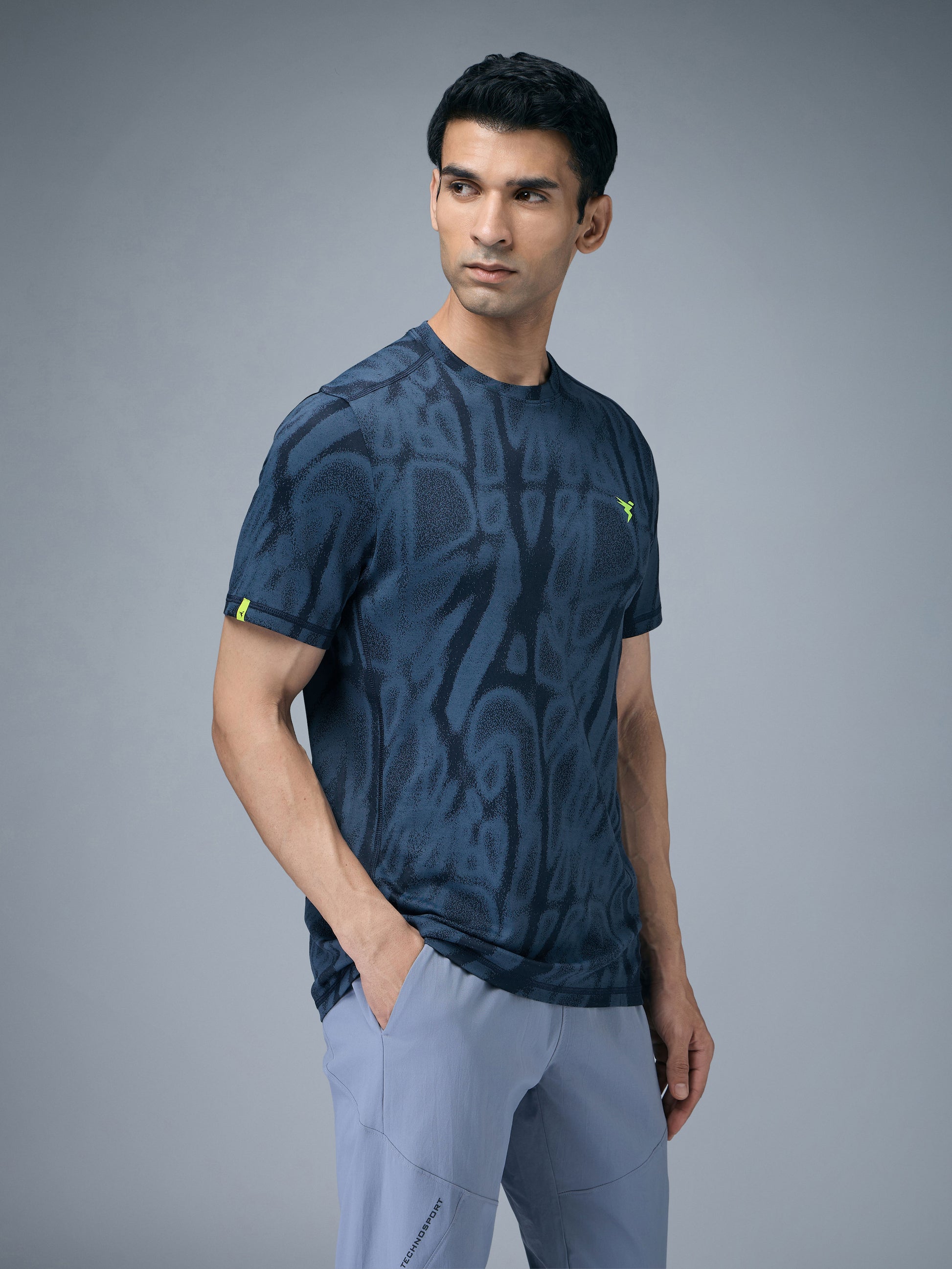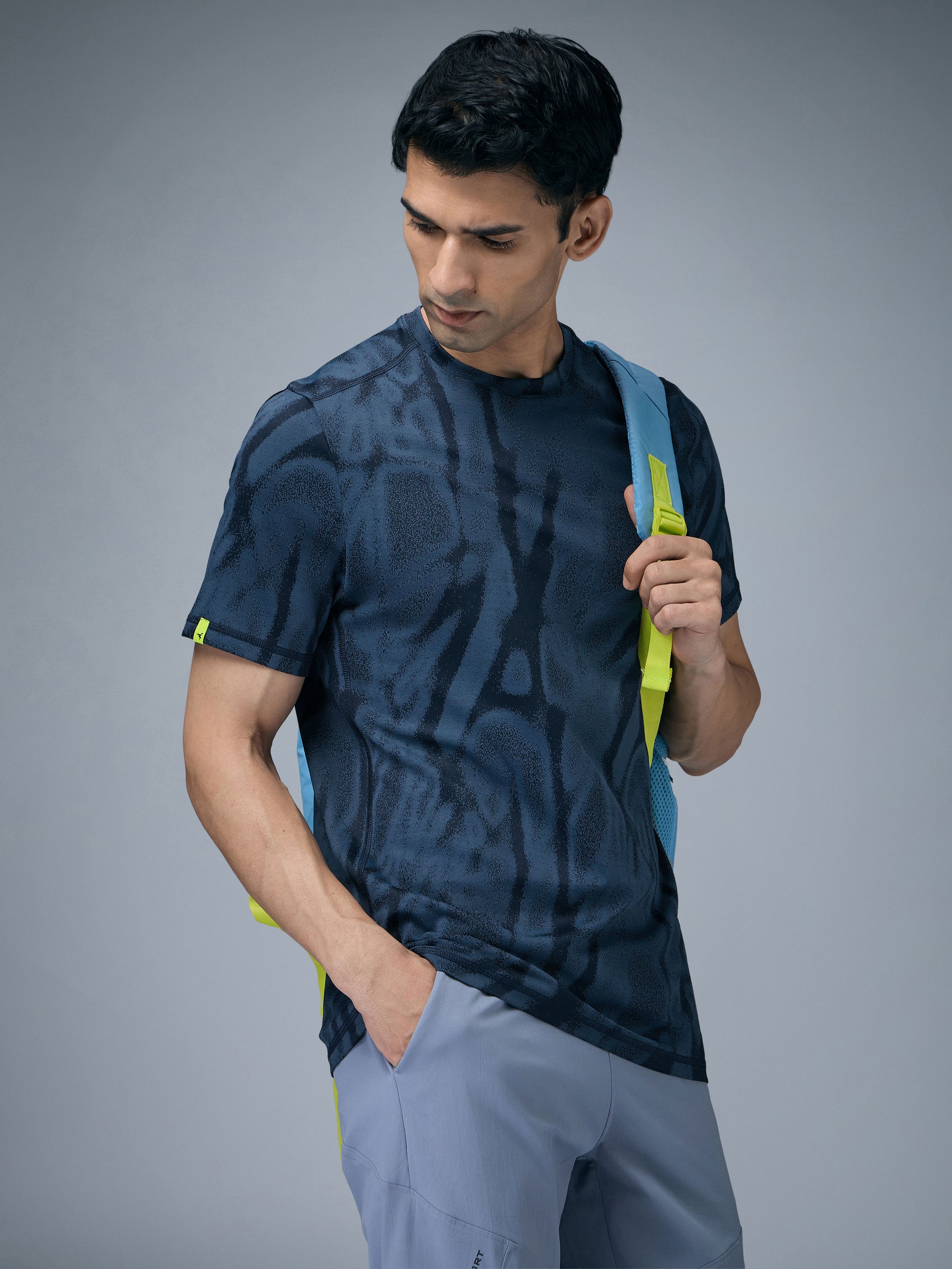 Men Jacquard Slim Fit Crew Neck T-shirt with DOUBLE COOL
