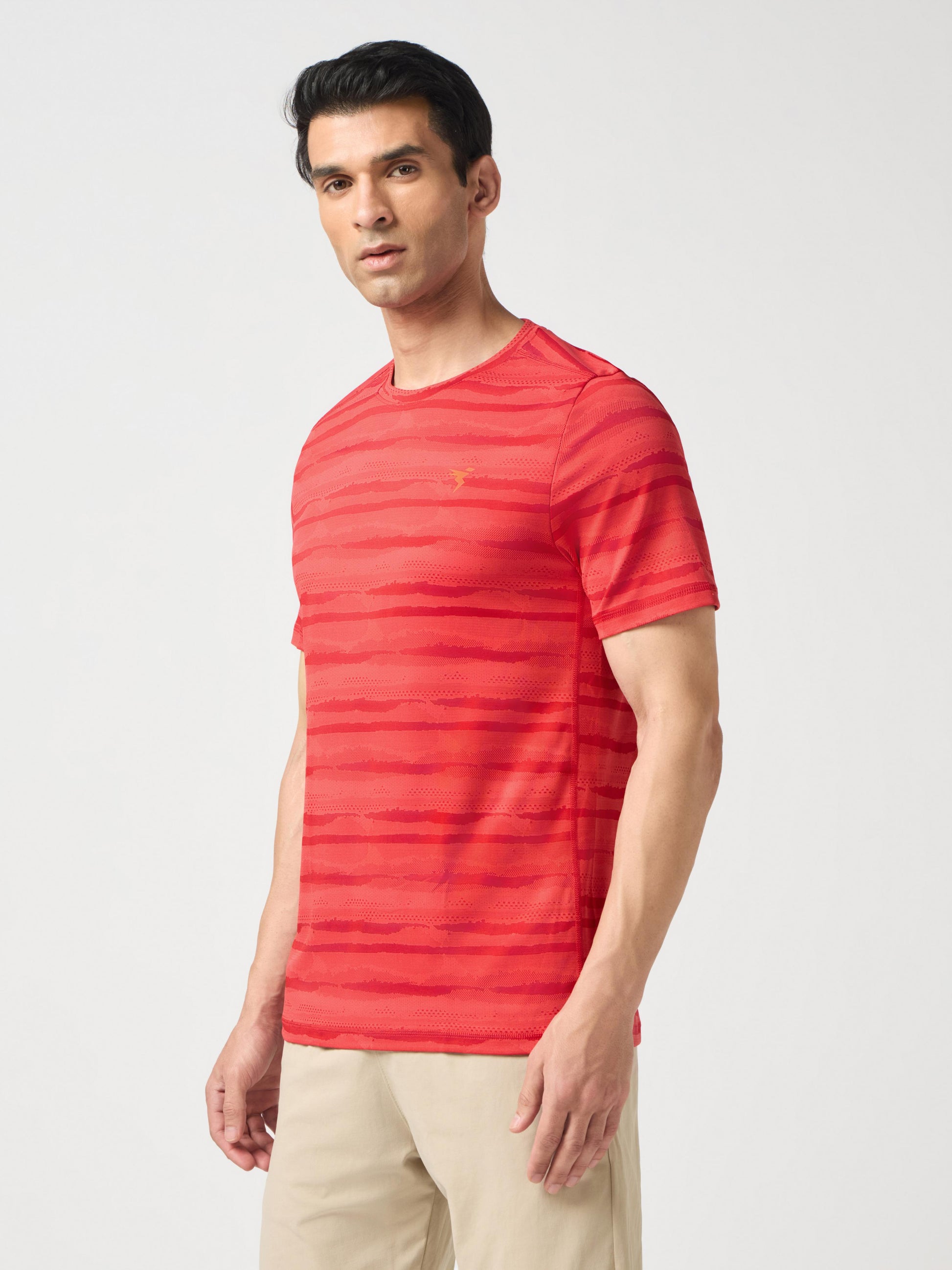 Offer Valid on a Minimum Cart Value of ₹999Men Jacquard Slim Fit Crew Neck T-shirt with DOUBLE COOL