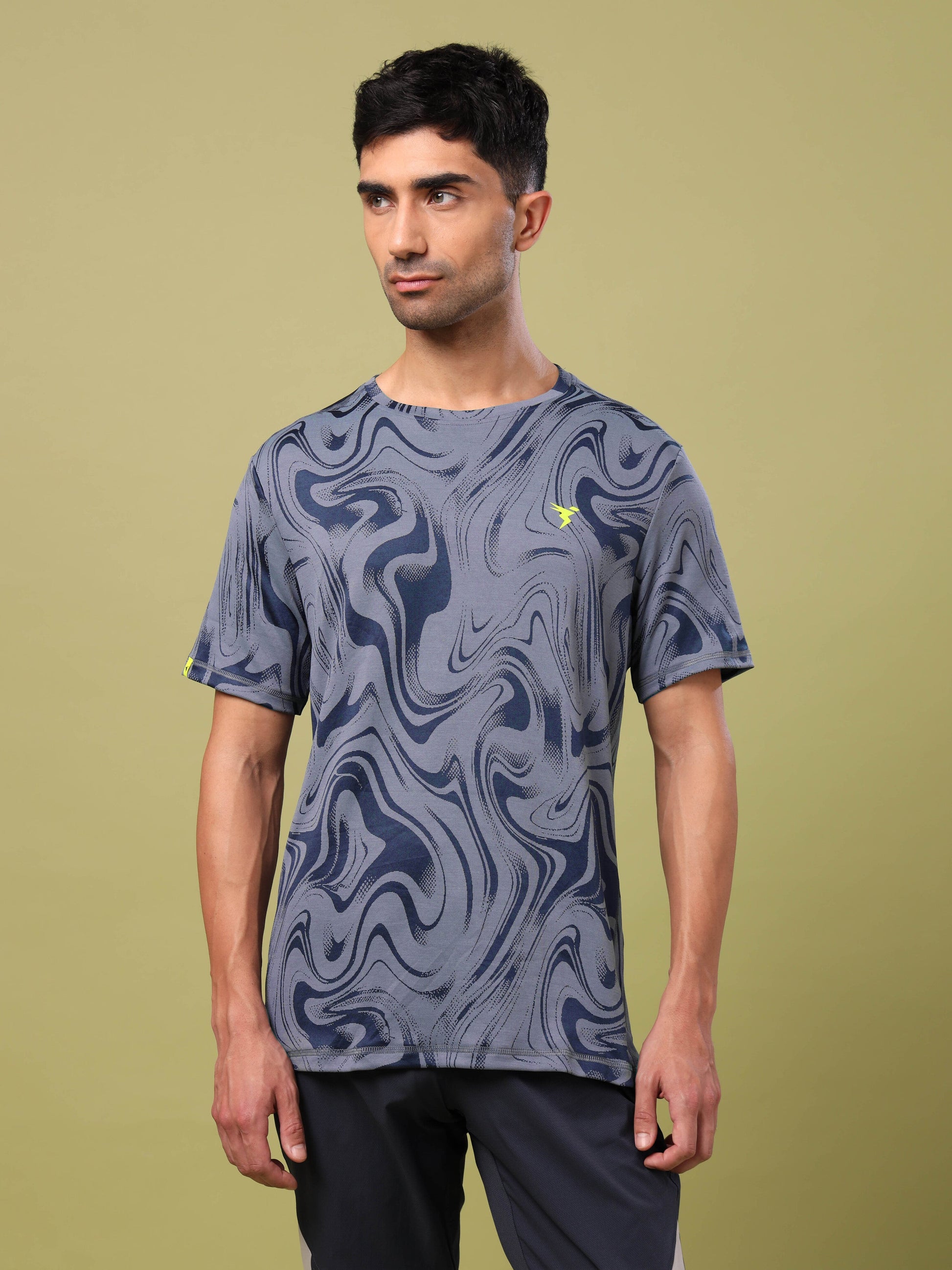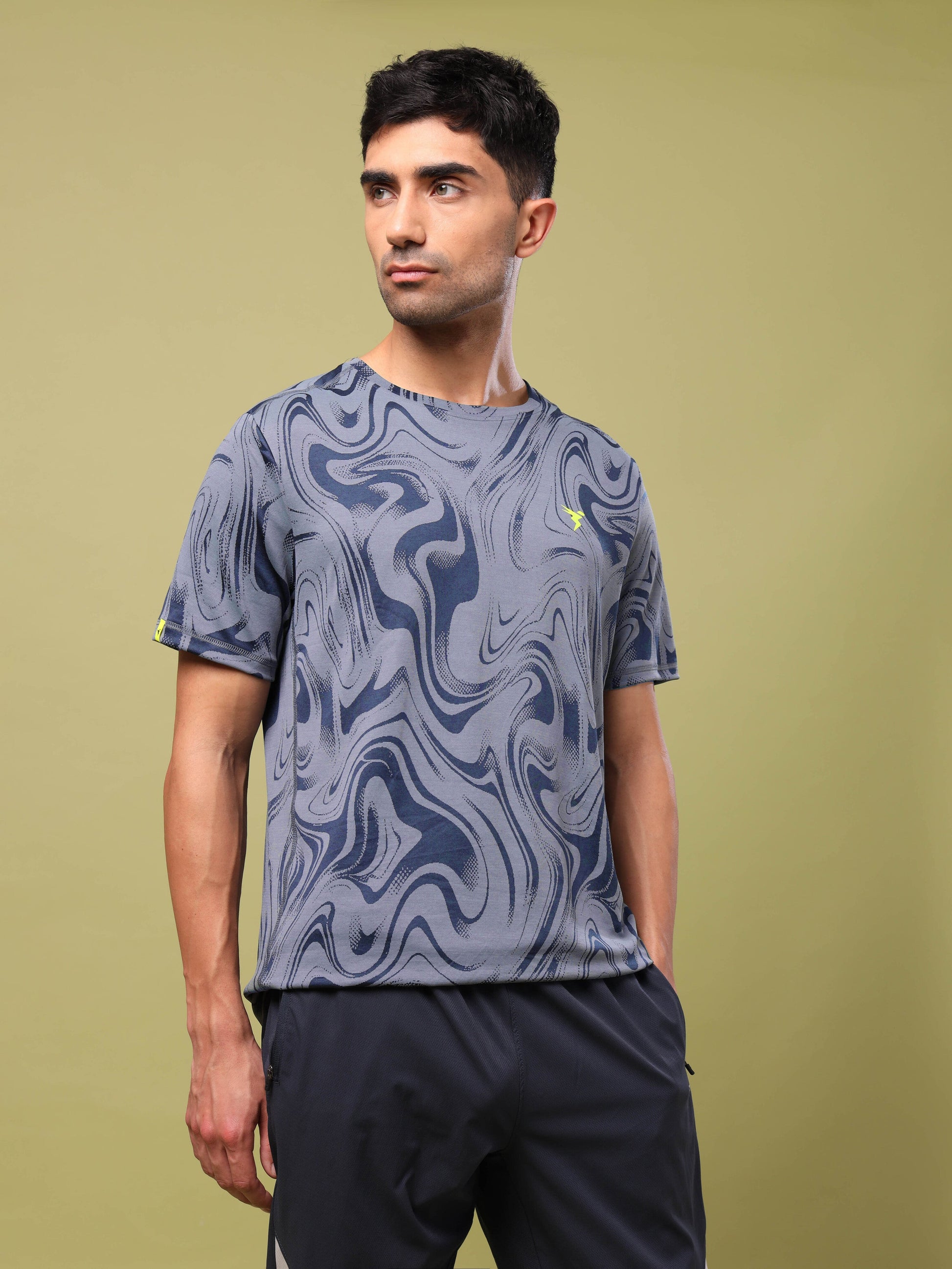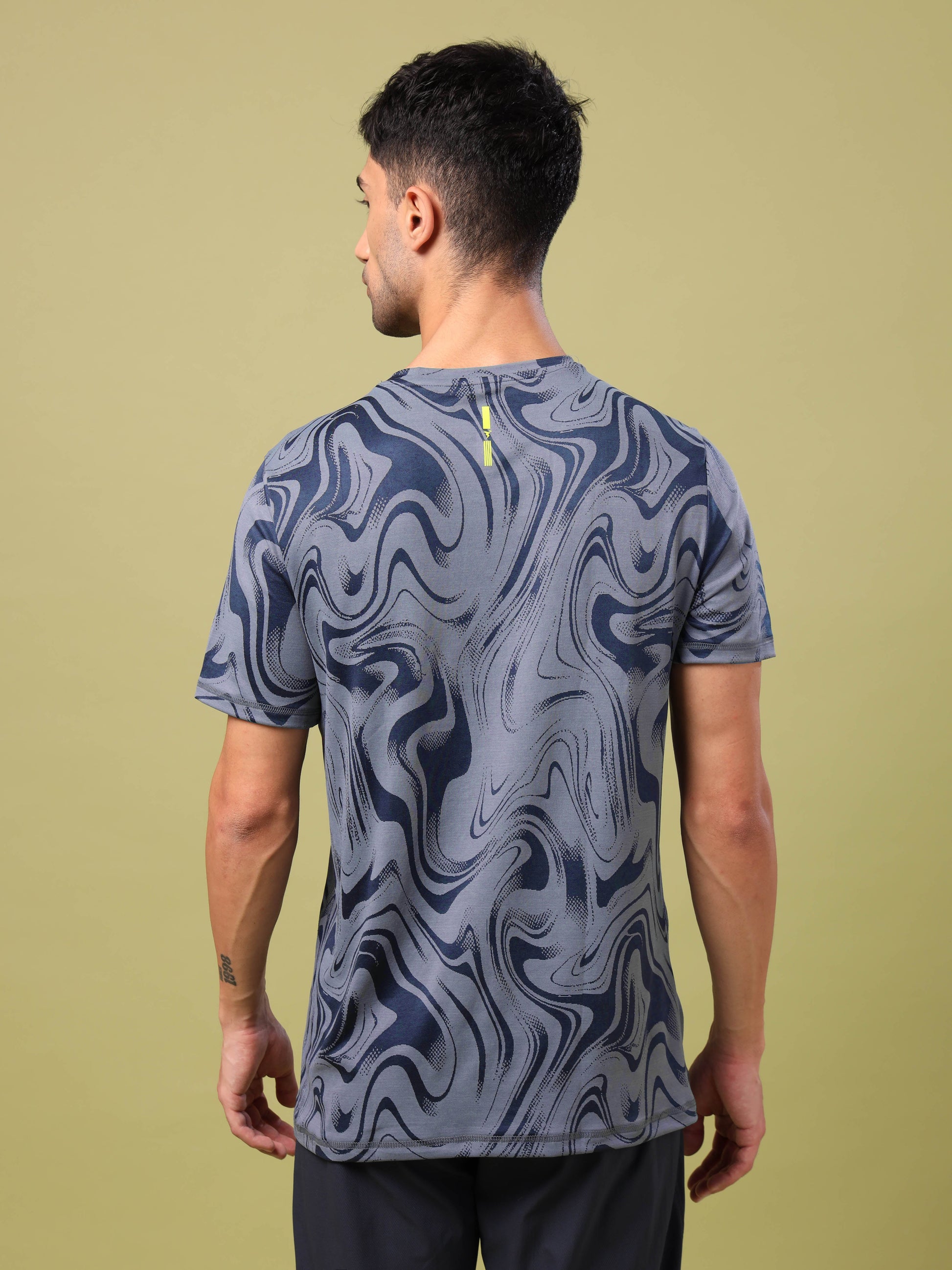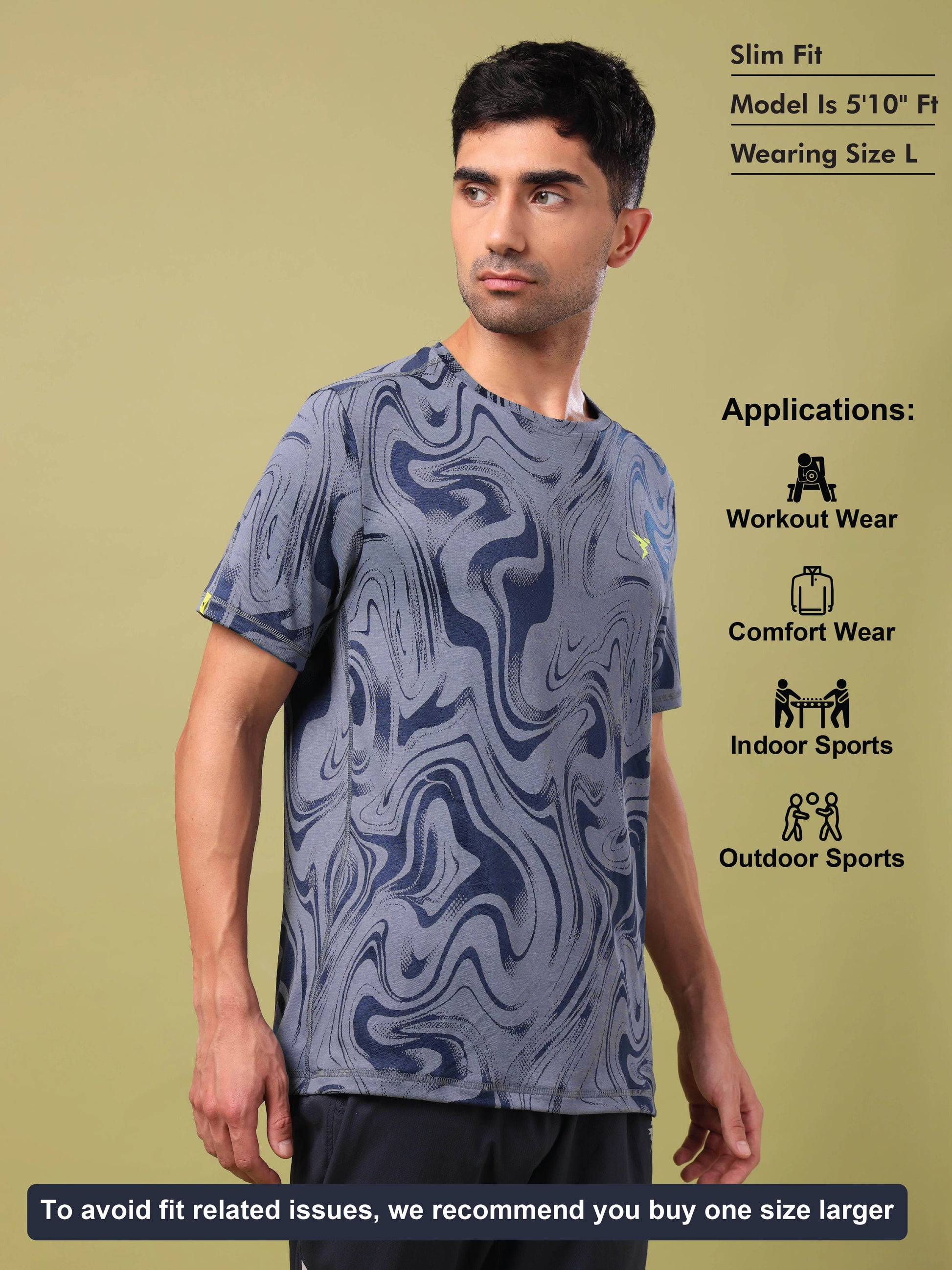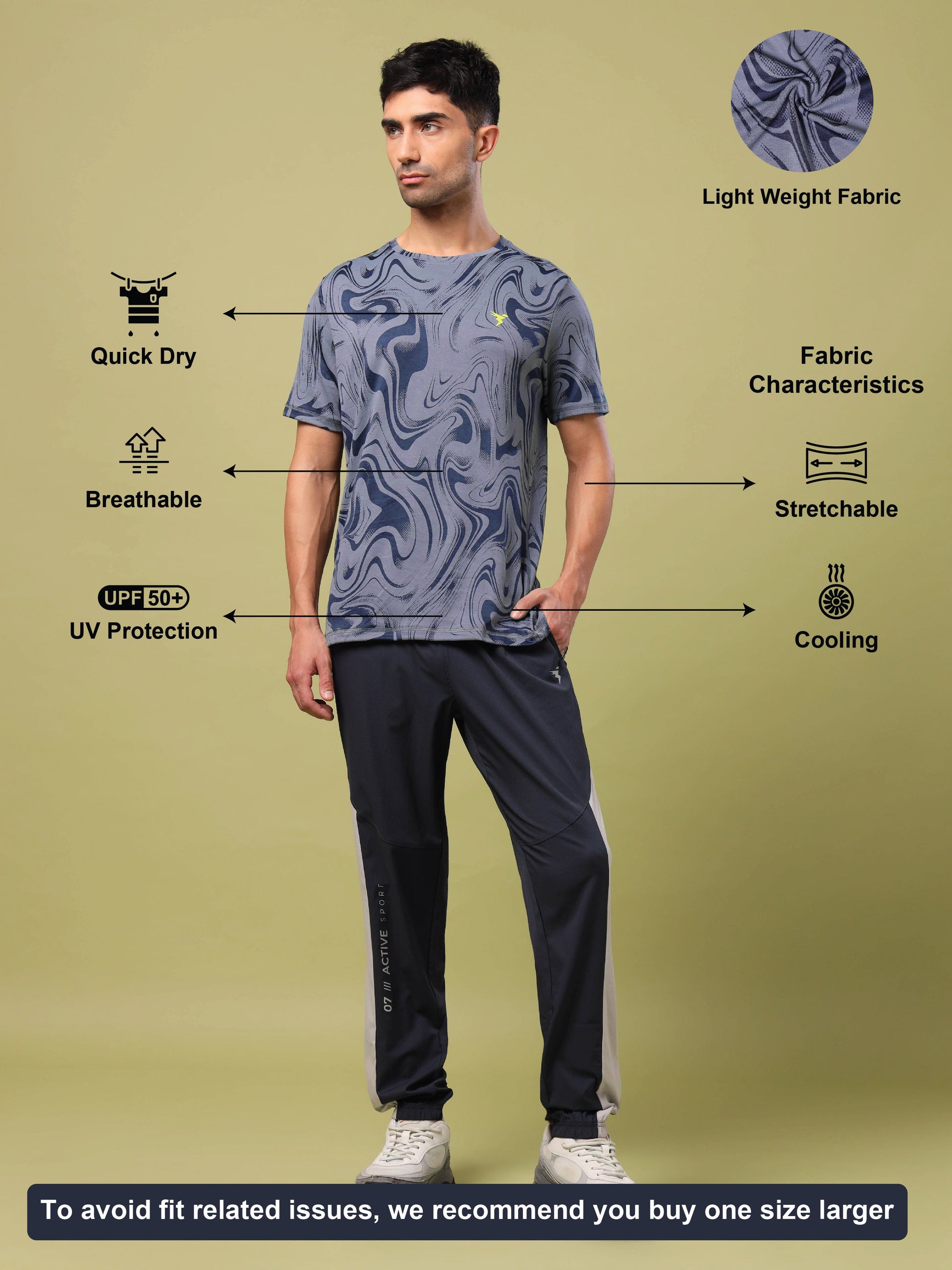 Men Jacquard Slim Fit Crew Neck T-shirt with DOUBLE COOL