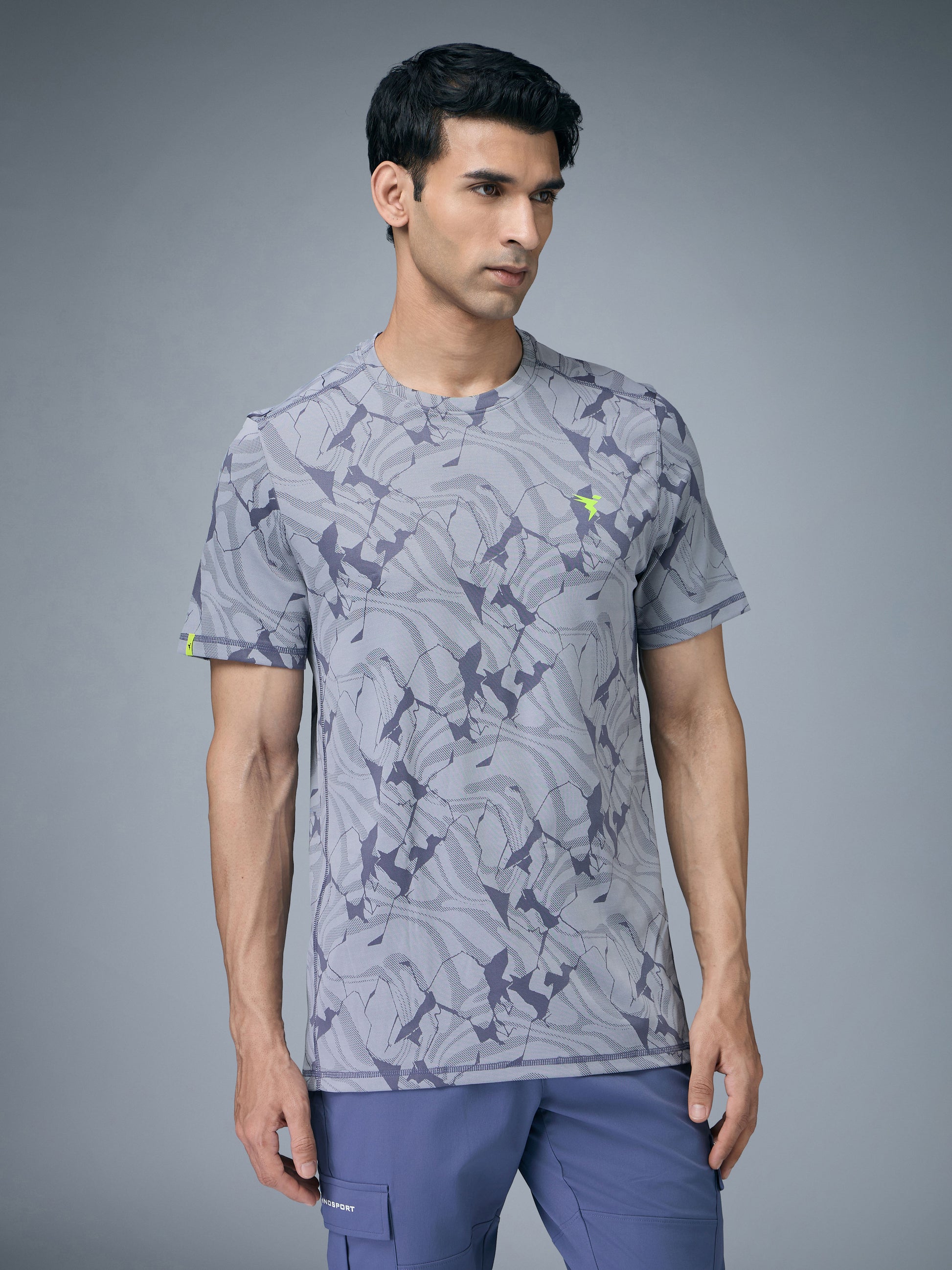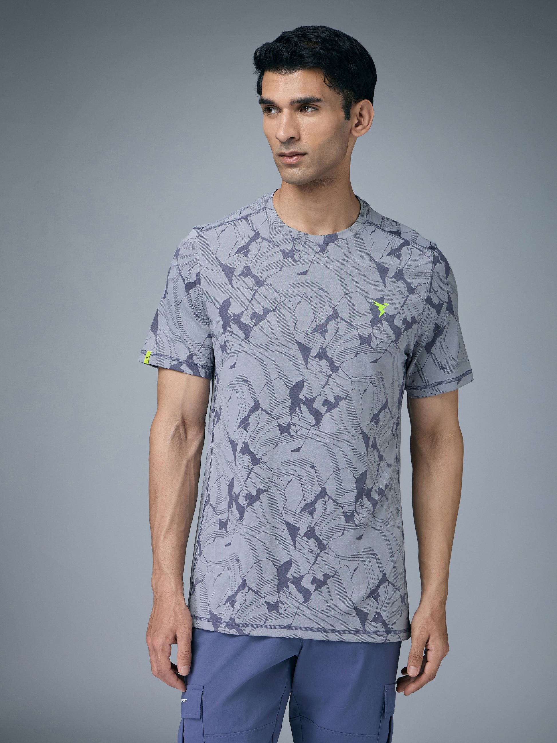 Men Jacquard Slim Fit Crew Neck T-shirt with DOUBLE COOL
