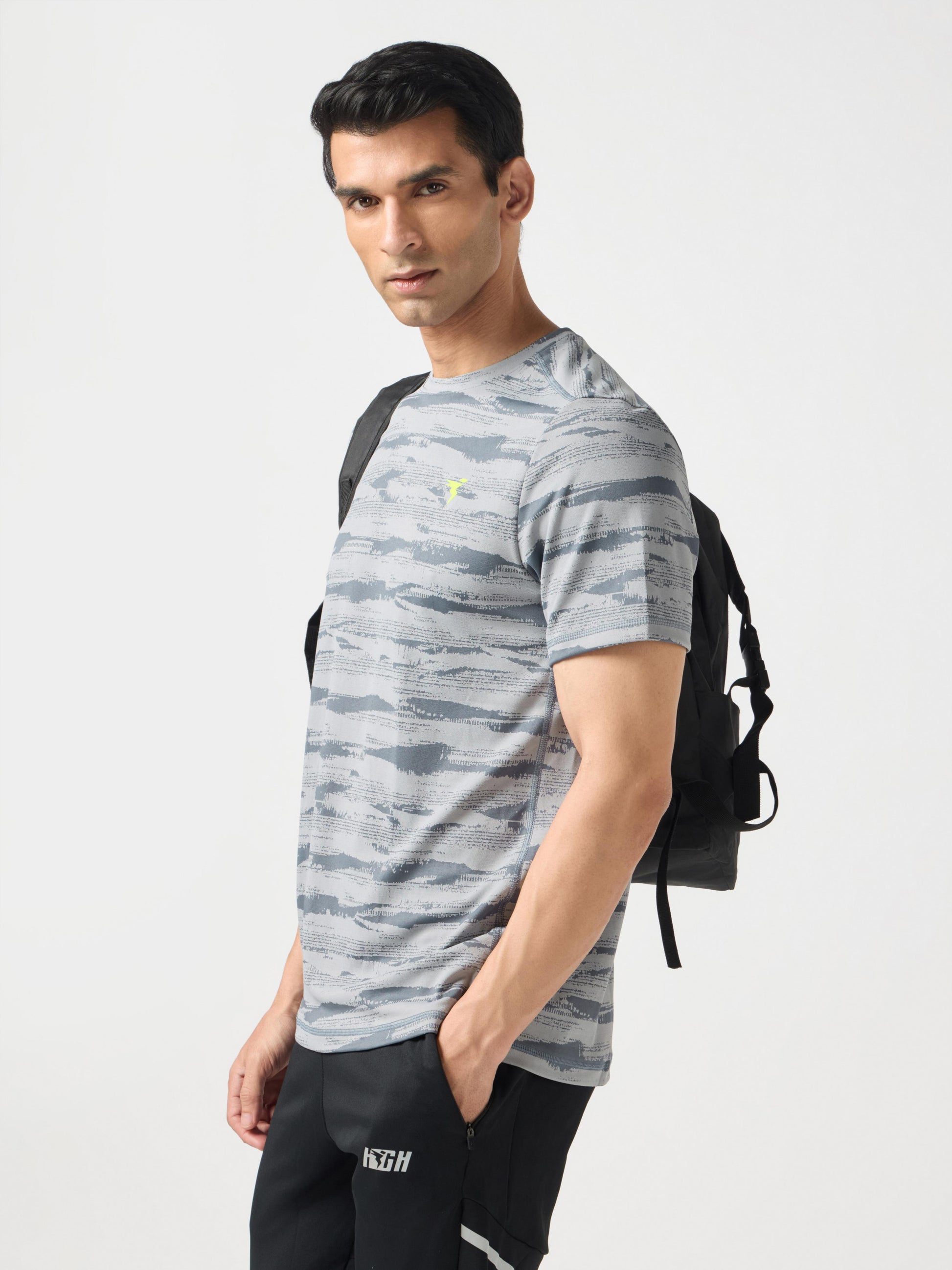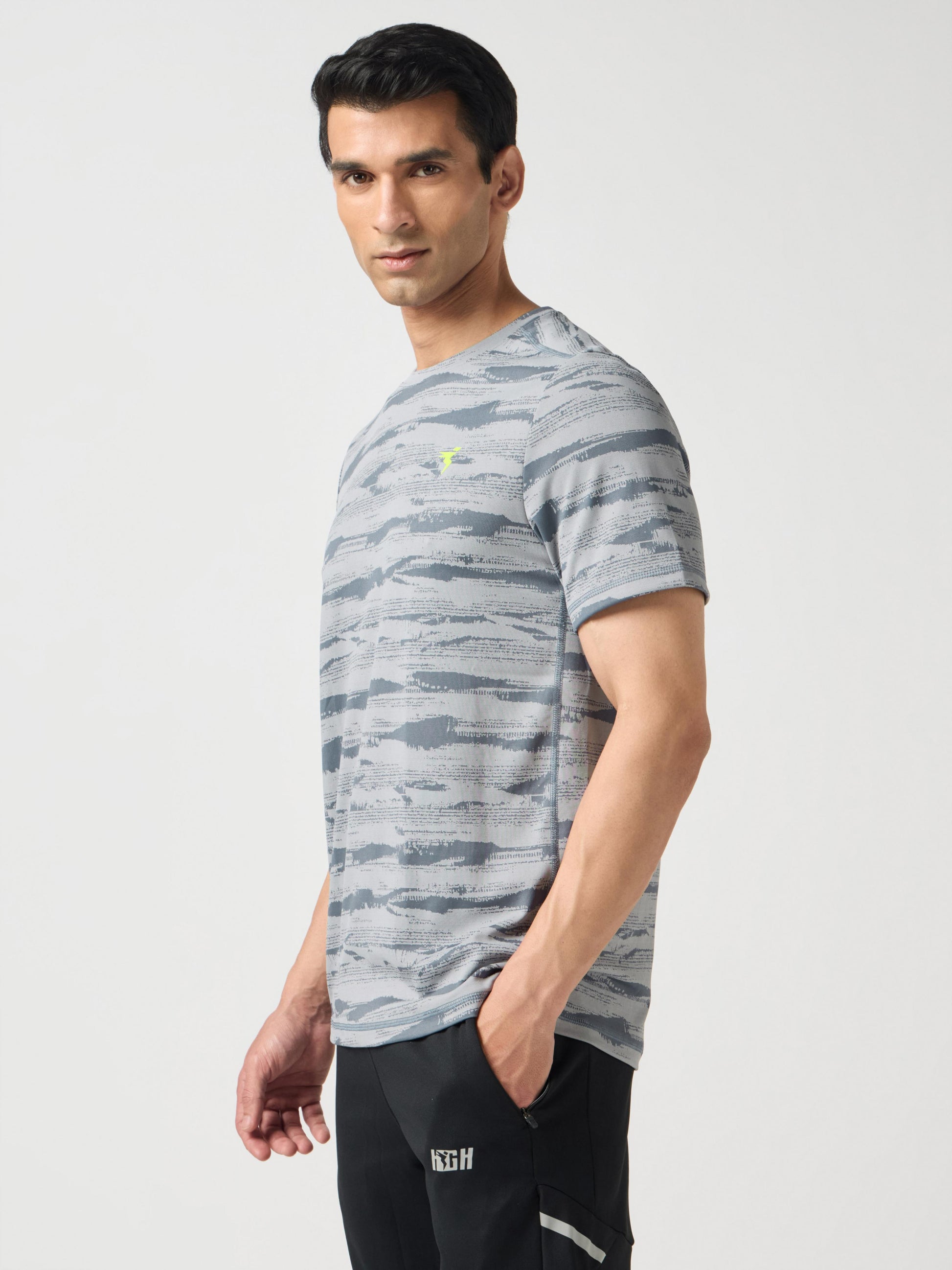 Men Jacquard Slim Fit Crew Neck T-shirt with DOUBLE COOL
