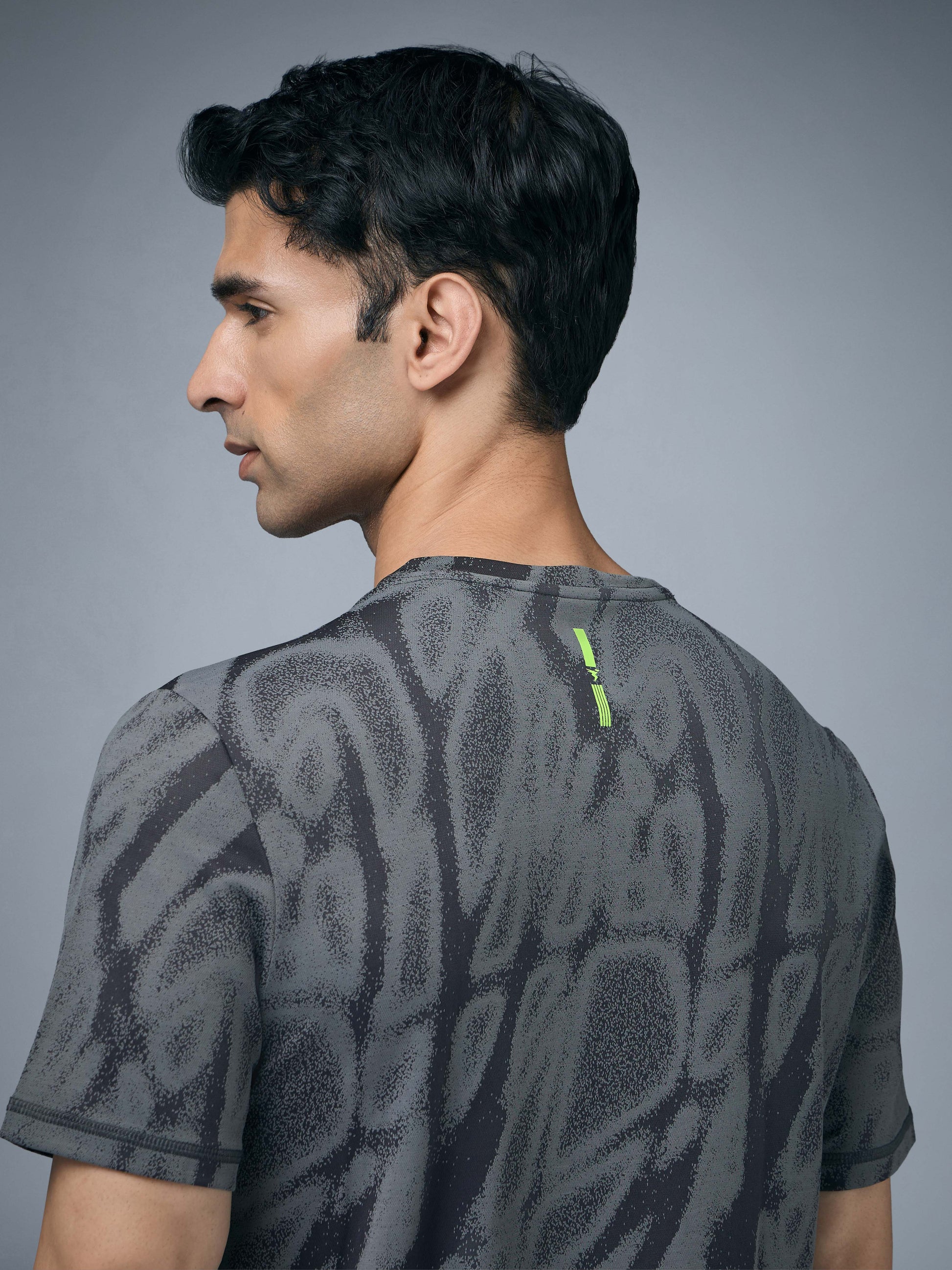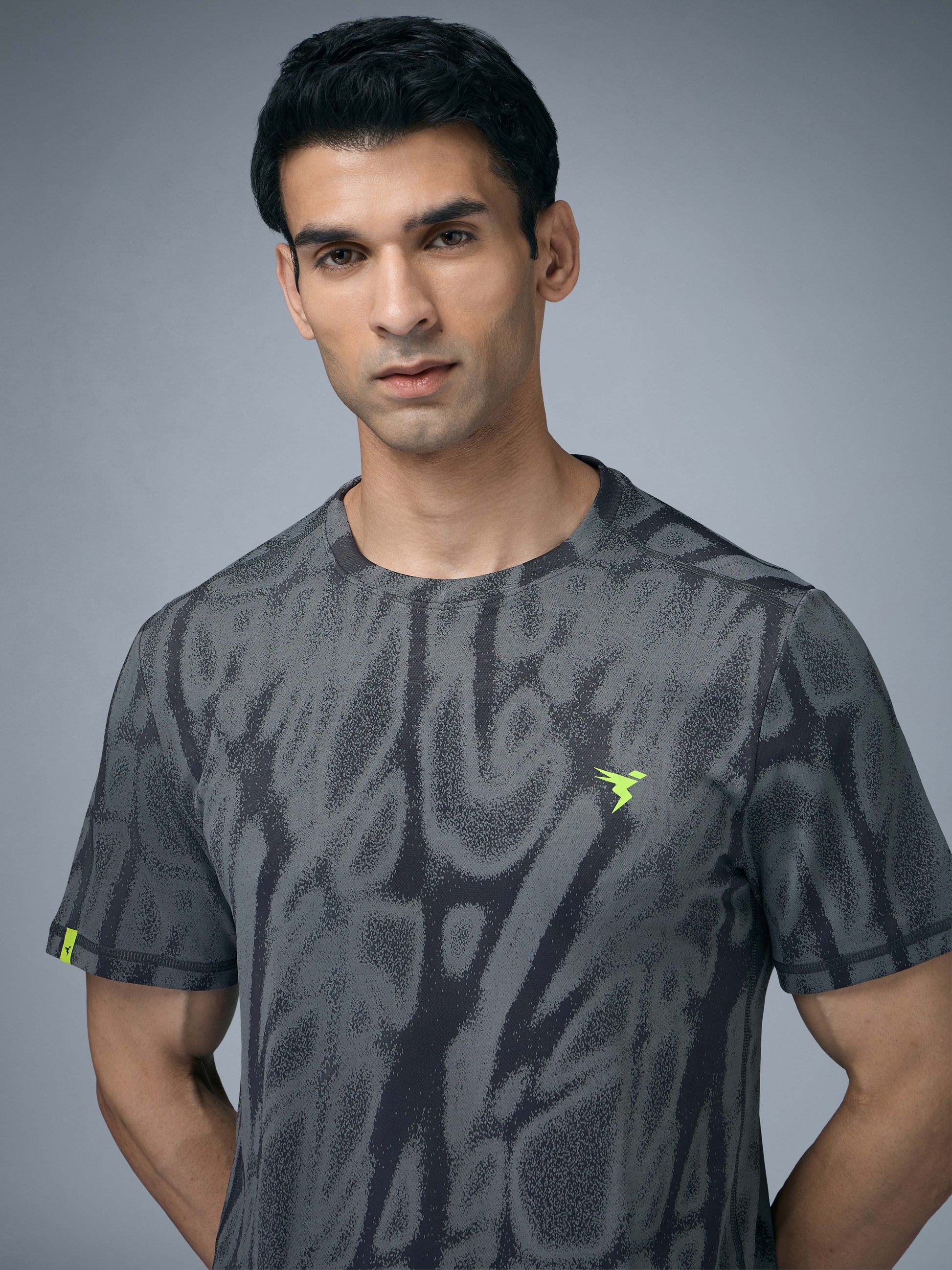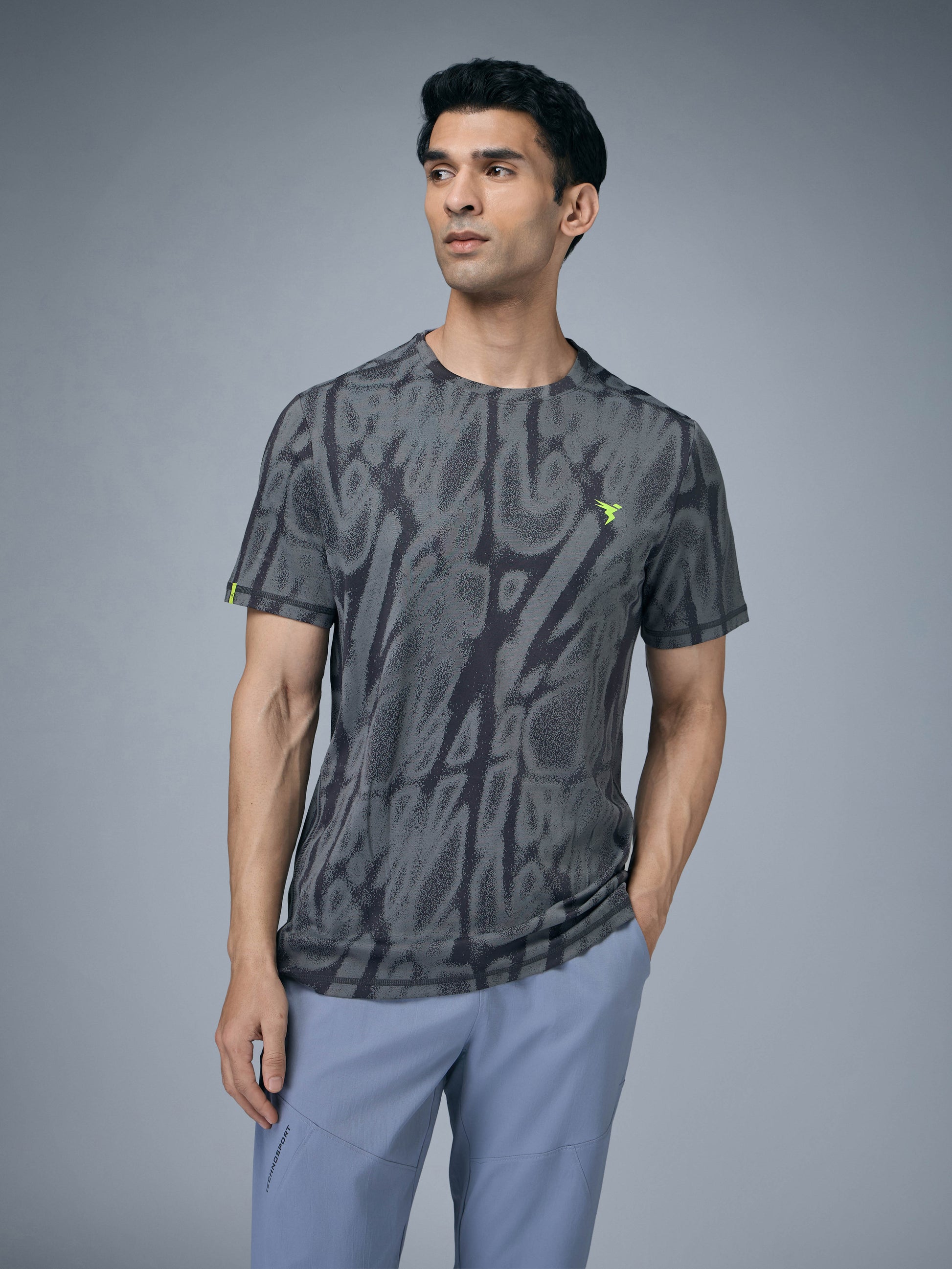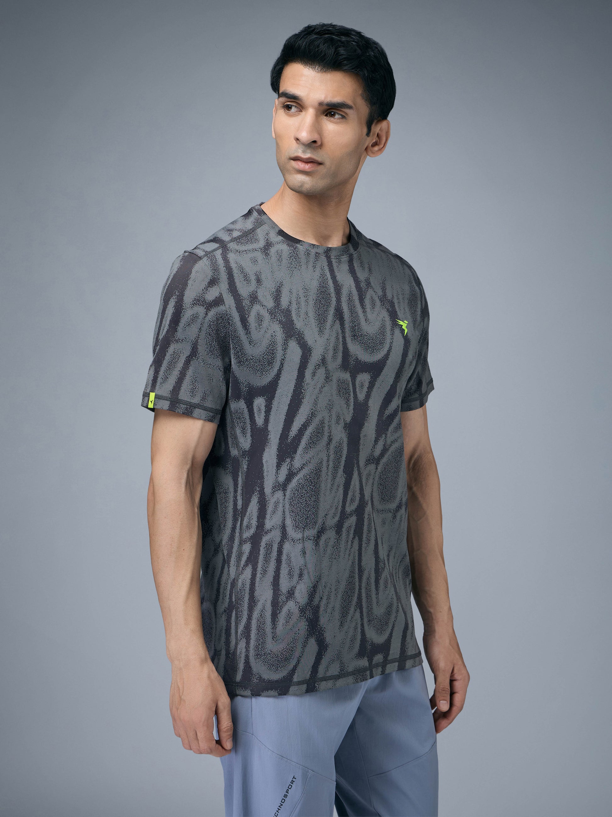 Men Jacquard Slim Fit Crew Neck T-shirt with DOUBLE COOL