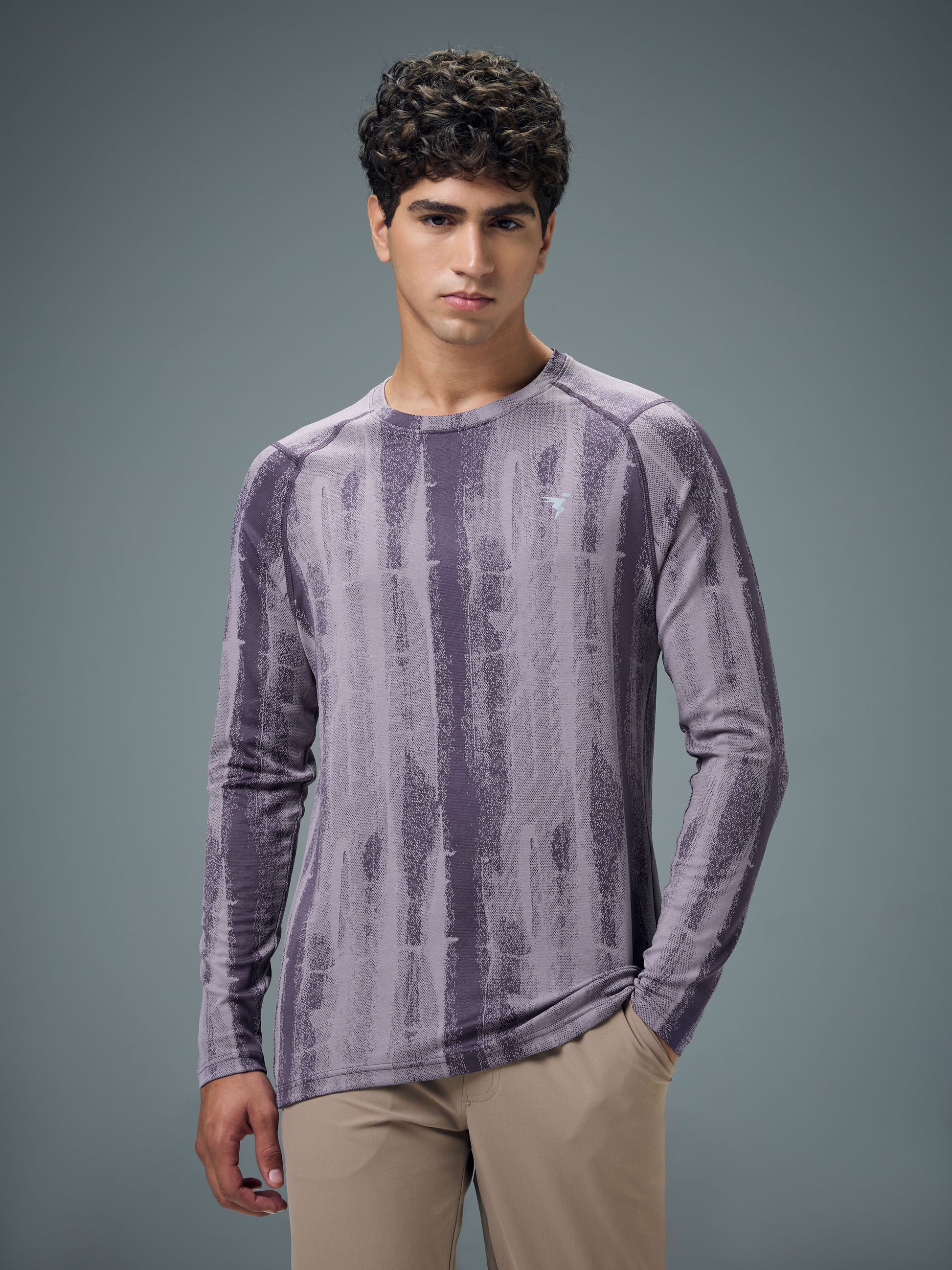 Men Jacquard Slim Fit Round Neck T-shirt with DOUBLE COOL