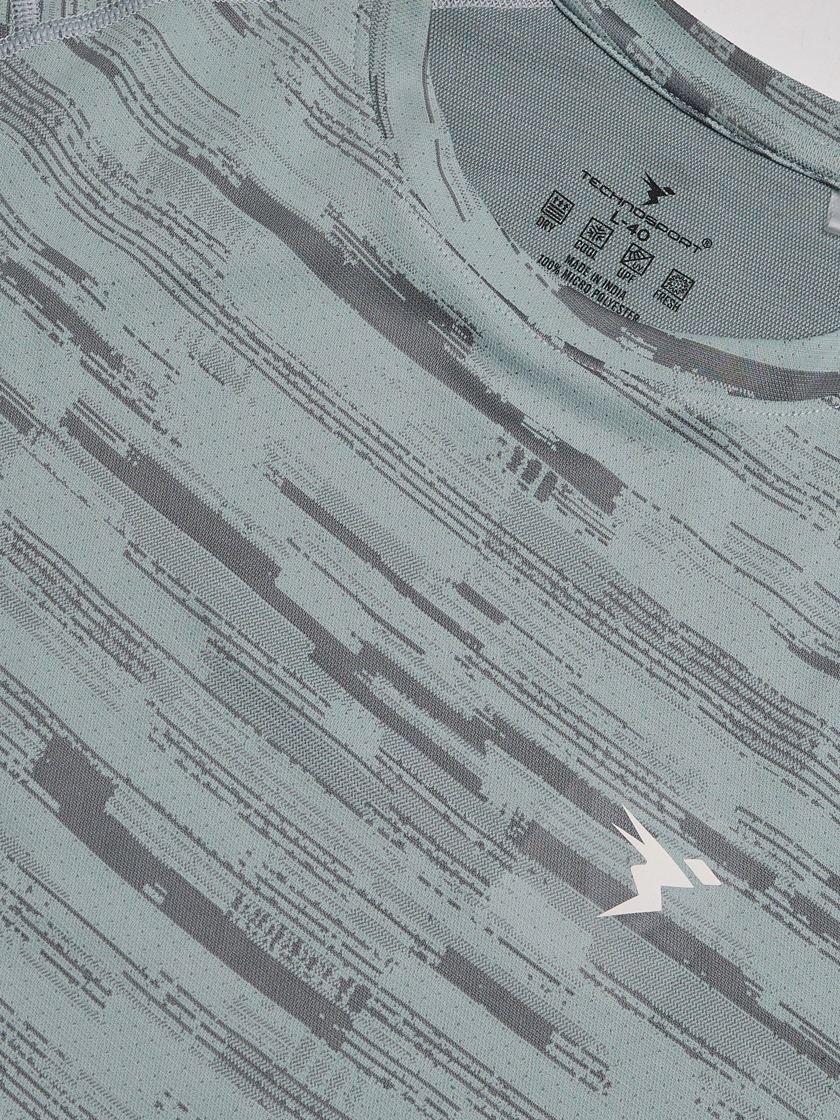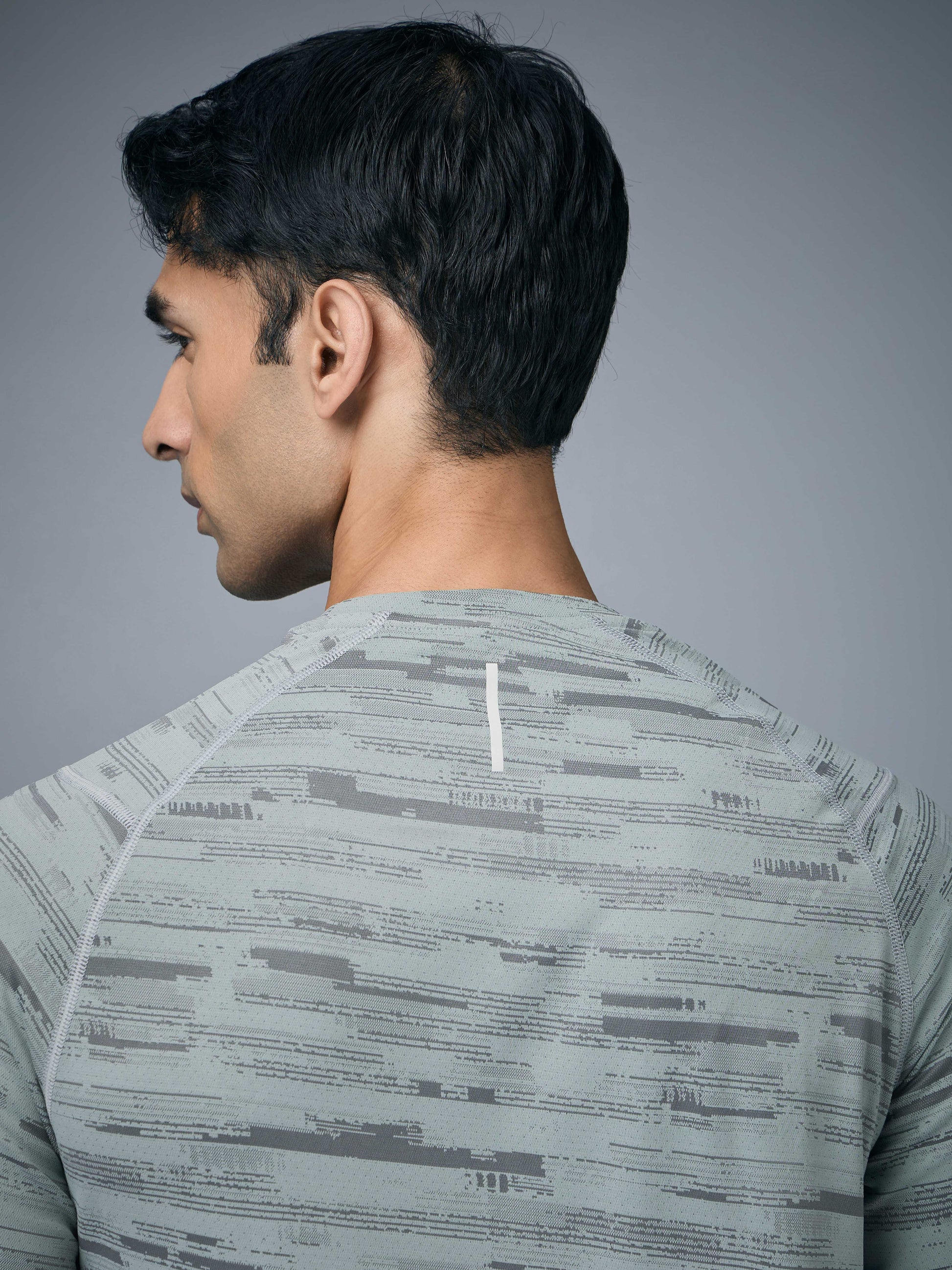 Men Jacquard Slim Fit Round Neck T-shirt with DOUBLE COOL