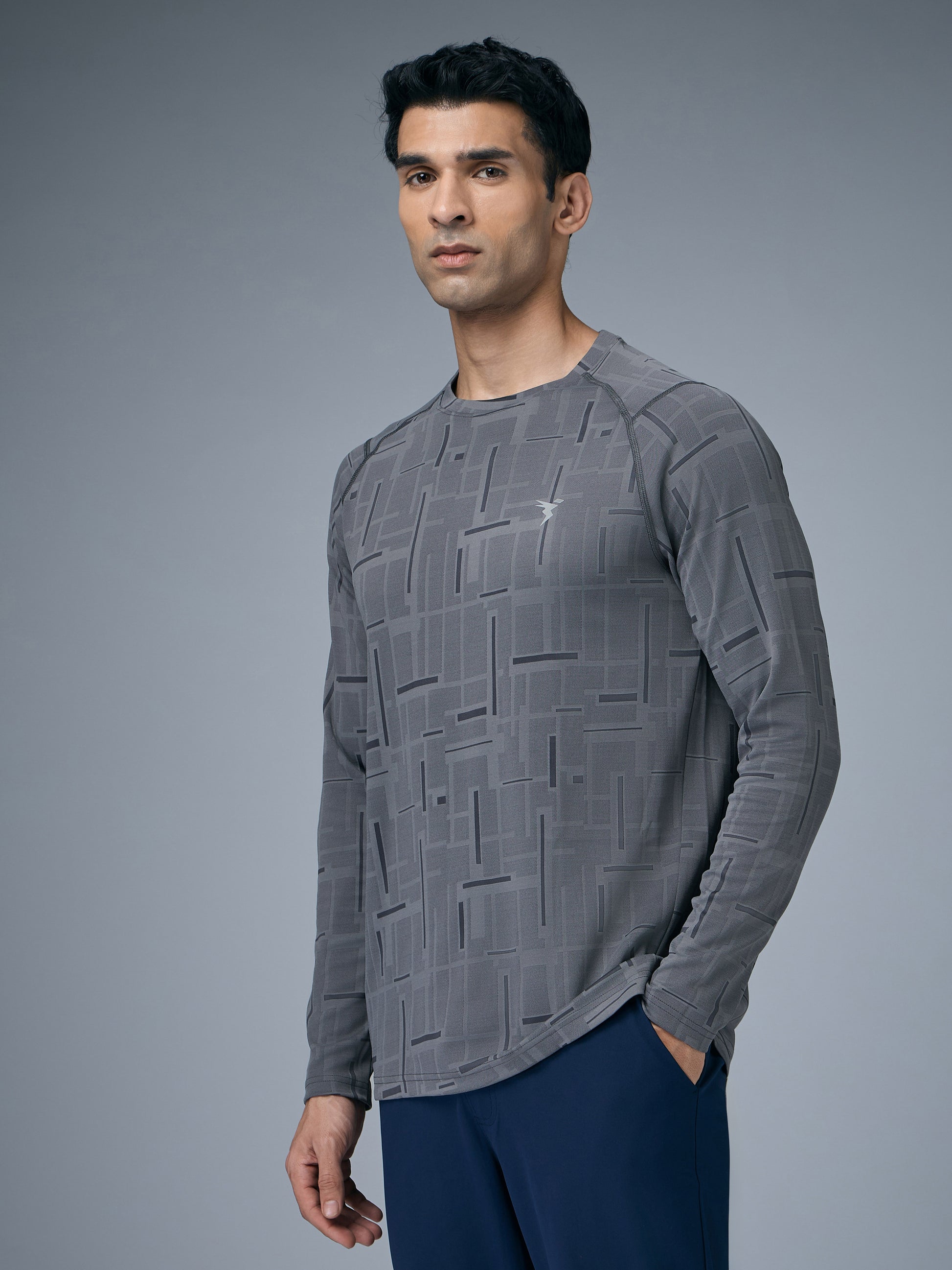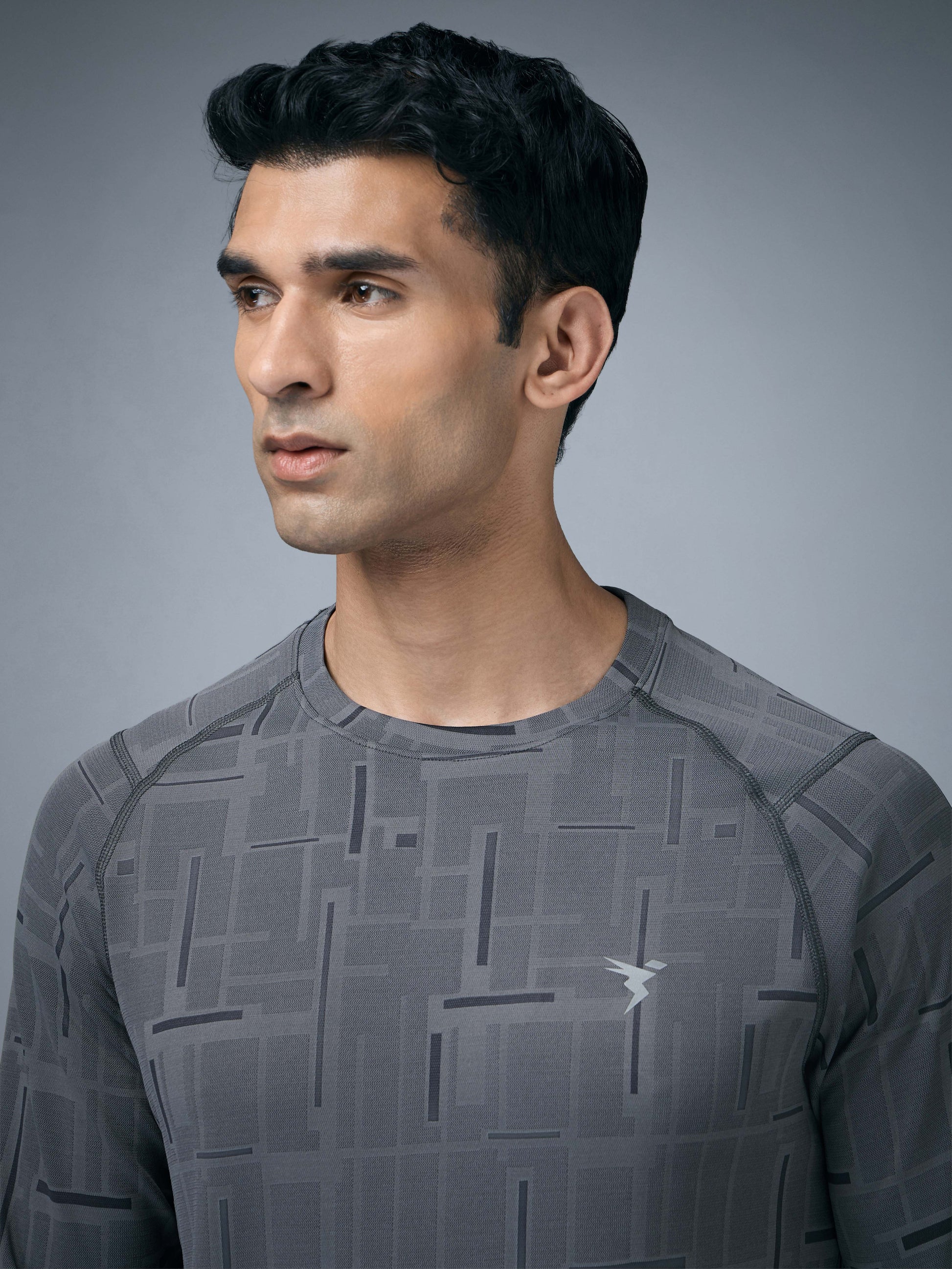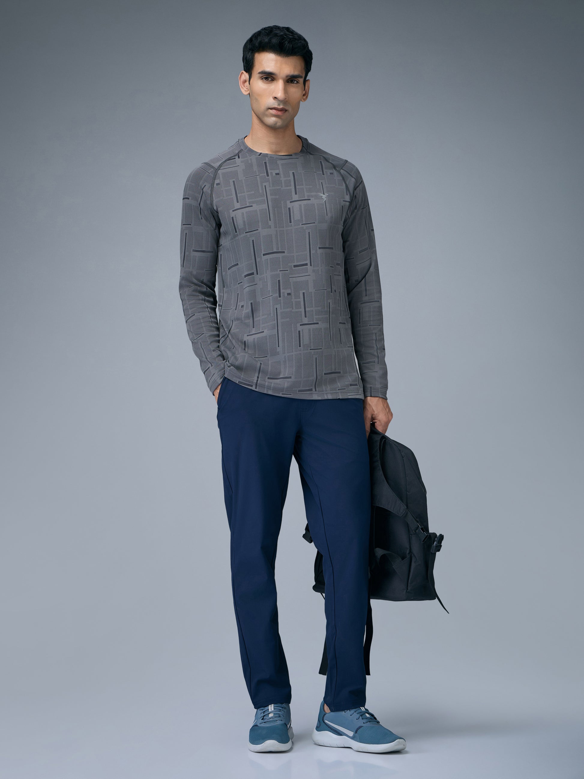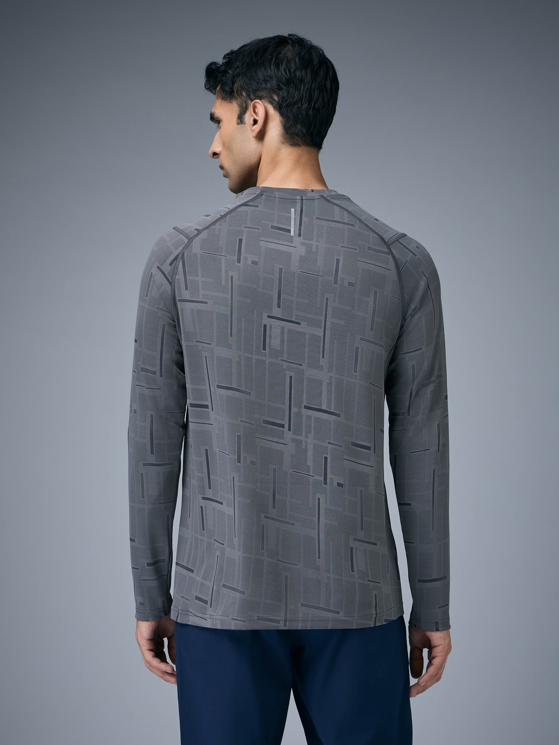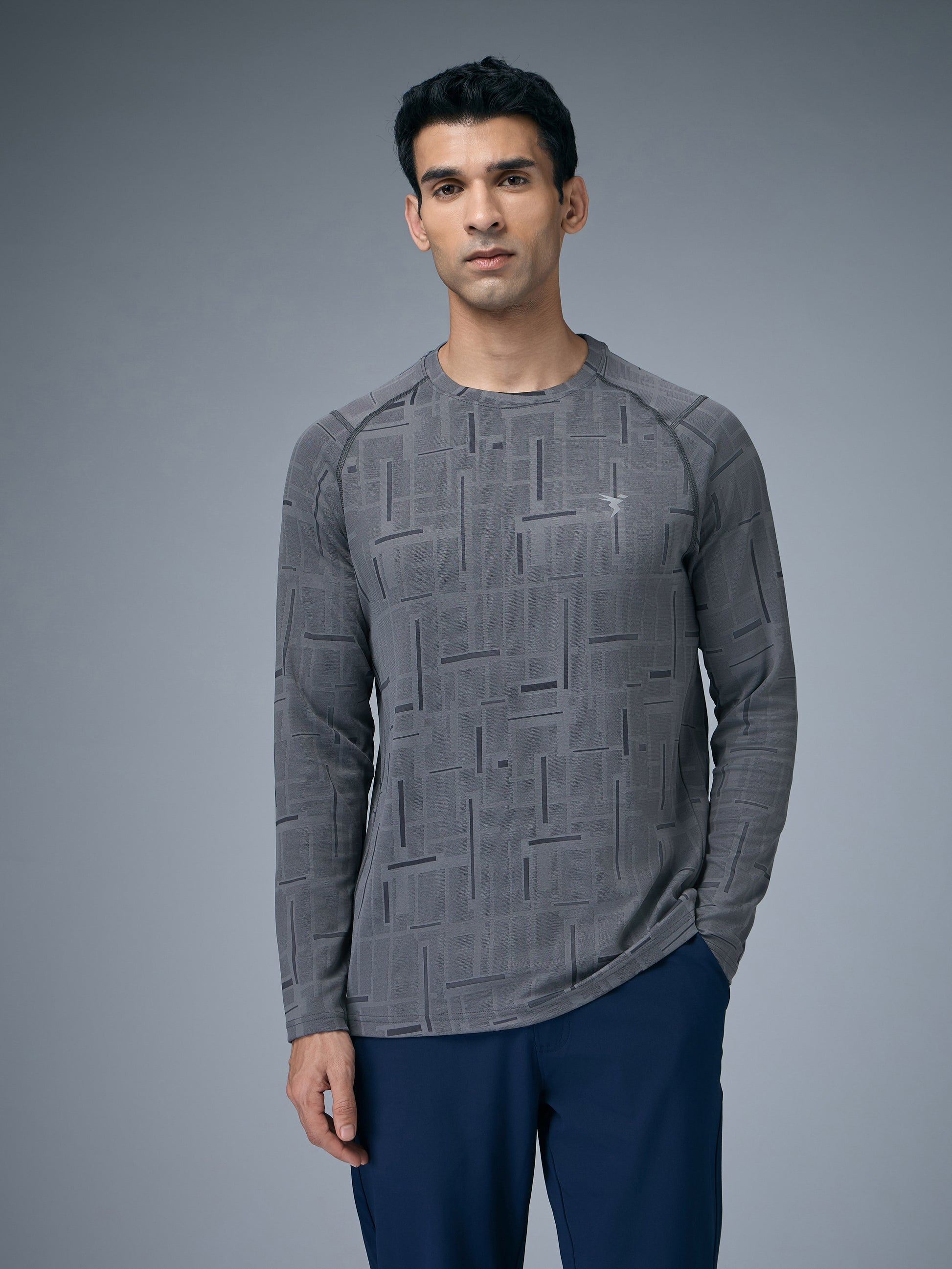 Men Jacquard Slim Fit Round Neck T-shirt with DOUBLE COOL