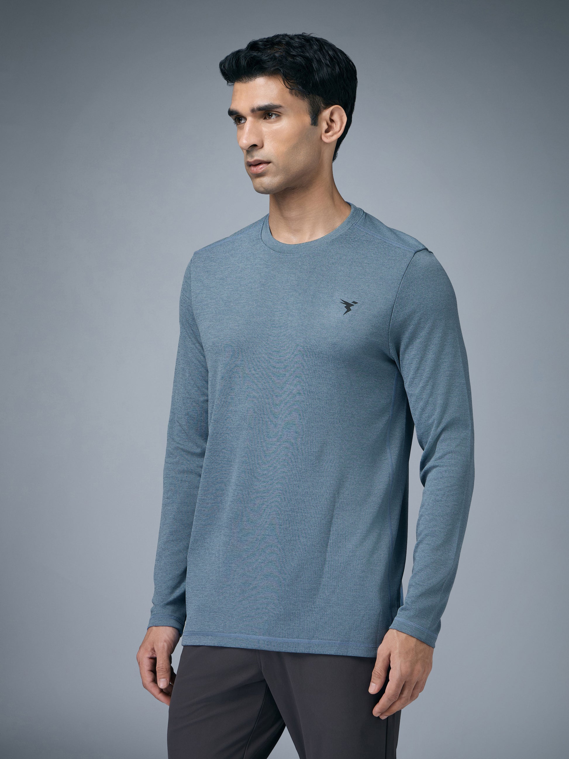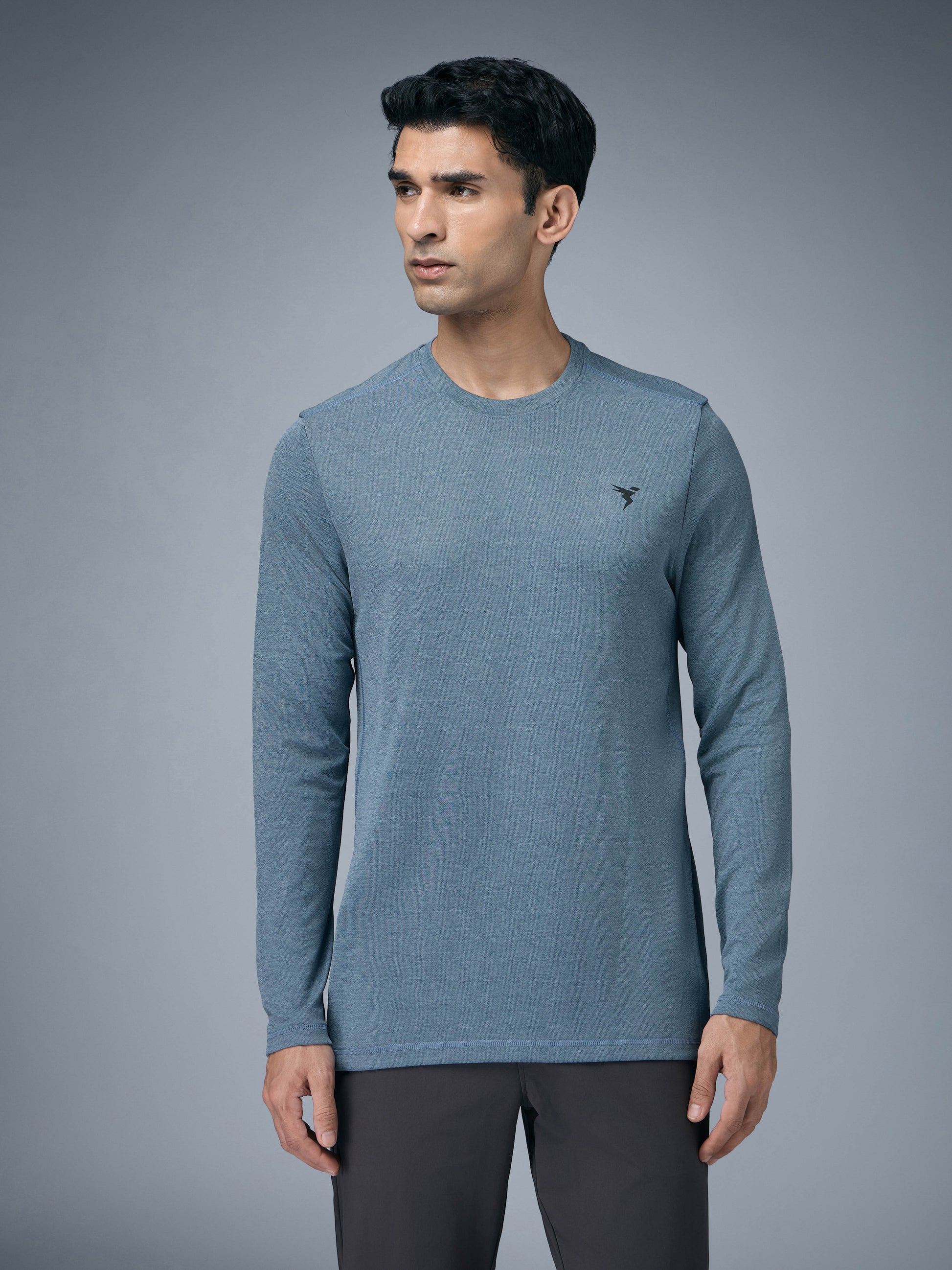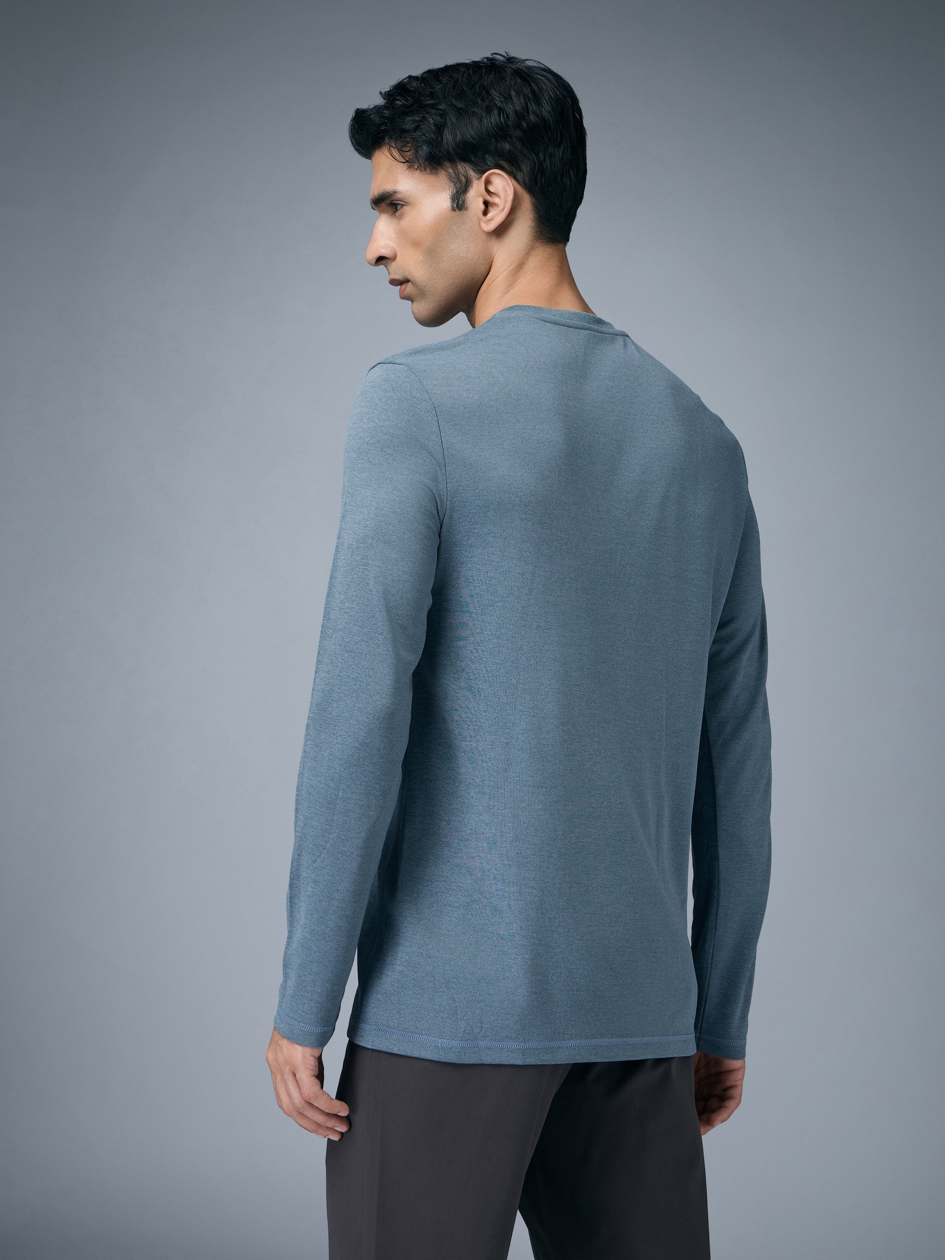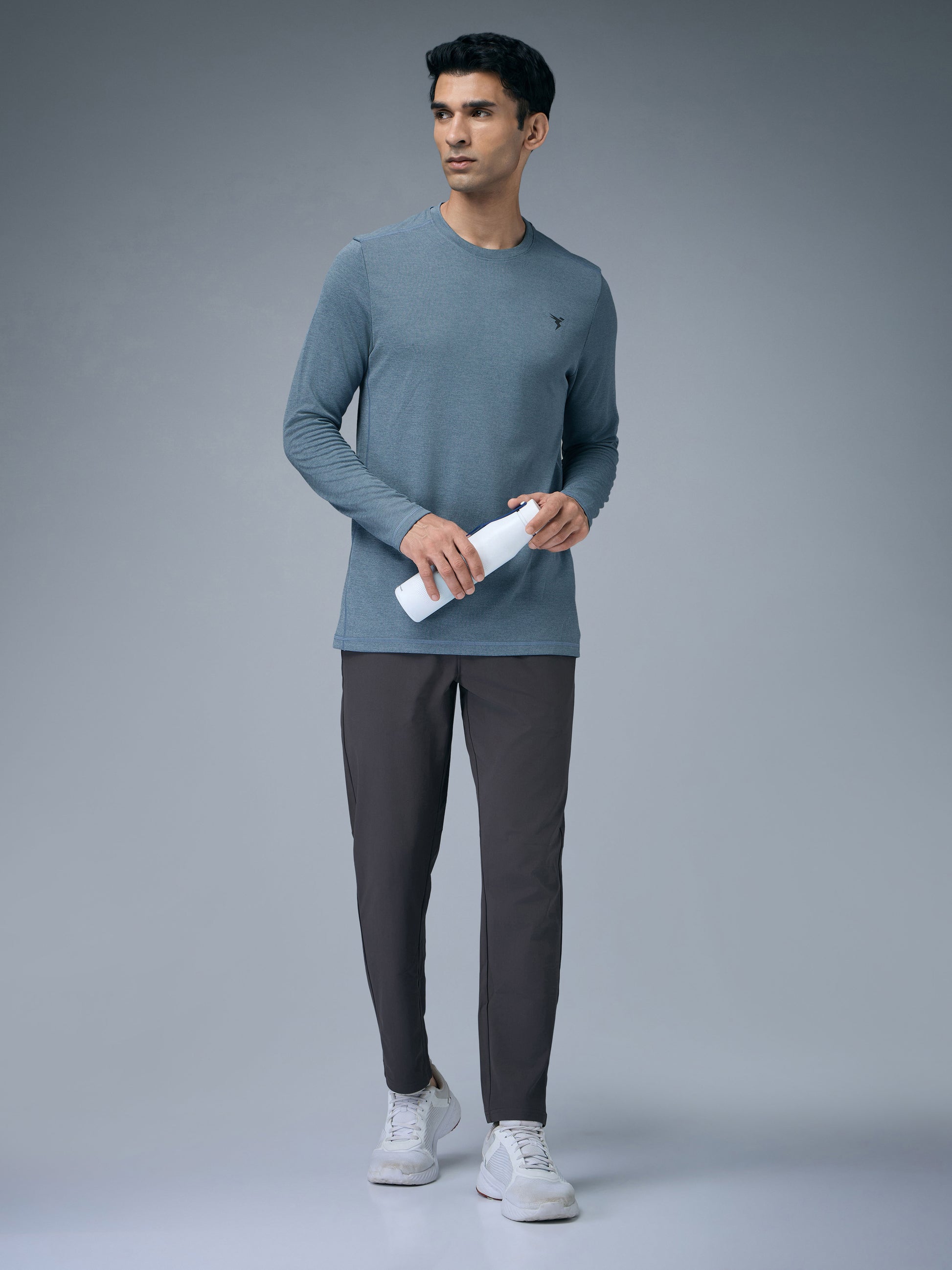 Men Melange Slim Fit Crew Neck T-shirt with DOUBLE COOL