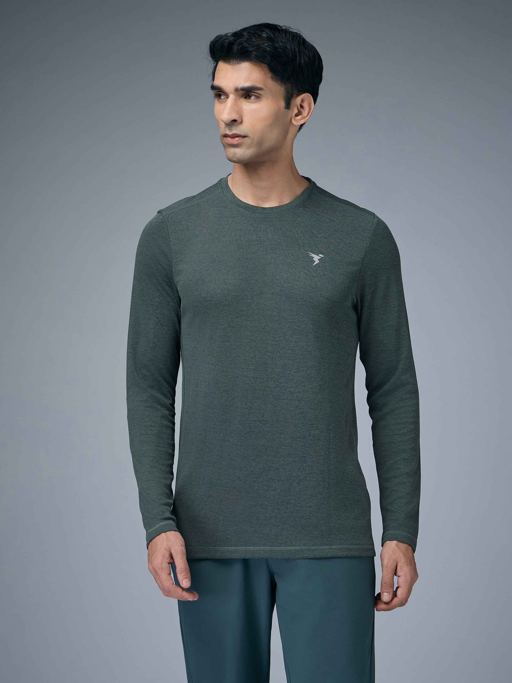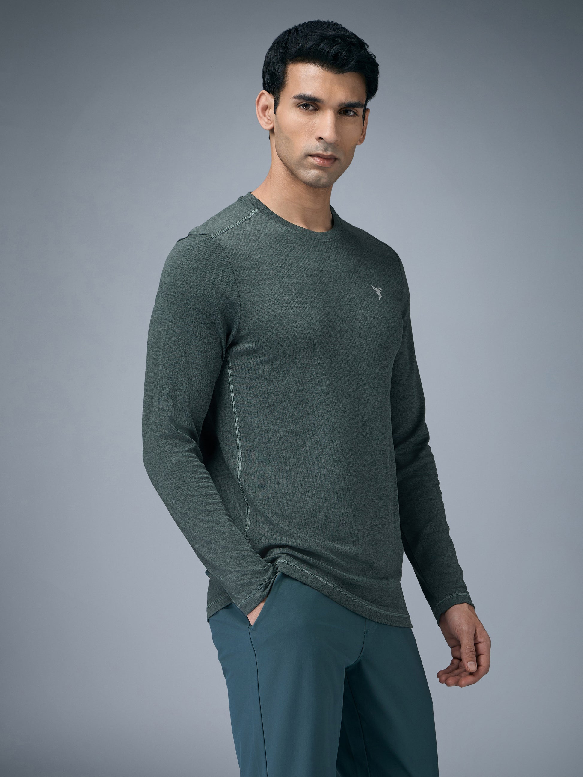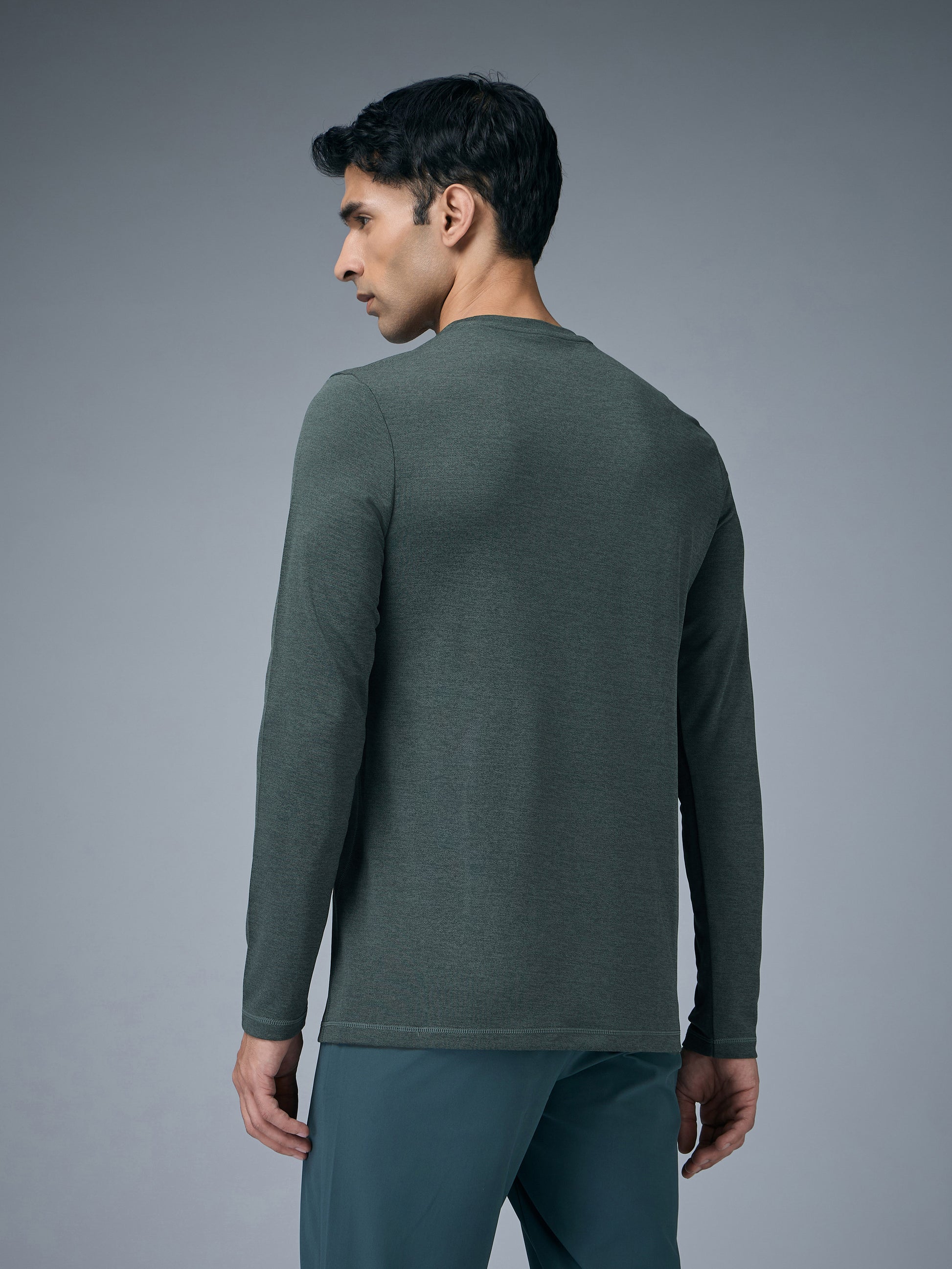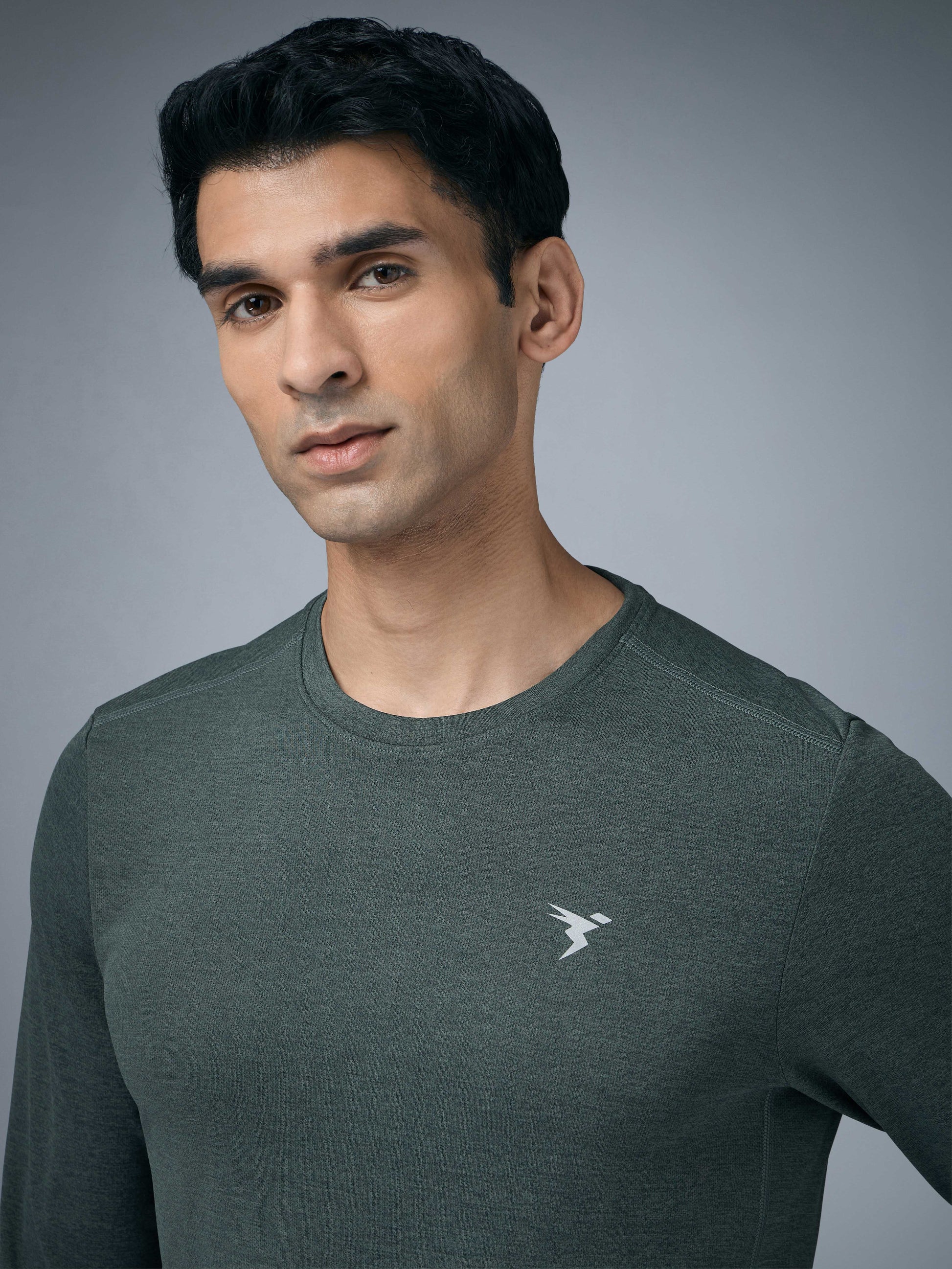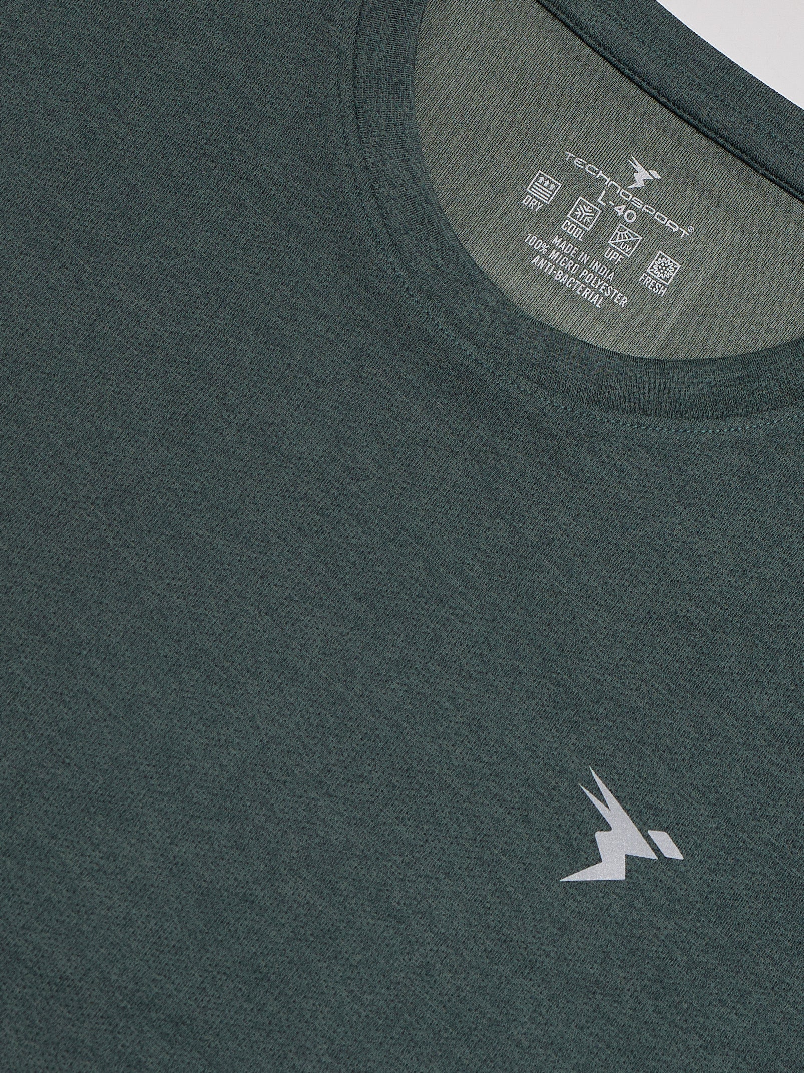 Men Melange Slim Fit Crew Neck T-shirt with DOUBLE COOL