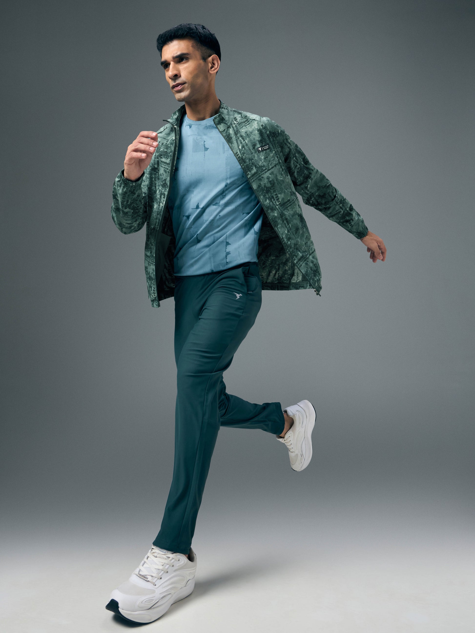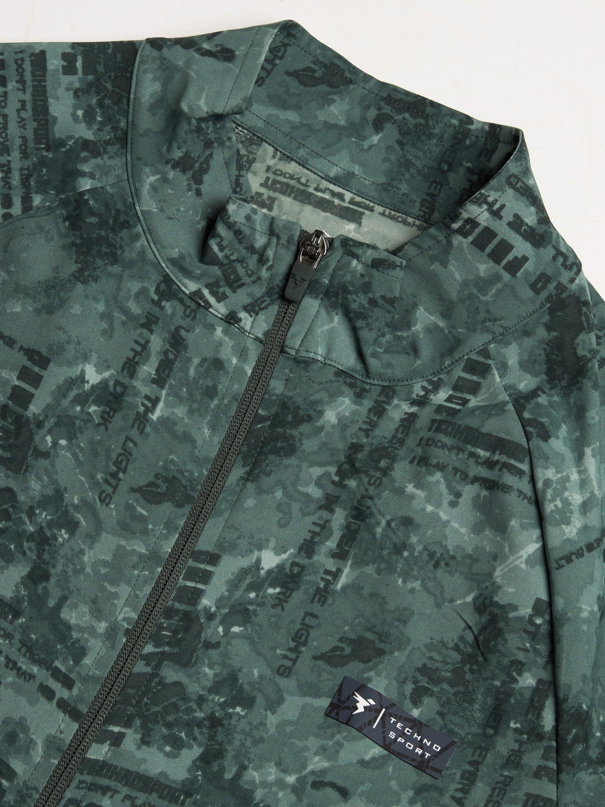 Men Printed Slim Fit Mock Neck Jacket with TS FLEXI
