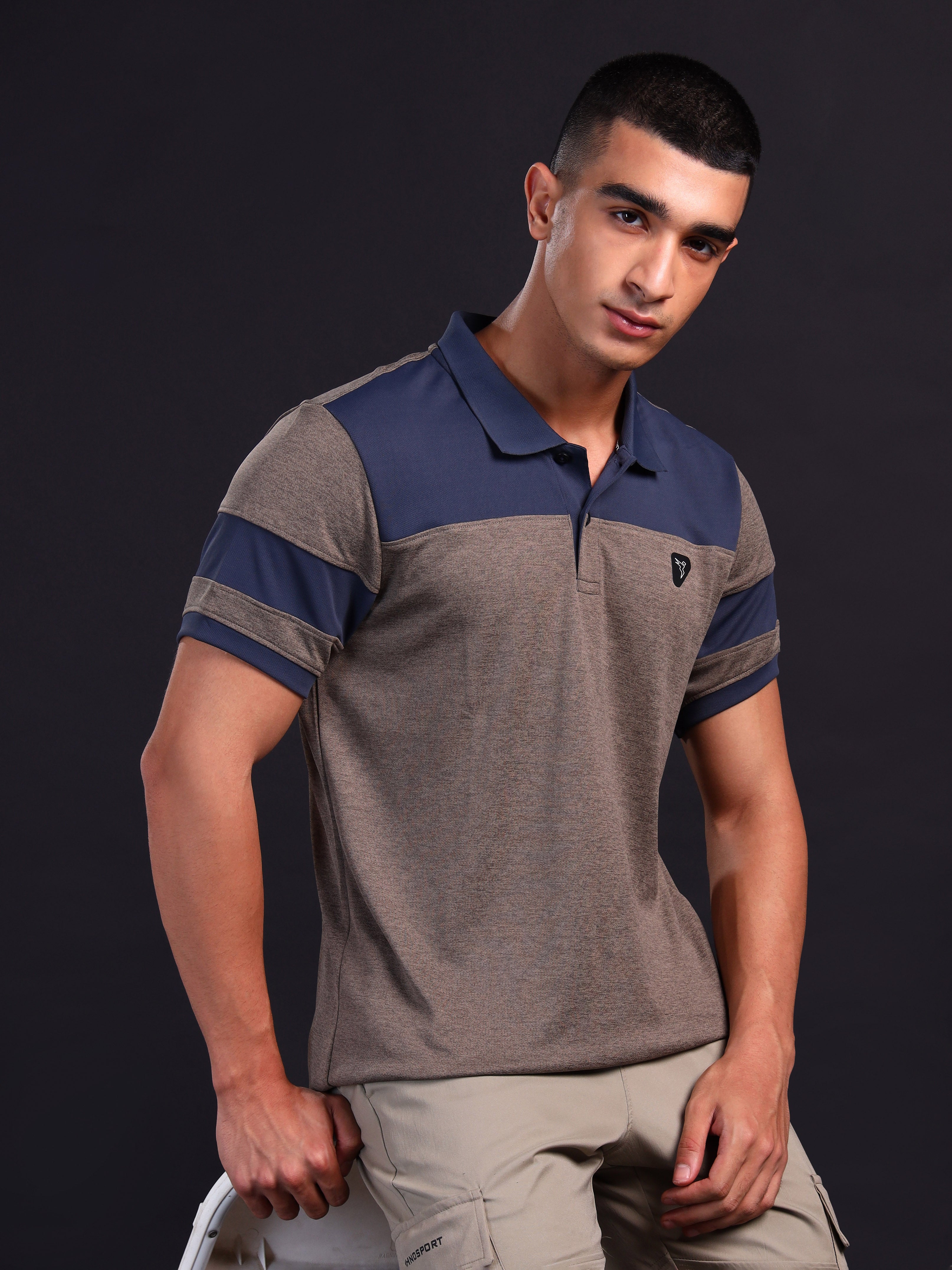 Men Melange Slim Fit Polo T-shirt with DOUBLE COOL