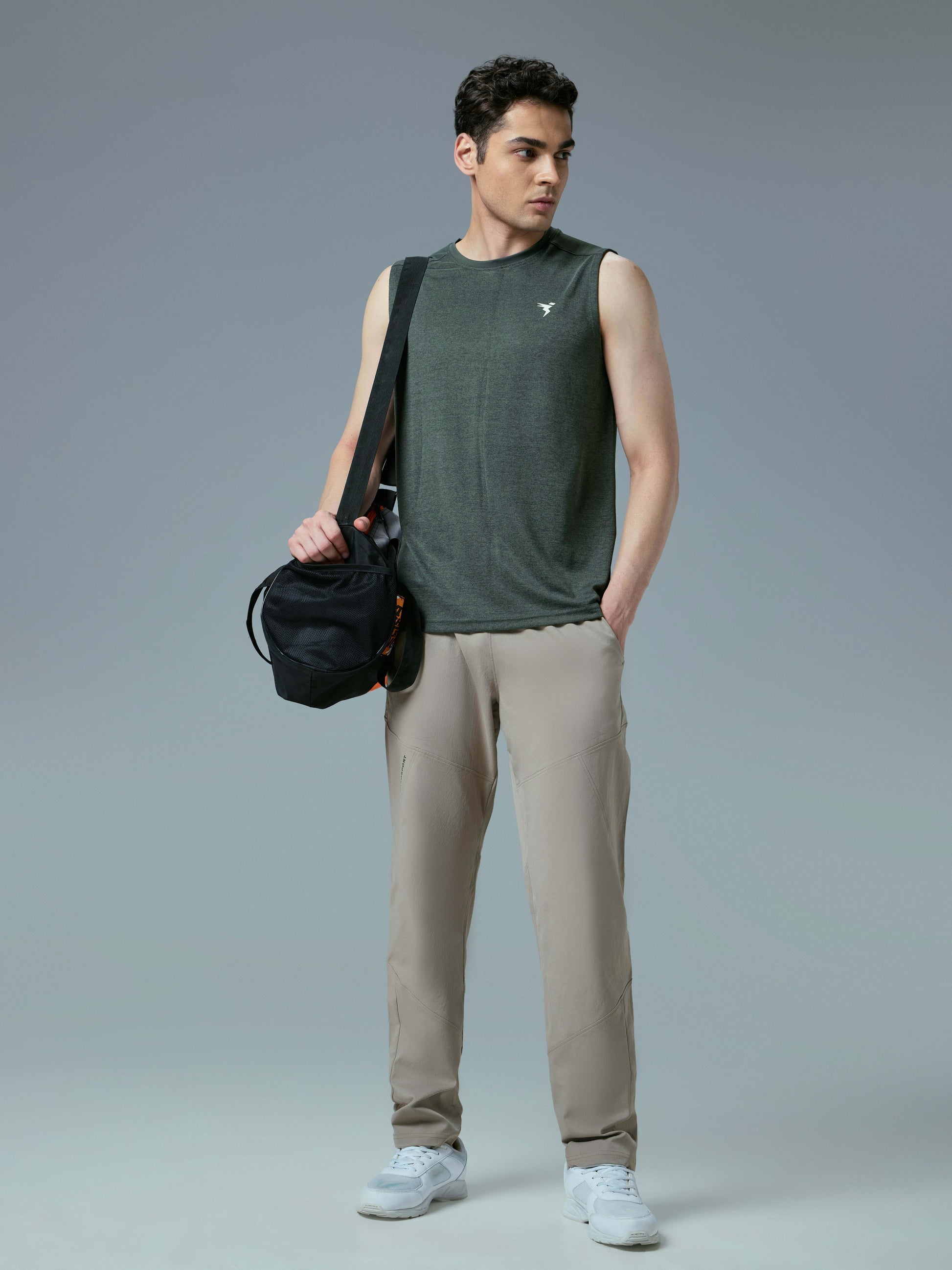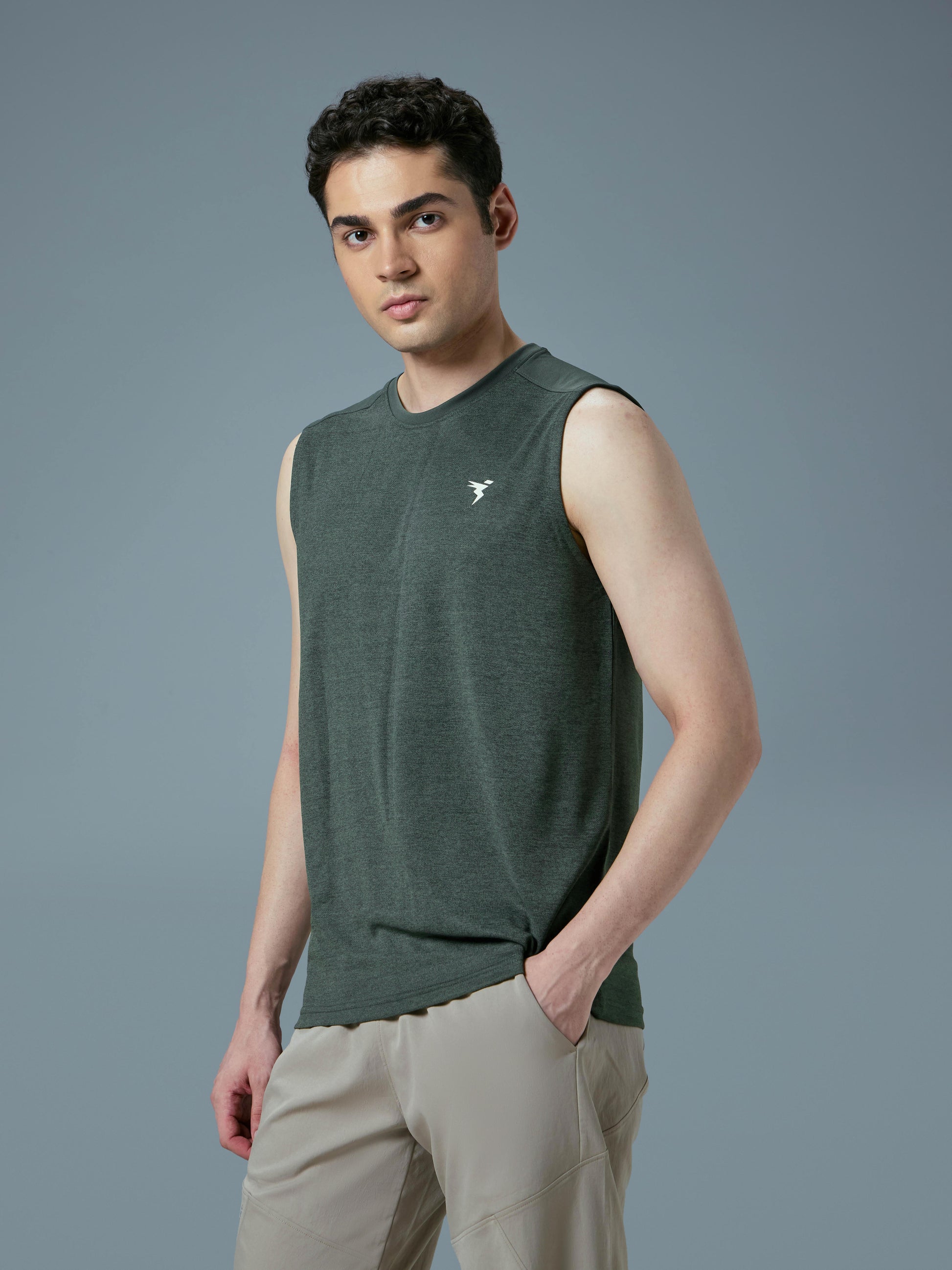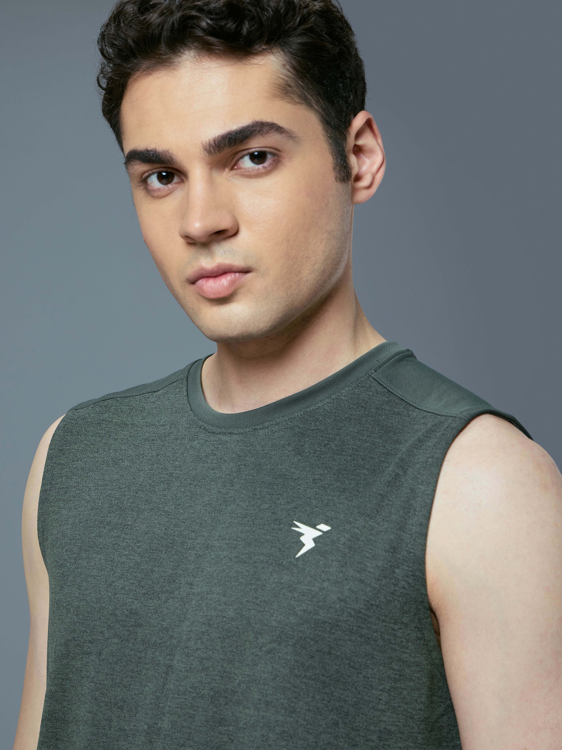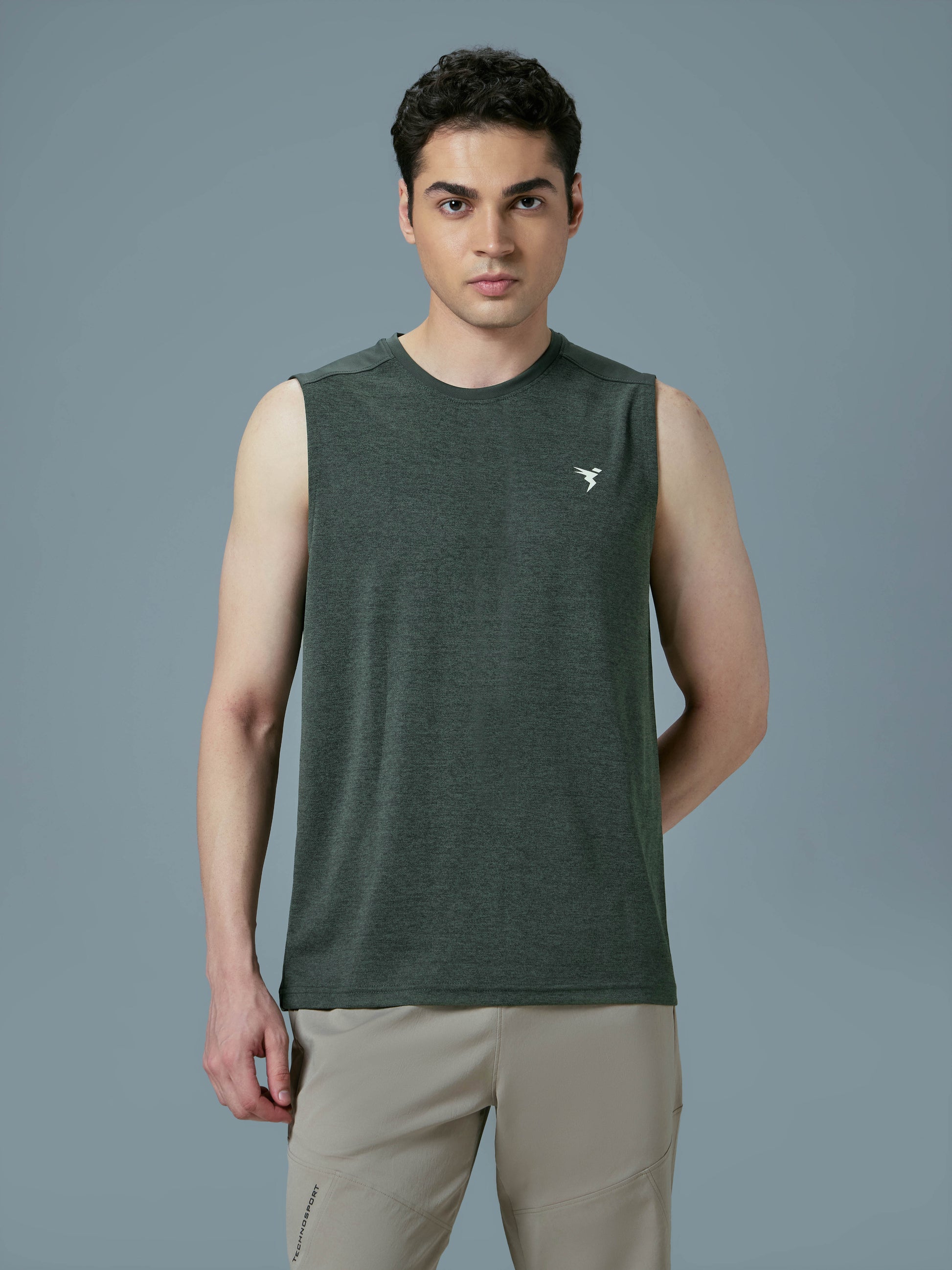 Men Melange Slim Fit Round Neck Sports Innerwear Vest with DOUBLE COOL