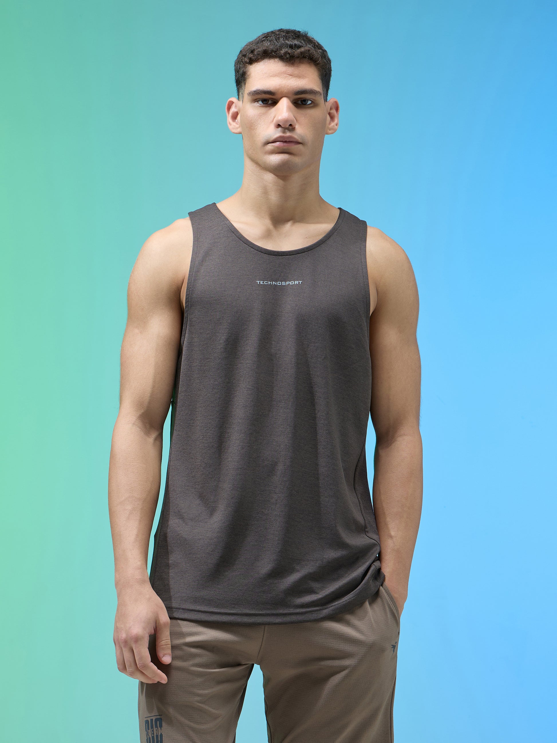 Men Melange Slim Fit Round Neck Sports Innerwear Vest with DOUBLE COOL