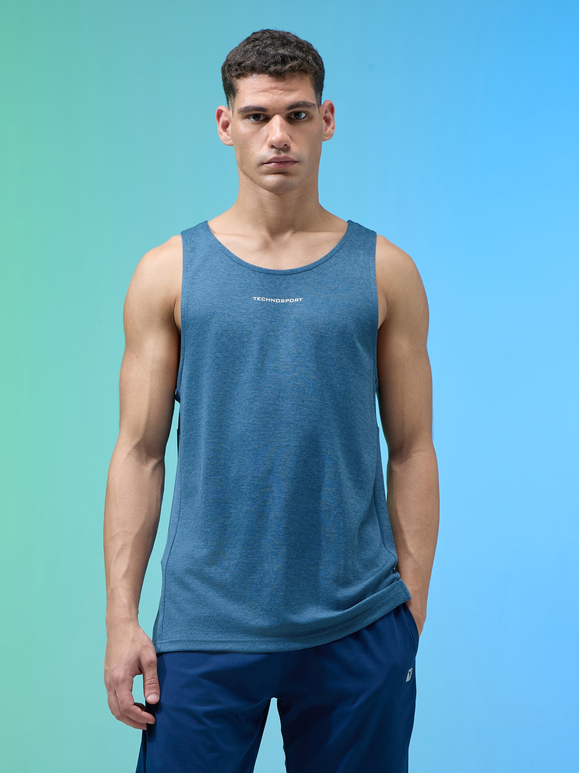 Men Melange Slim Fit Round Neck Sports Innerwear Vest with DOUBLE COOL