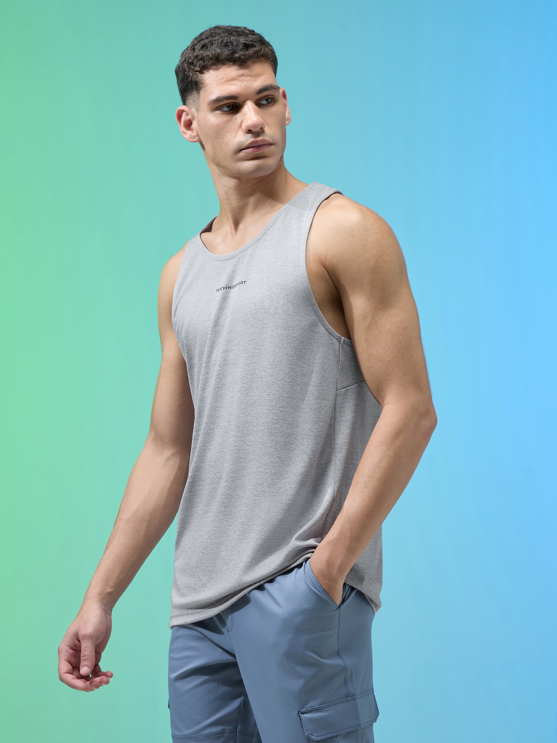 Men Melange Slim Fit Round Neck Sports Innerwear Vest with DOUBLE COOL