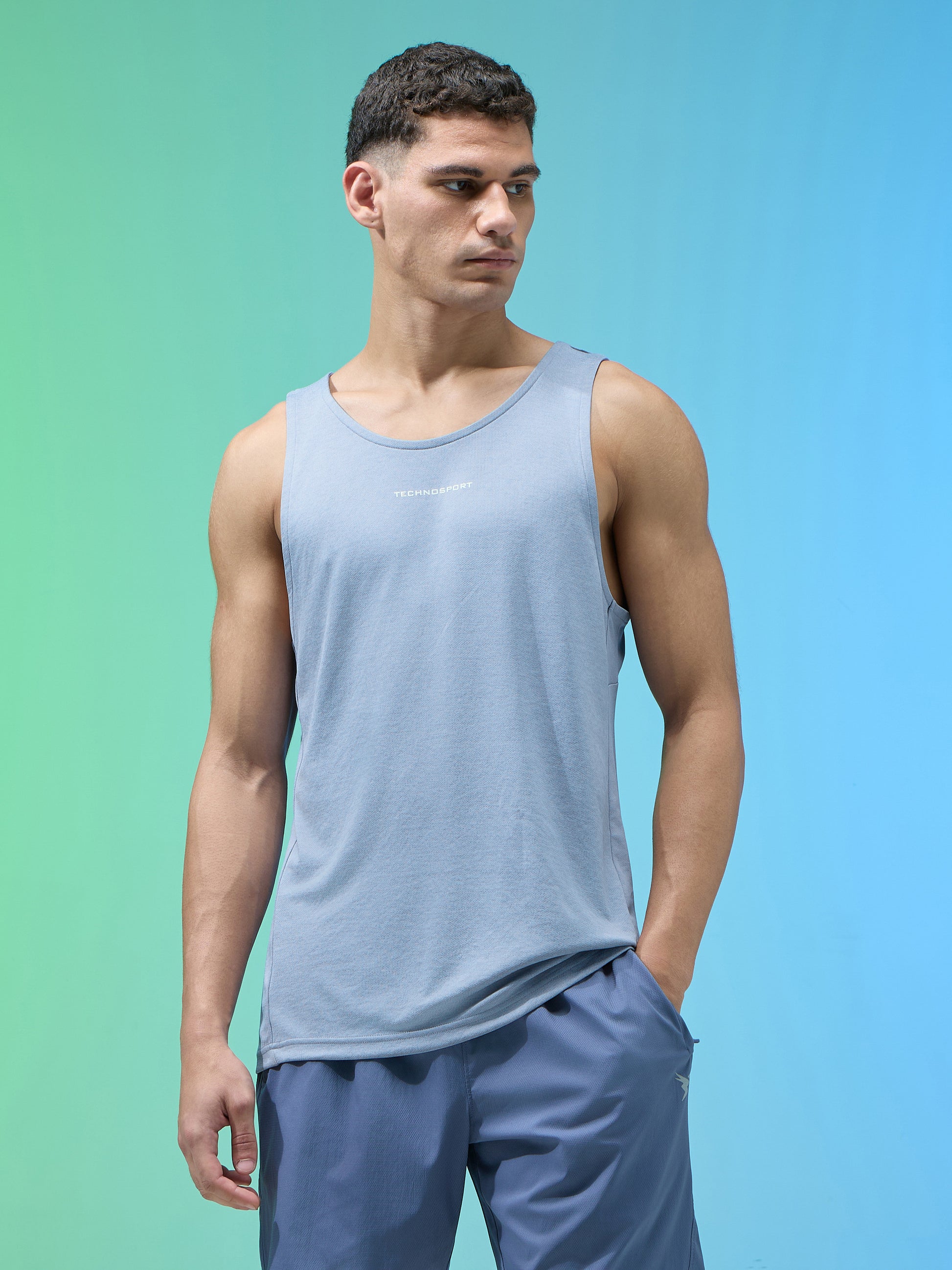 Offer Valid on a Minimum Cart Value of ₹999Men Melange Slim Fit Round Neck Sports Innerwear Vest with DOUBLE COOL