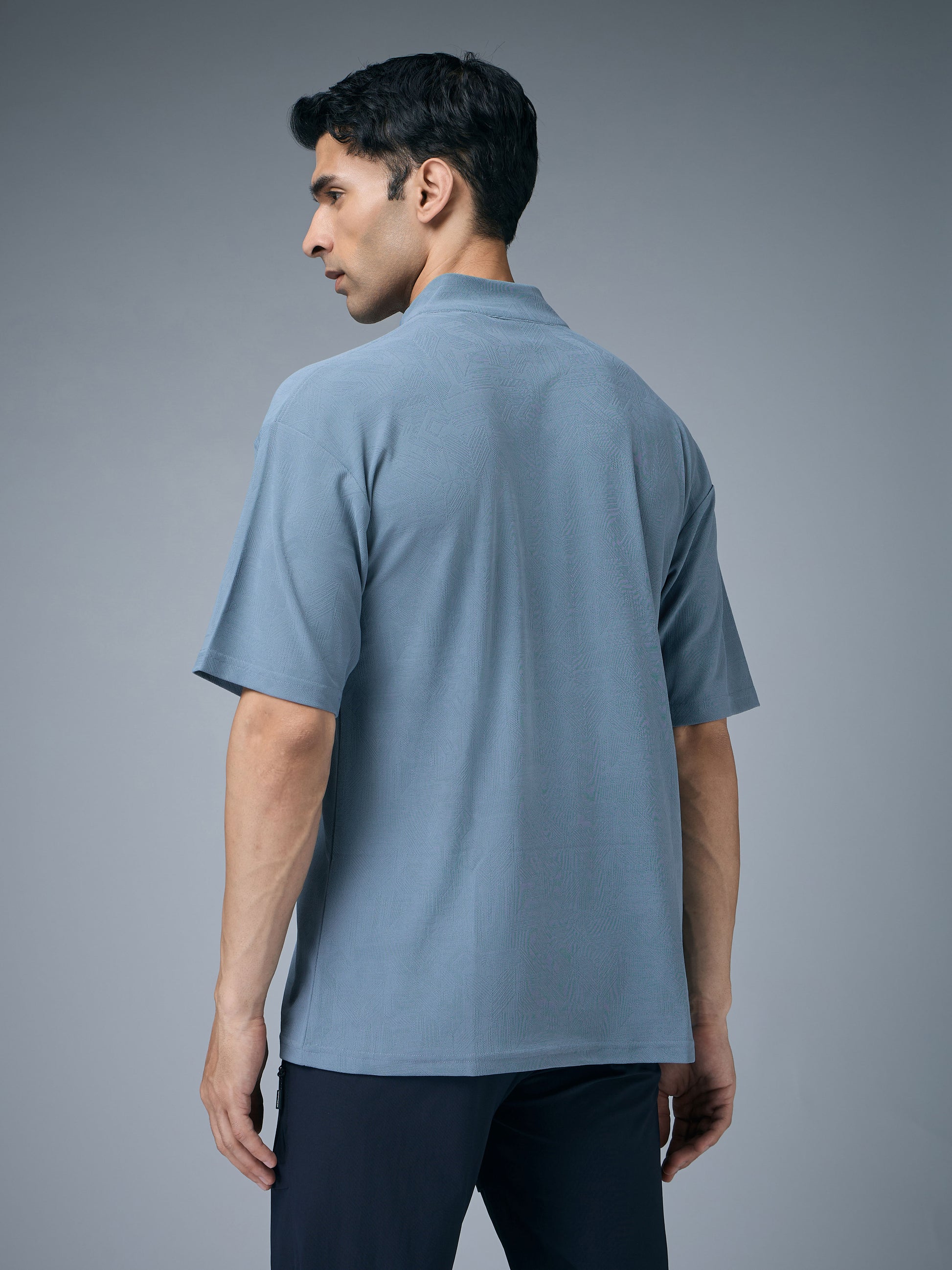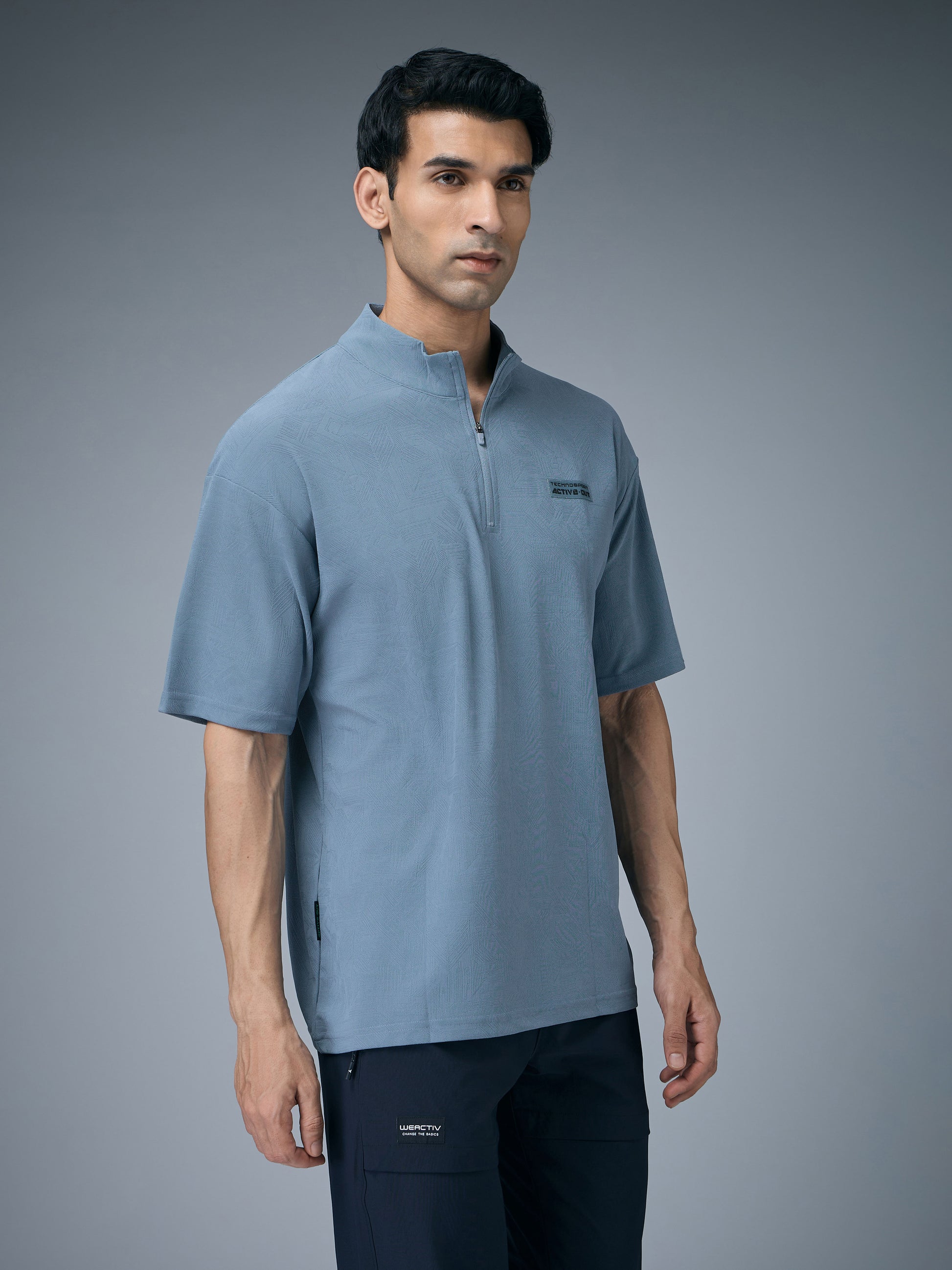 Men Mock Neck Self Design Oversized Active Out T-shirt with MATPIQ