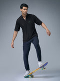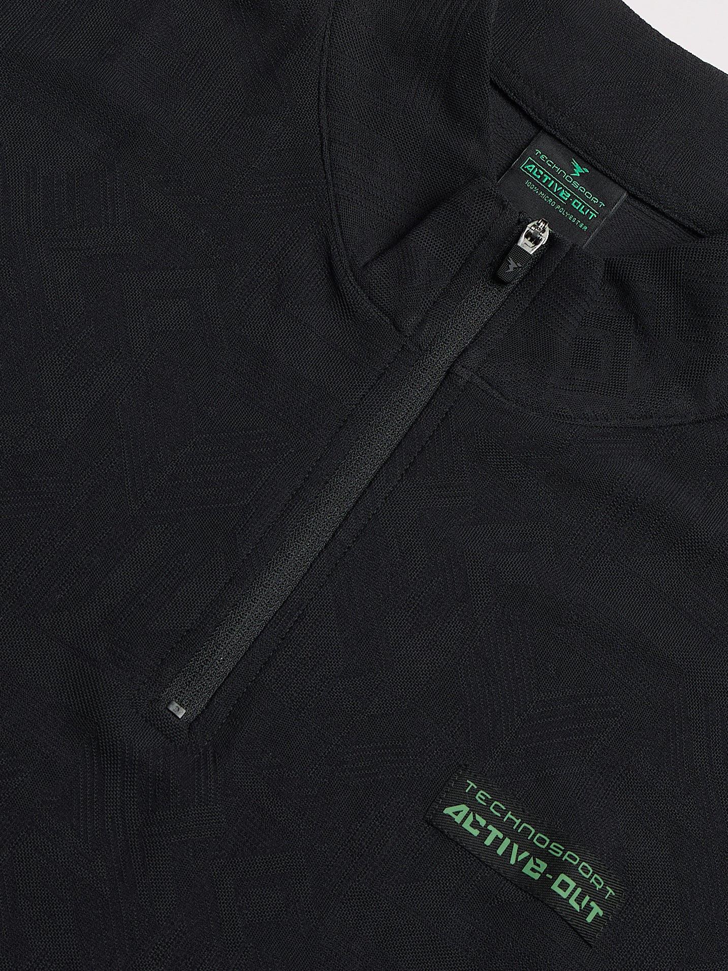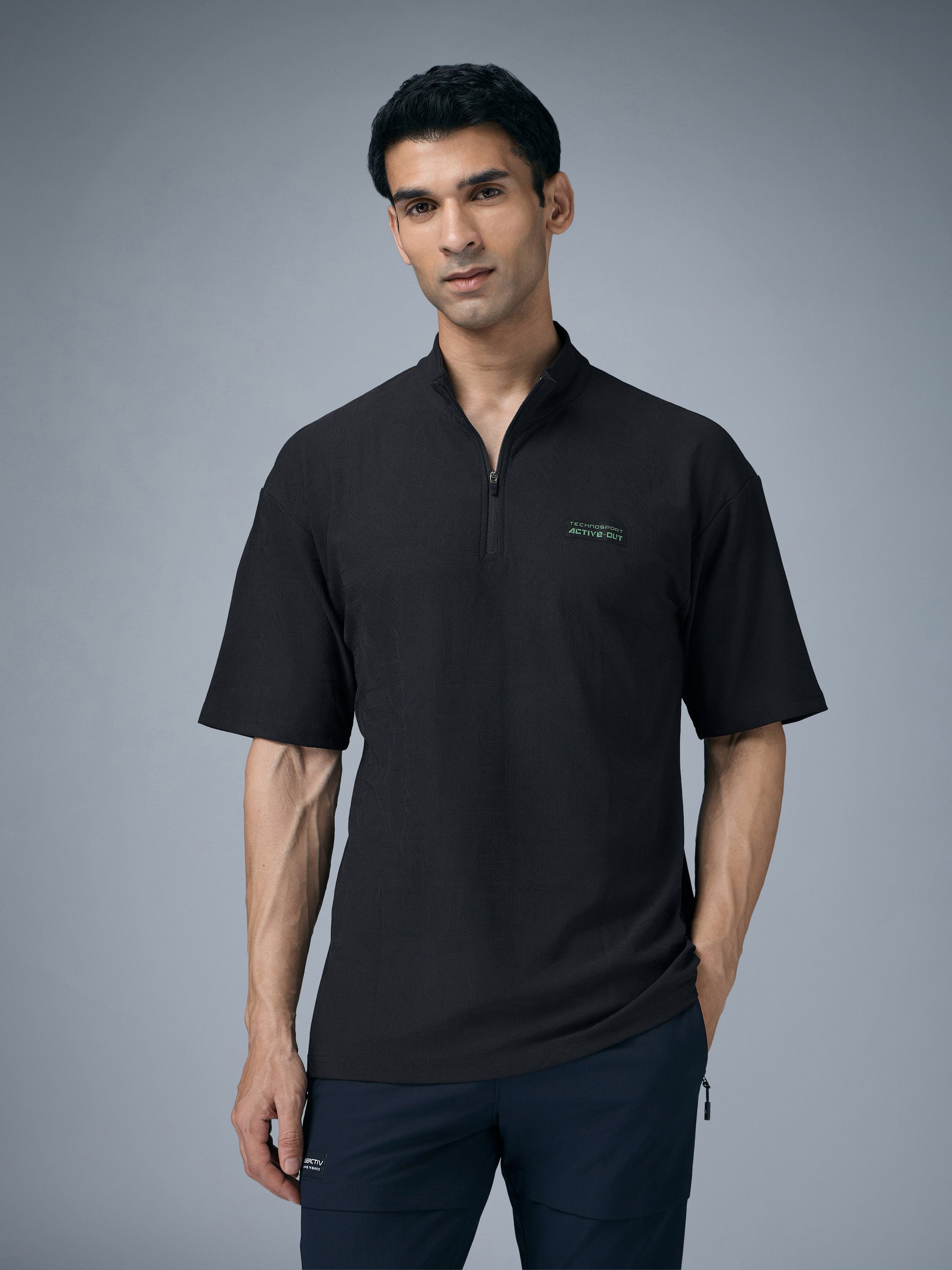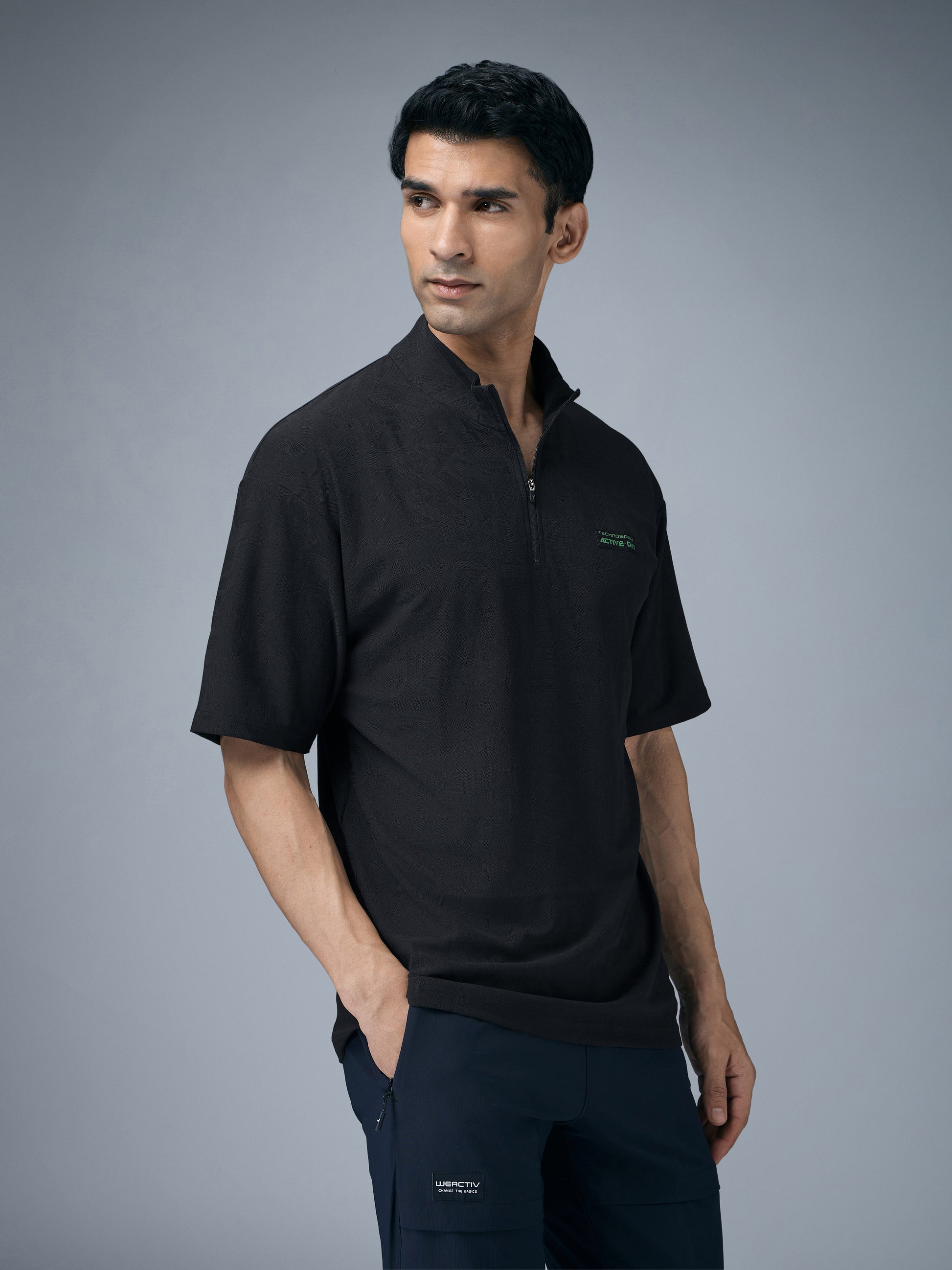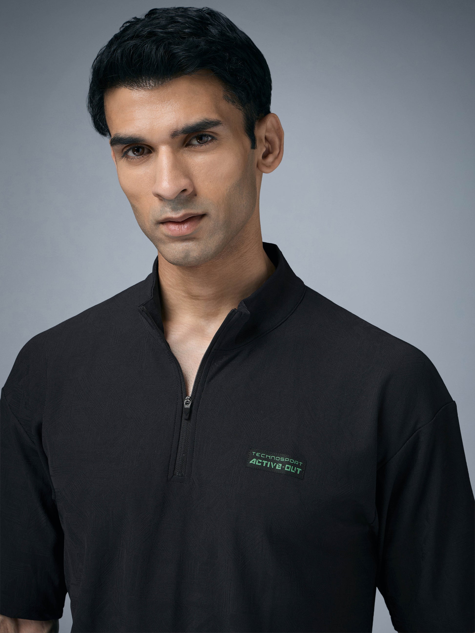 Men Mock Neck Self Design Oversized Active Out T-shirt with MATPIQ