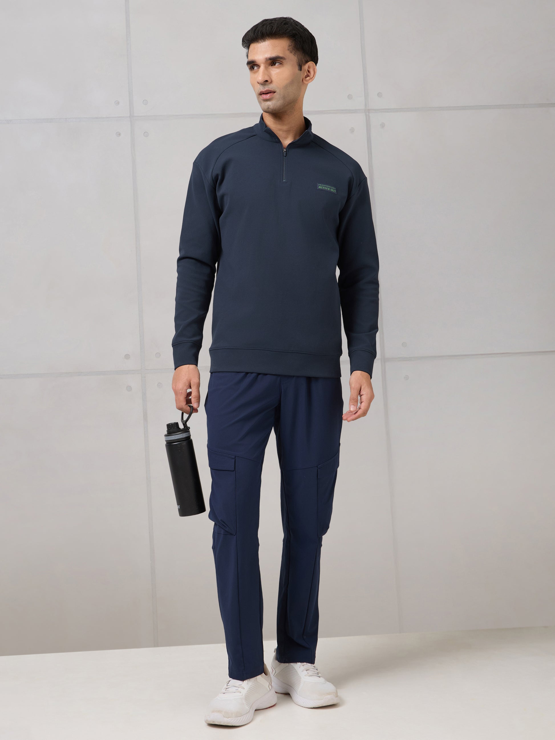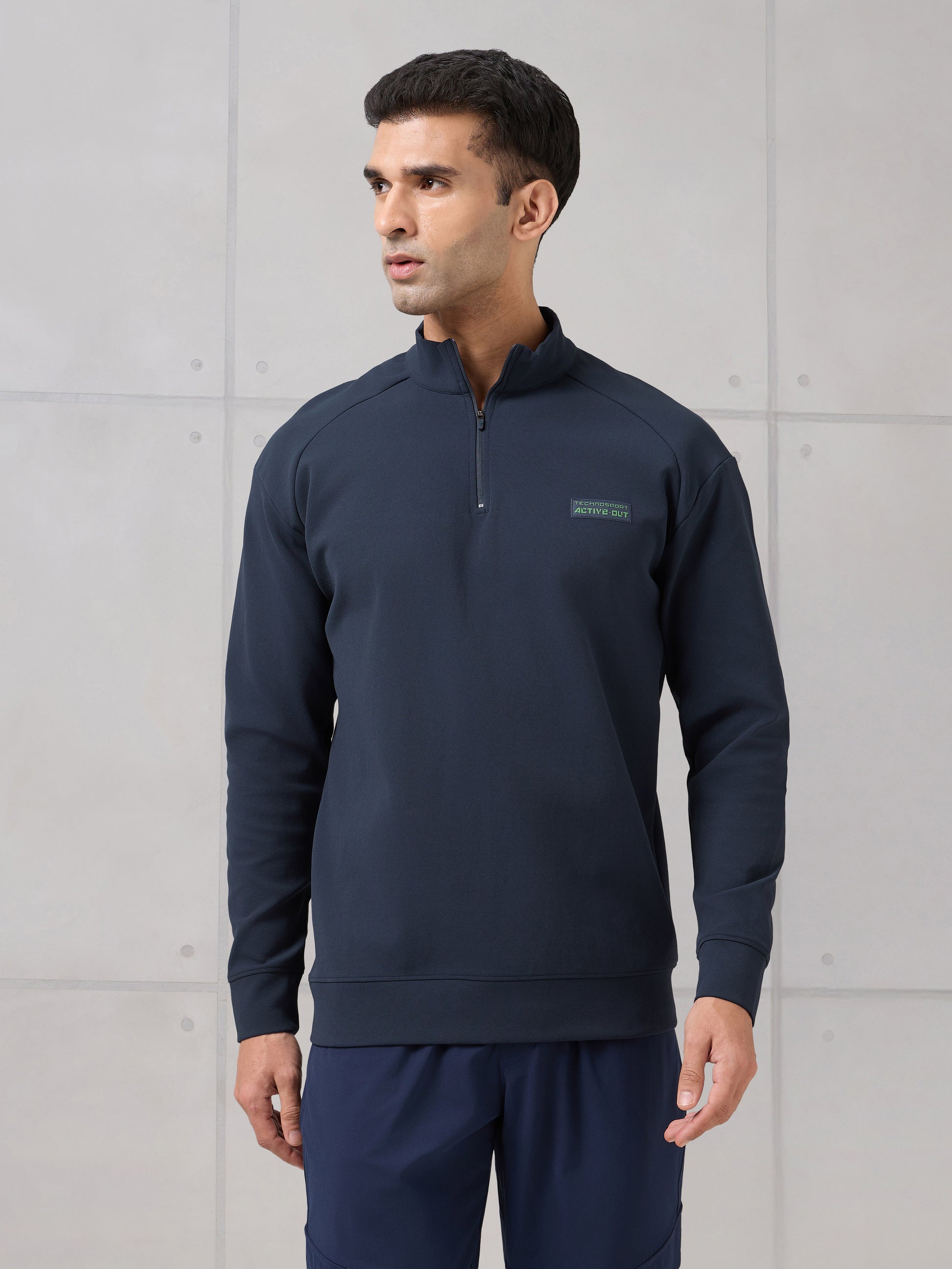 Offer Valid on a Minimum Cart Value of ₹999Men Mock Neck Slim Fit Solid Active Out Sweatshirt with ELASTOPLUS