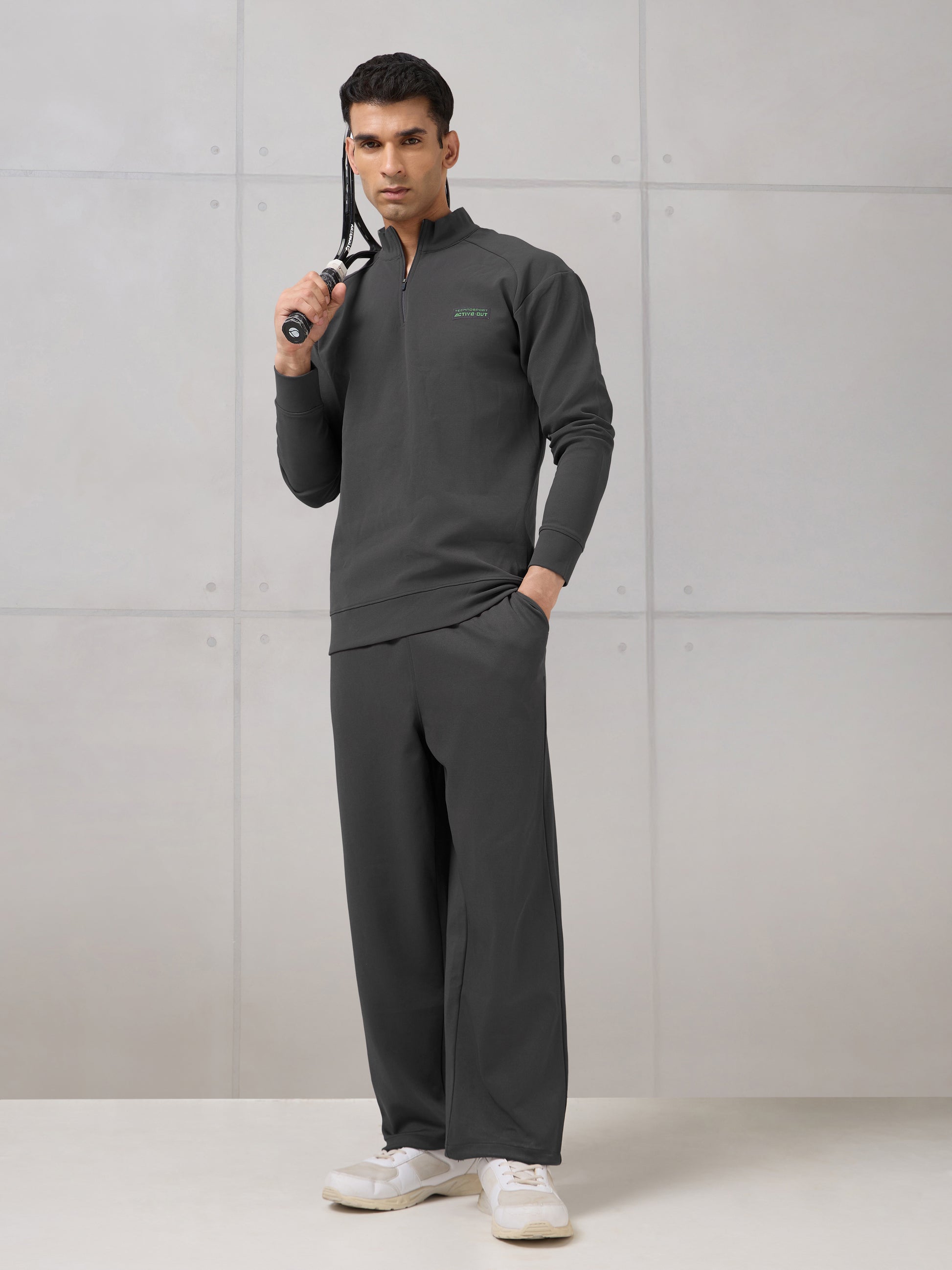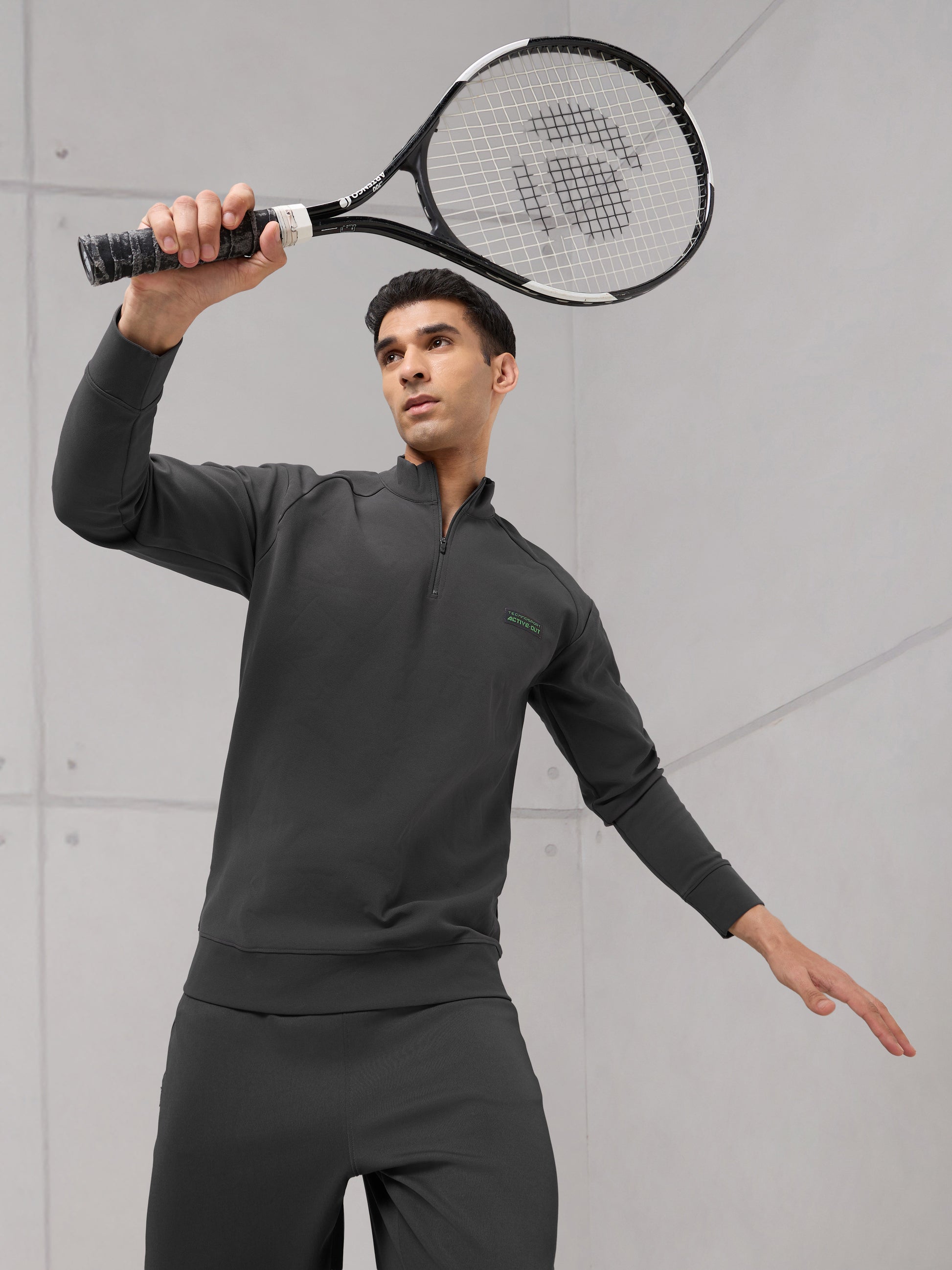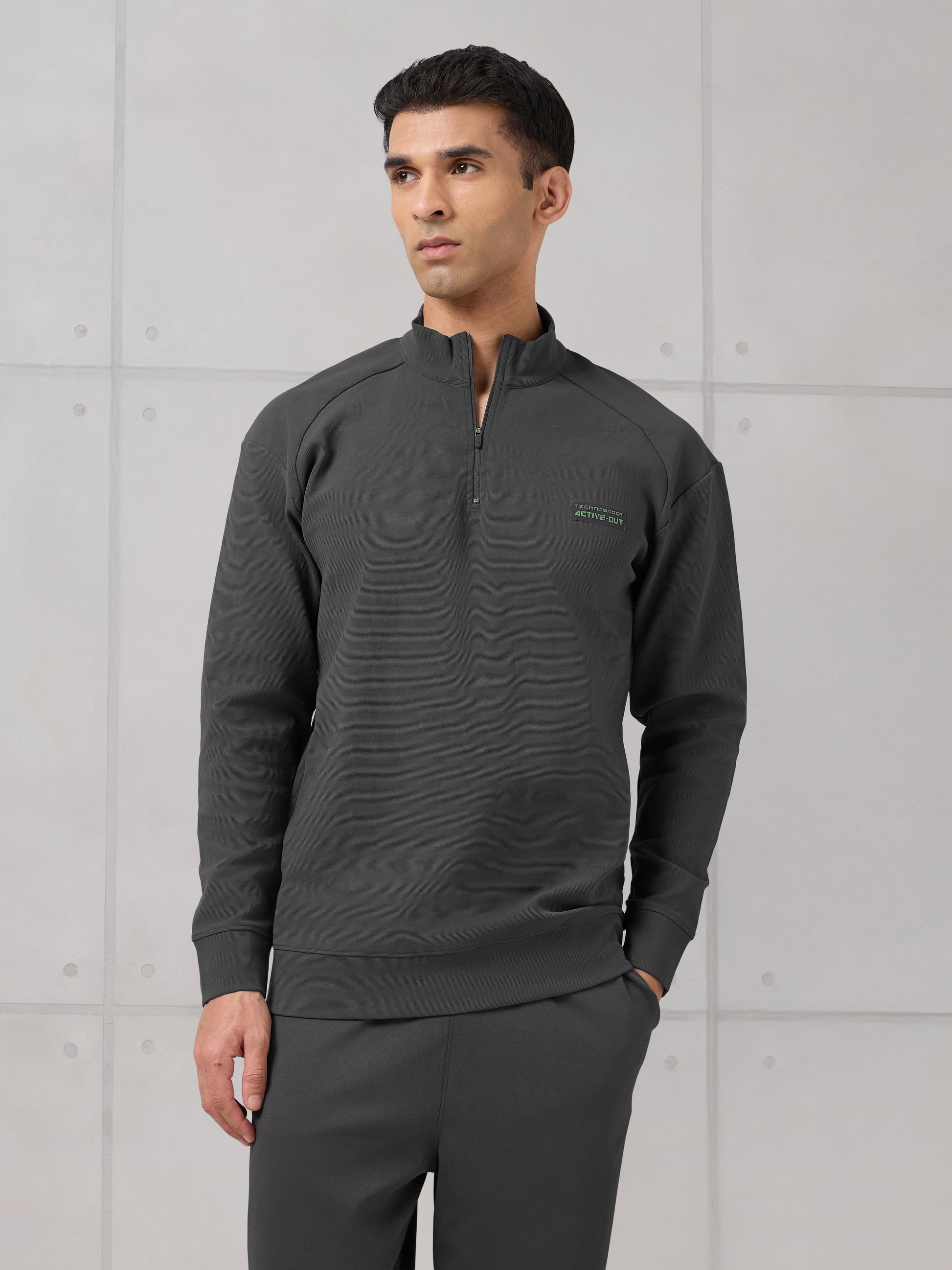 Offer Valid on a Minimum Cart Value of ₹999Men Mock Neck Slim Fit Solid Active Out Sweatshirt with ELASTOPLUS