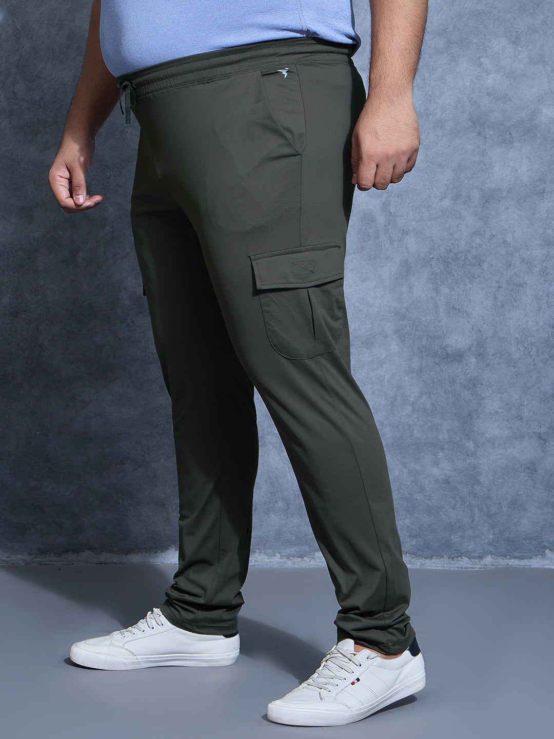 Men Plus Size Solid Relax Fit Cargo Trackpants with DURACOOL+