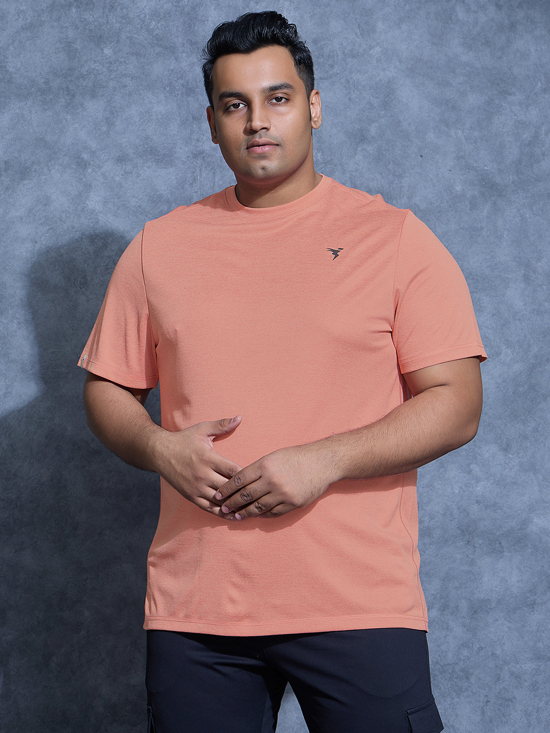 Offer Valid on a Minimum Cart Value of ₹999Men Plus Size Solid Slim Fit Crew Neck T-shirt with DOUBLE COOL