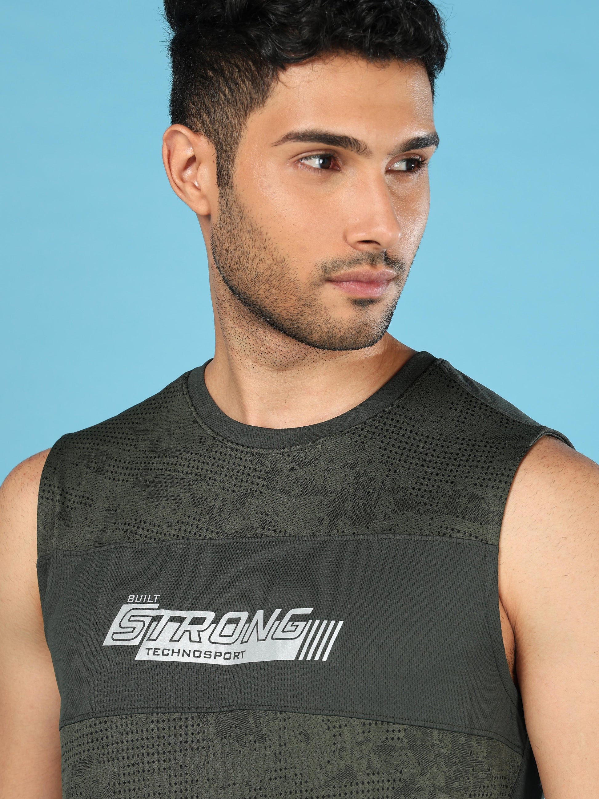Men Printed Slim Fit Crew Neck Innerwear Vest with TECHNO COOL+
