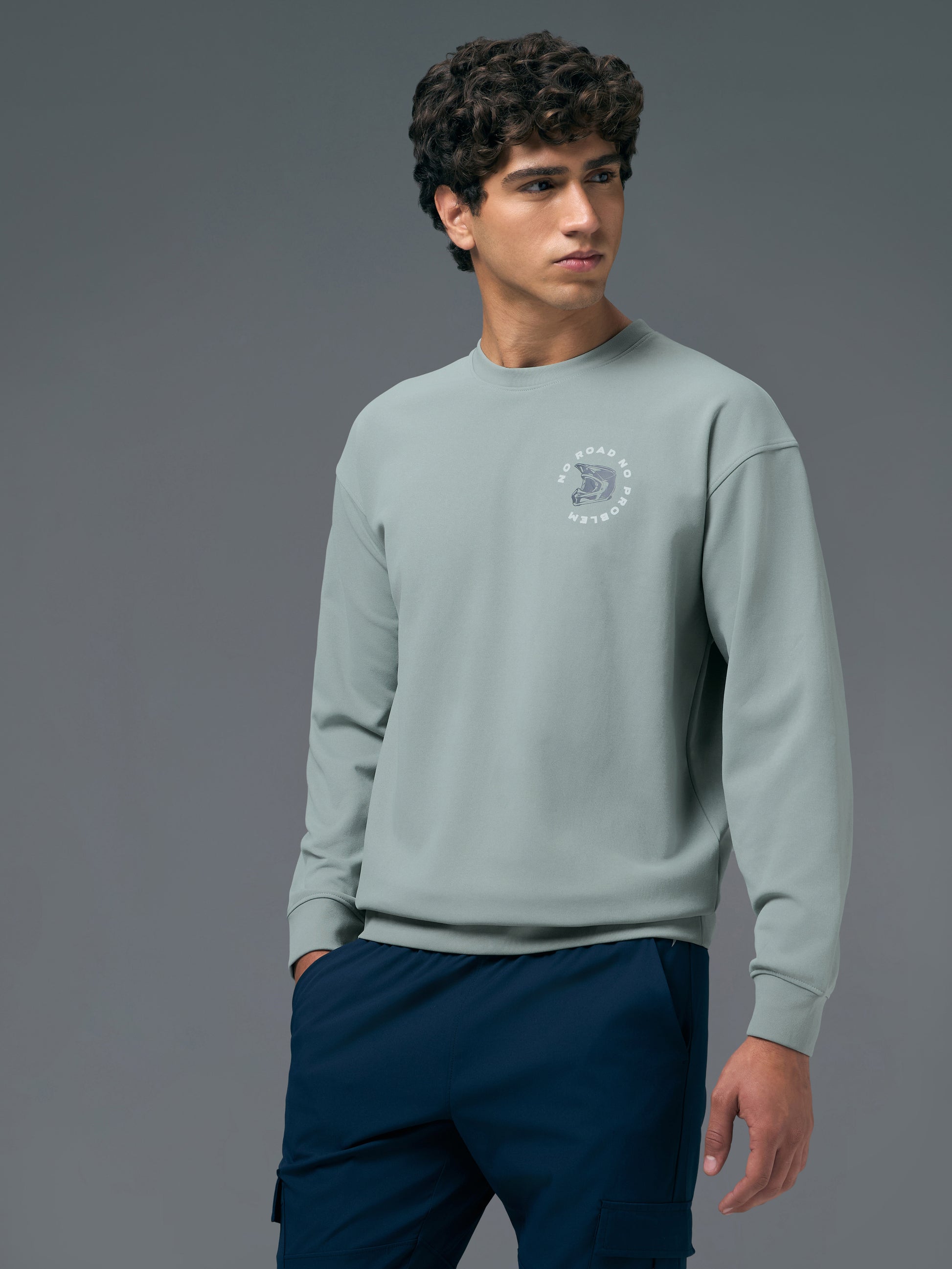 Offer Valid on a Minimum Cart Value of ₹999Men Printed Slim Fit Crew Neck Sweatshirt with ELASTO PLUS