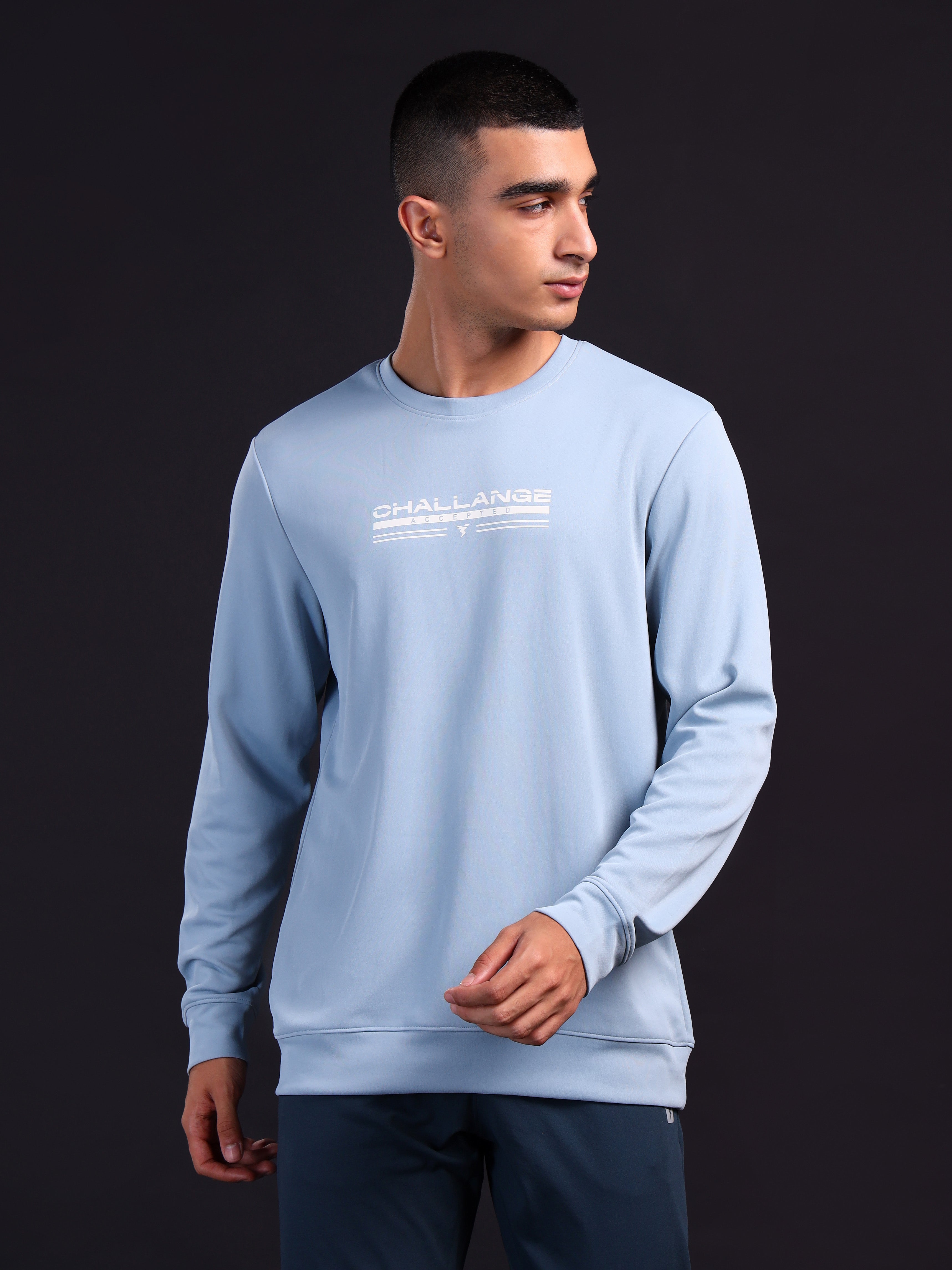 Men Printed Slim Fit Crew Neck Sweatshirt with ELASTO PLUS