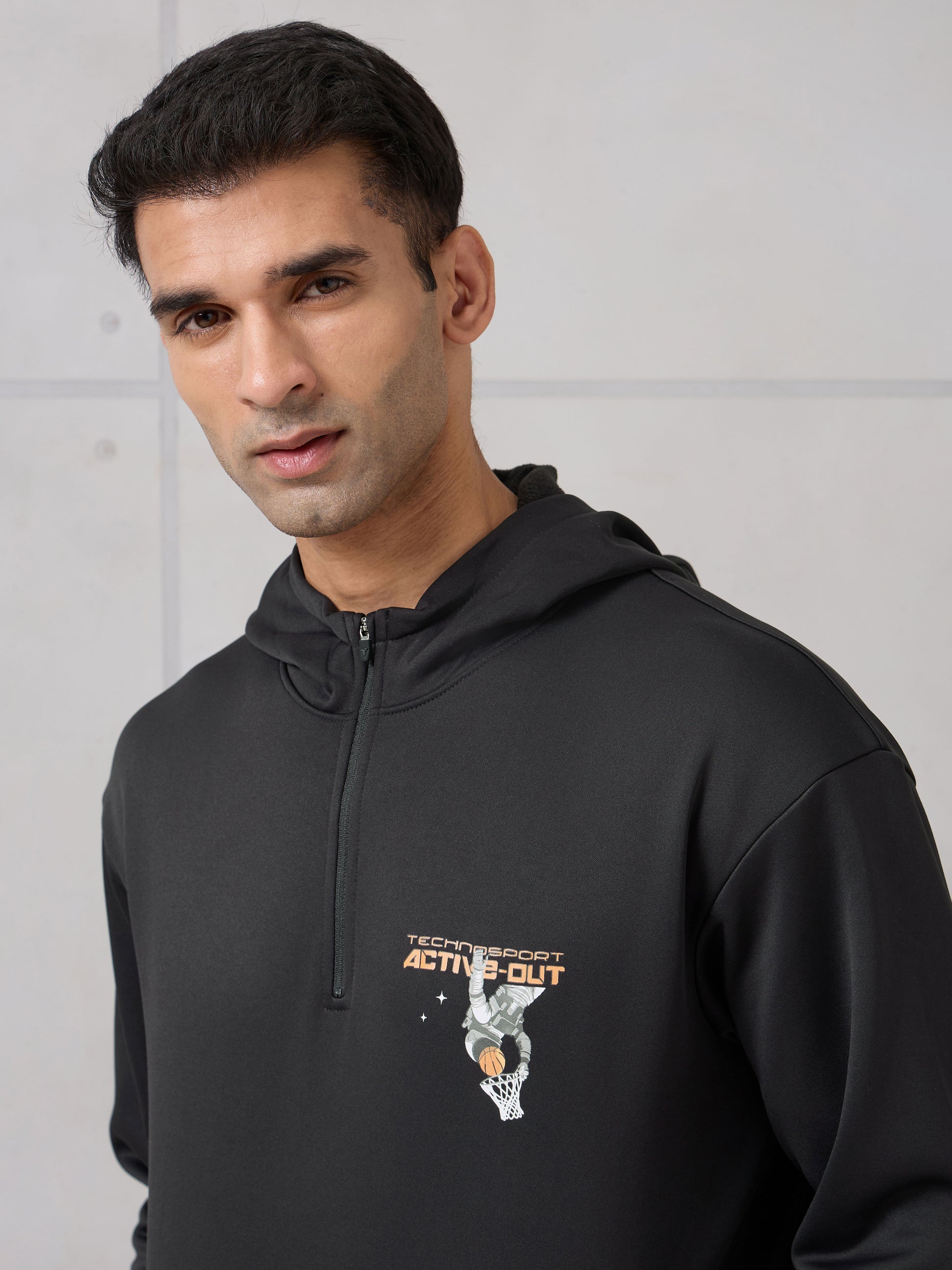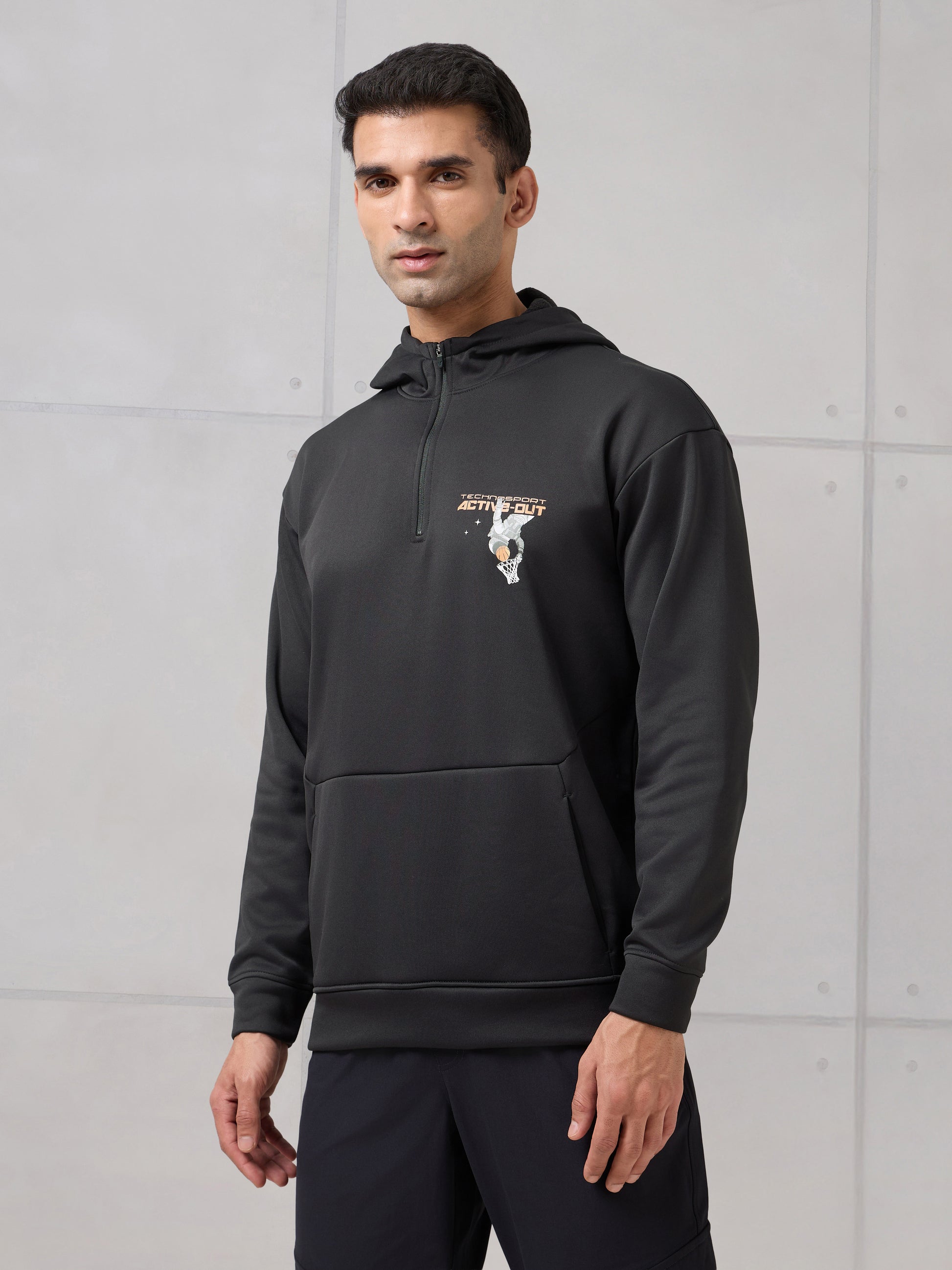 Men Hooded Slim Fit Printed Active Out Sweatshirt with TECHNOWARM+