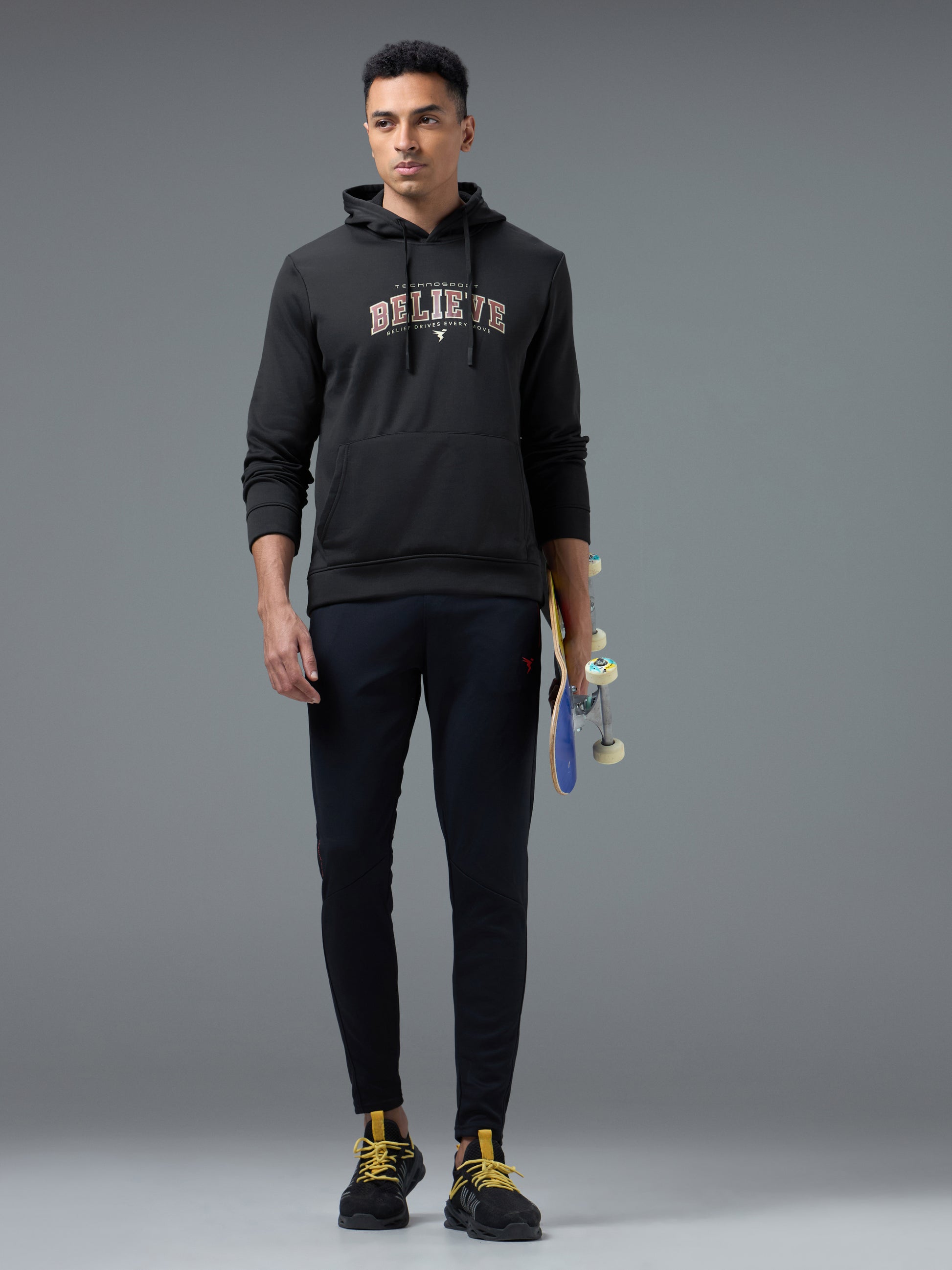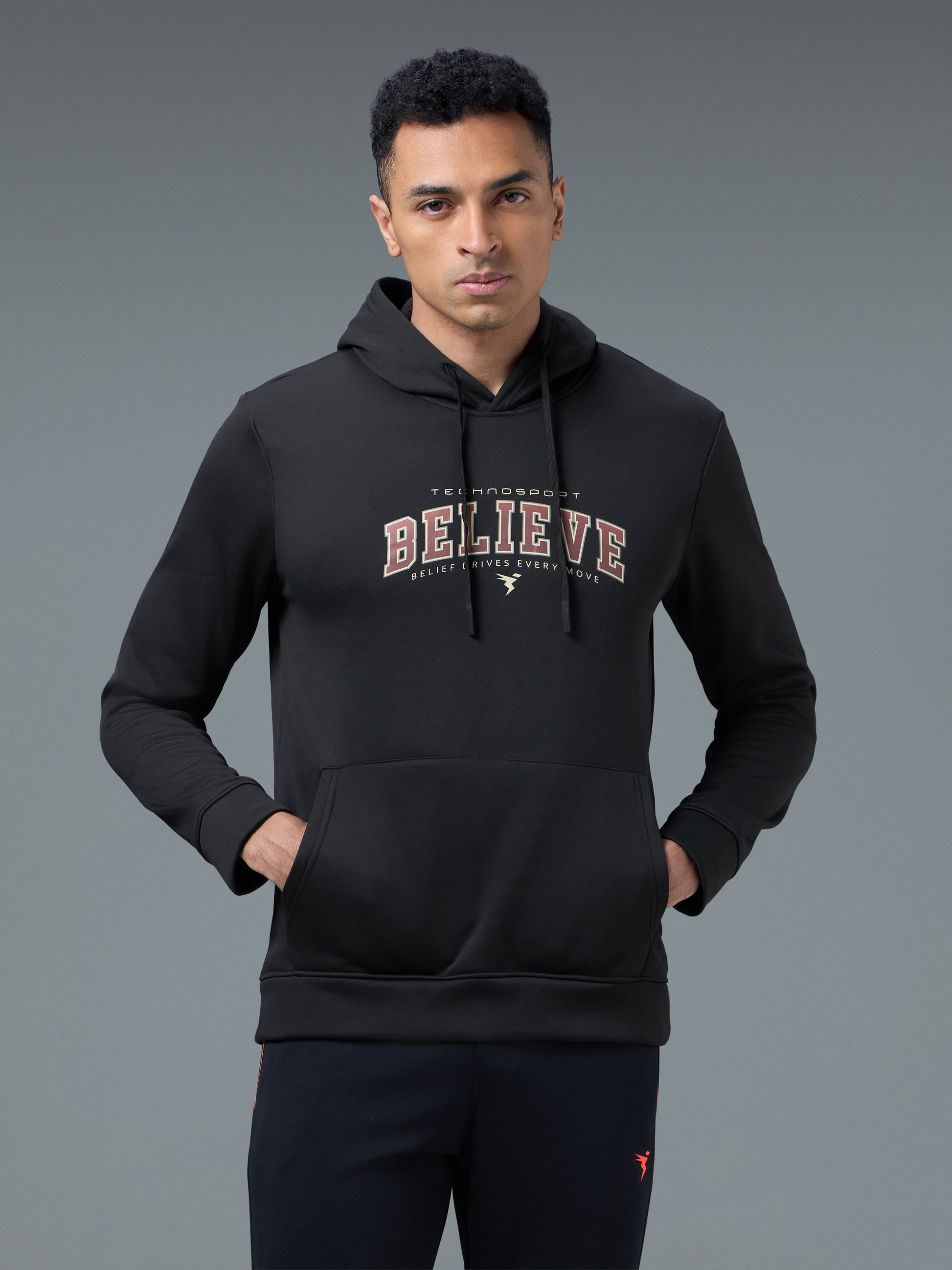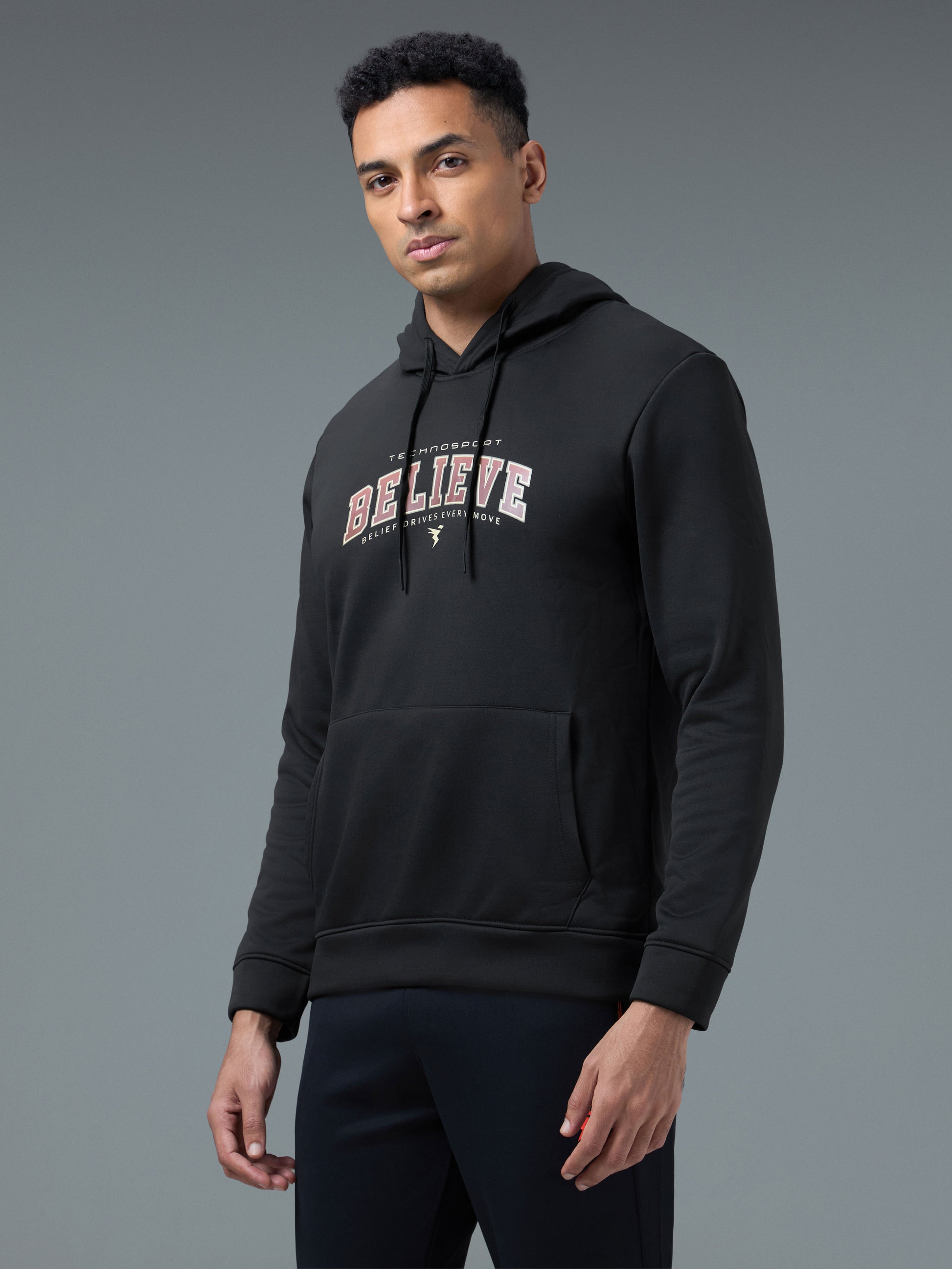 Offer Valid on a Minimum Cart Value of ₹999Men Printed Slim Fit Hooded Sweatshirt with TECHNOWARM+