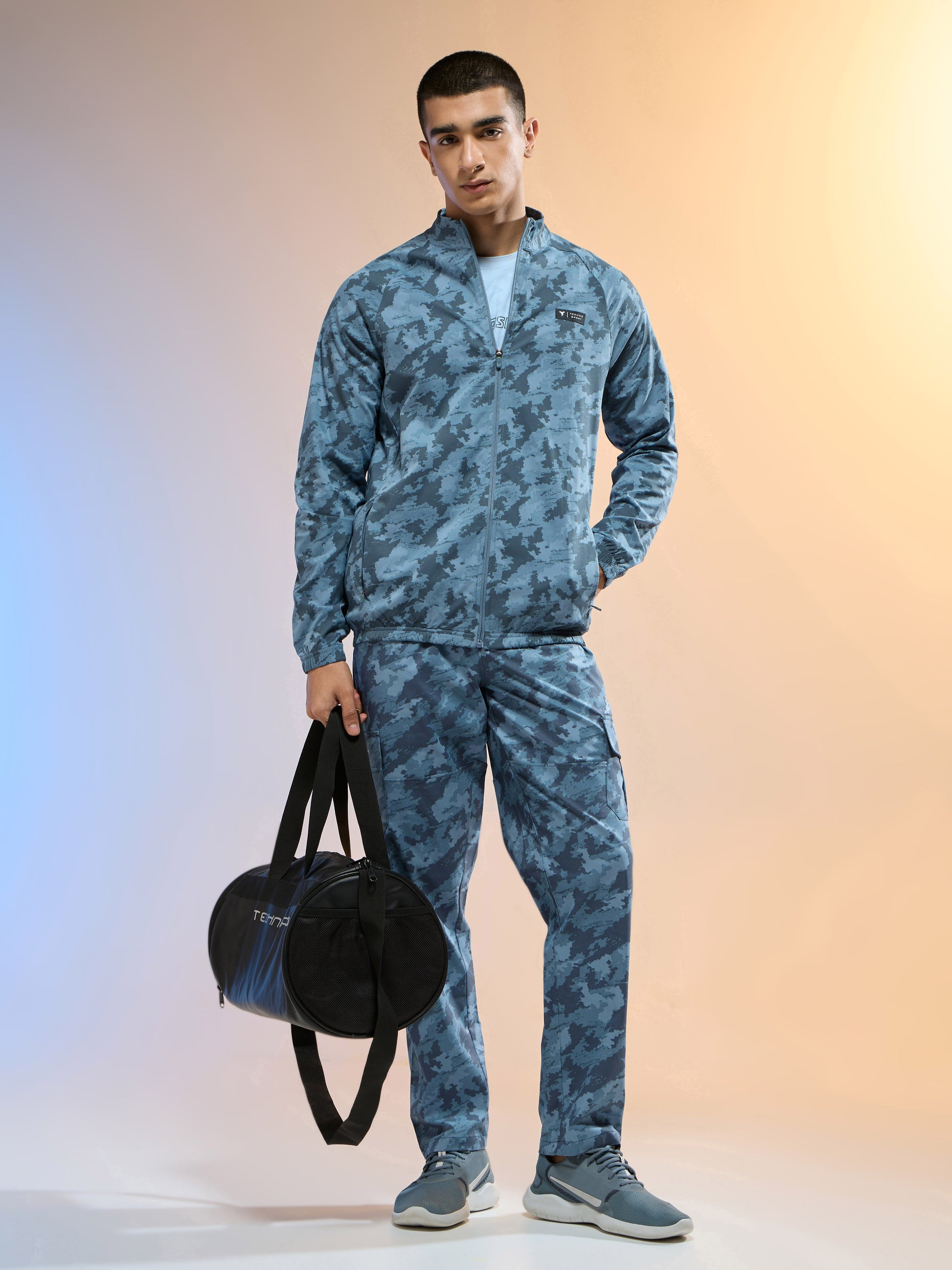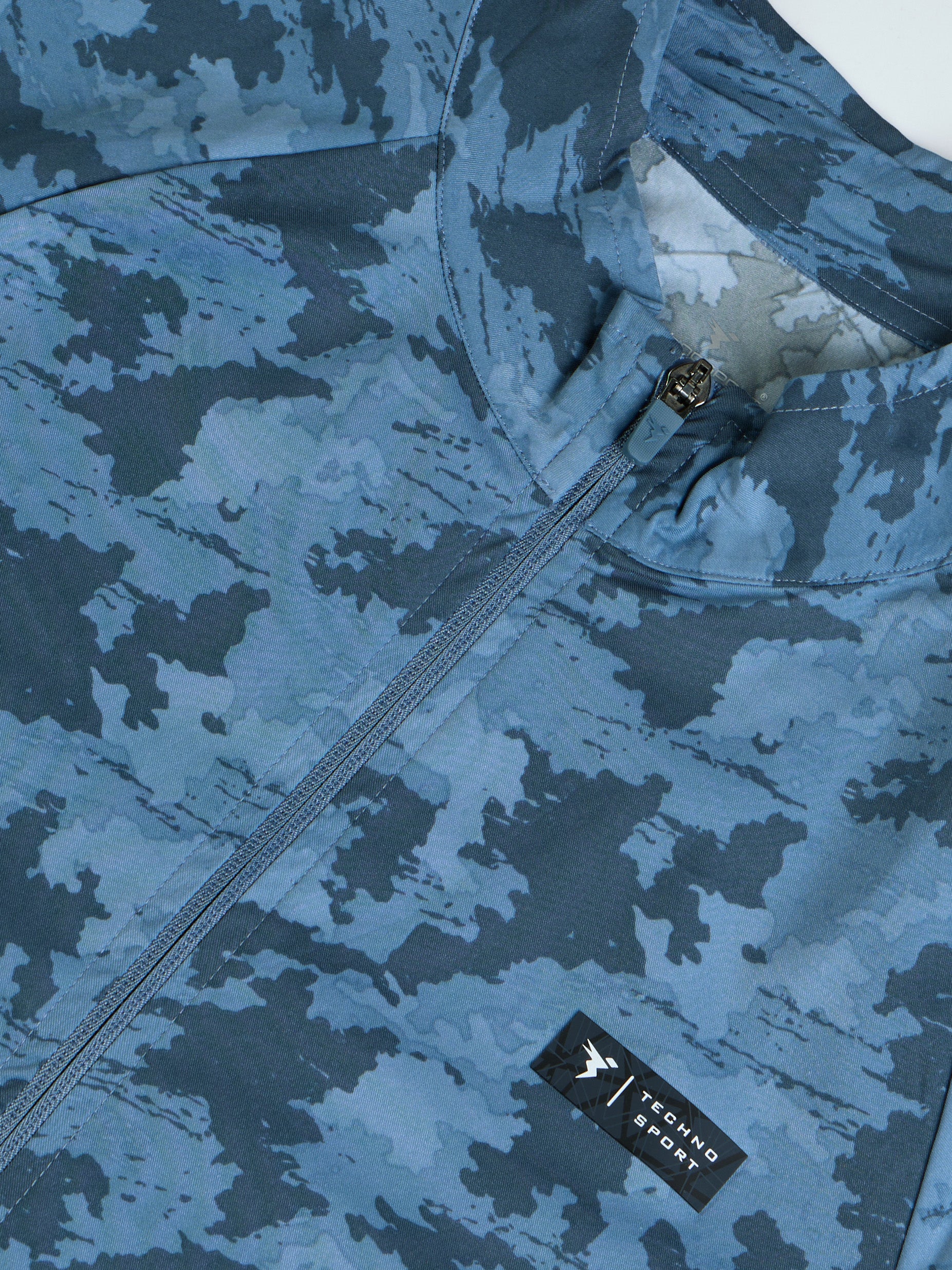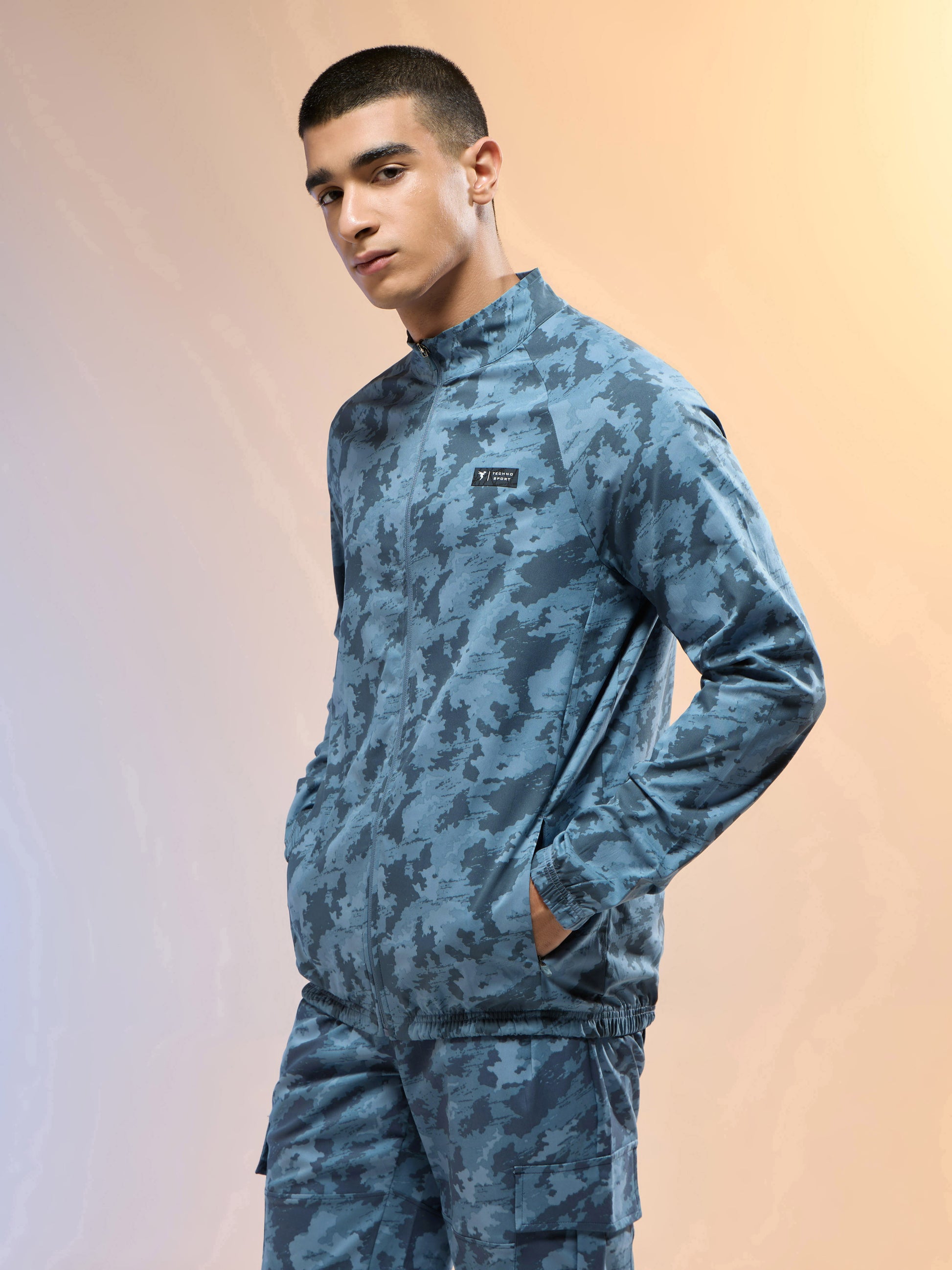 Men Printed Slim Fit Mock Neck Jacket with TS FLEXI