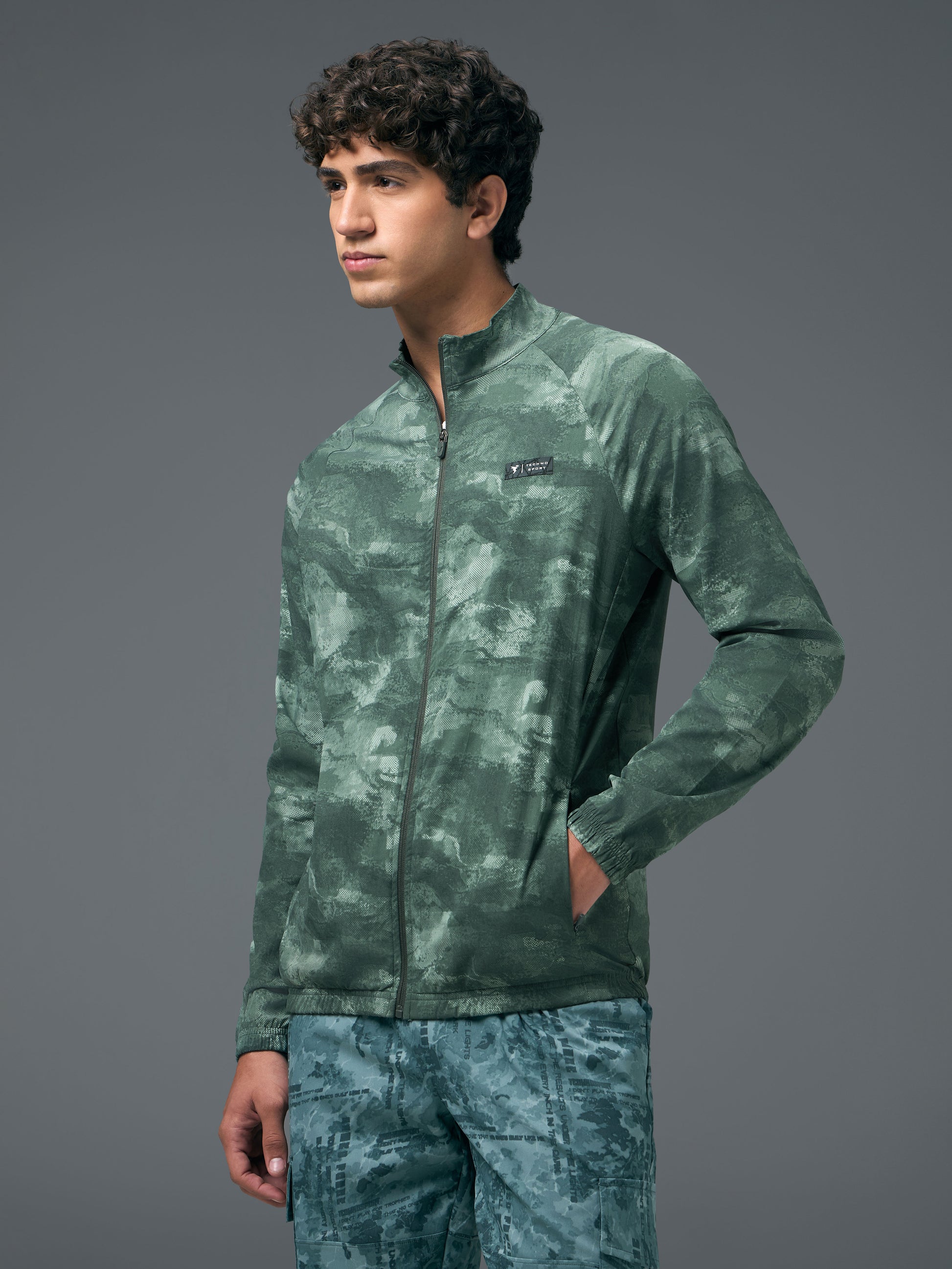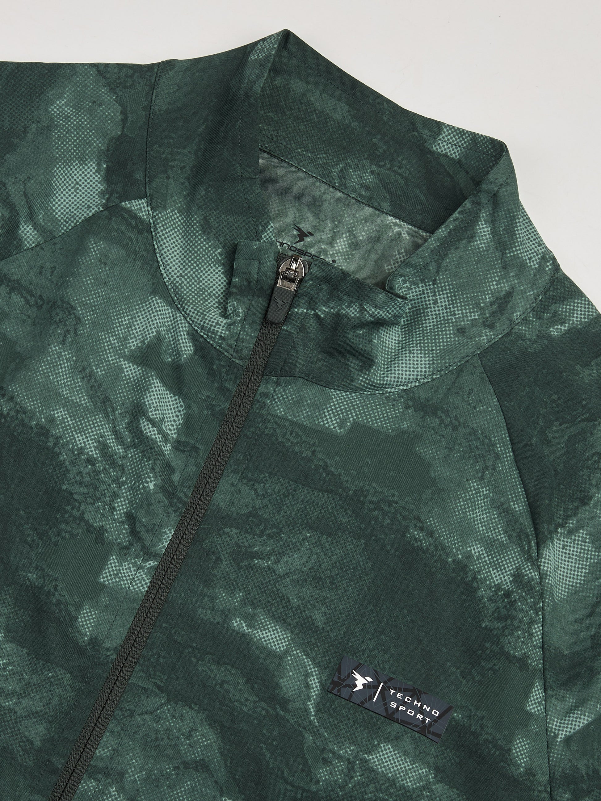 Men Printed Slim Fit Mock Neck Jacket with TS FLEXI